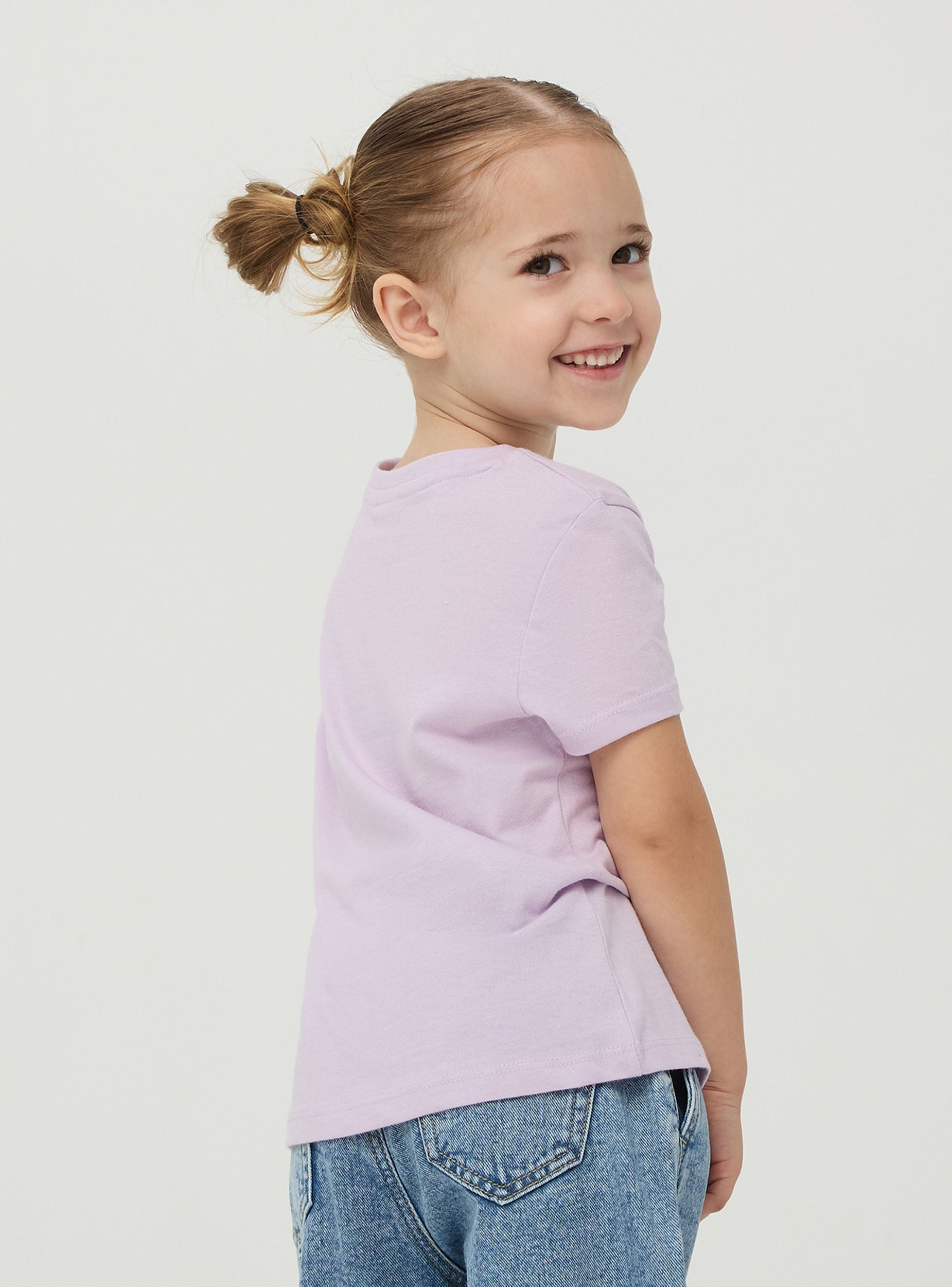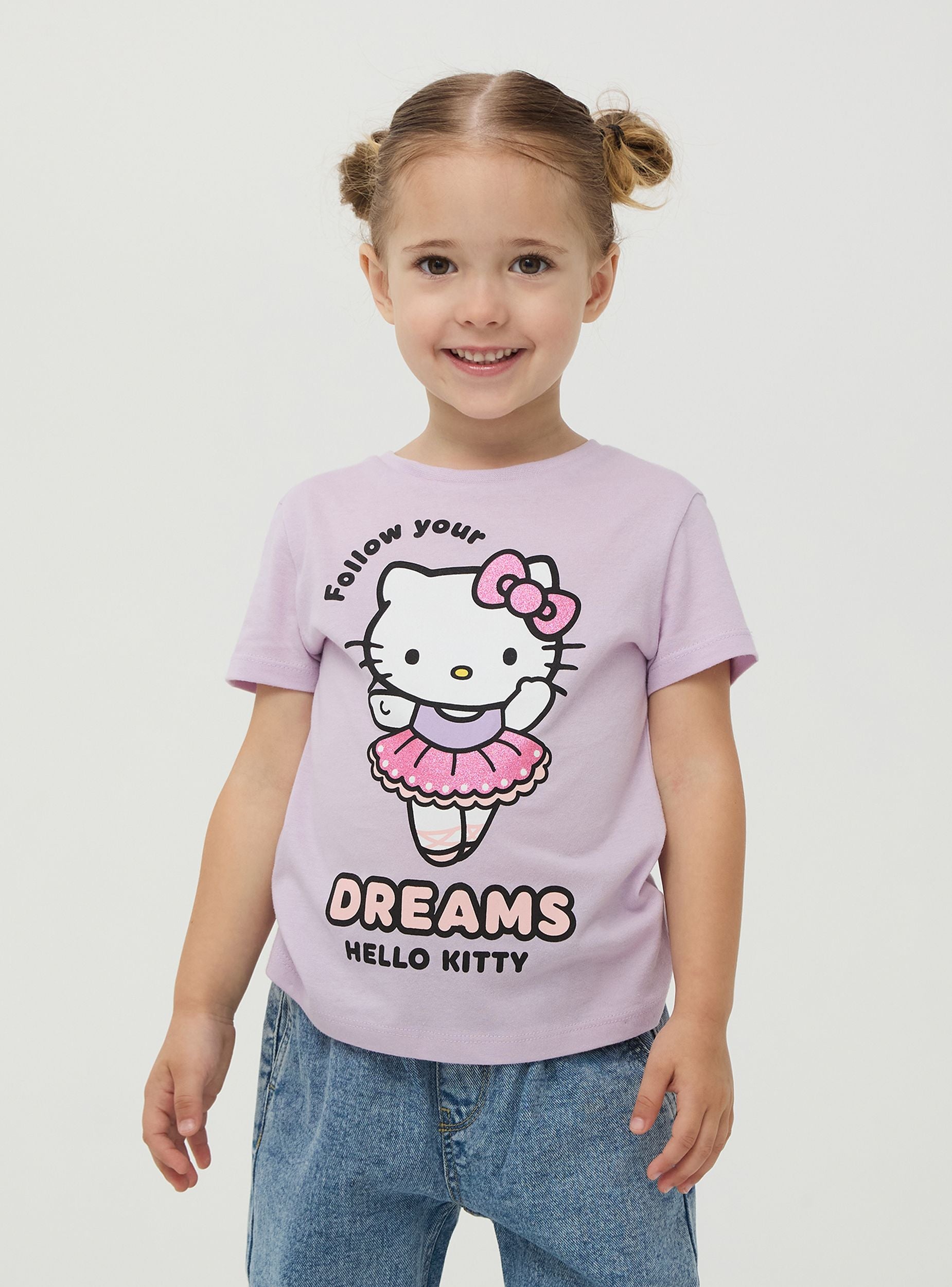 T-shirt for girls with Hello Kitty® print, perfect for little fans of the famous character. The front print features Hello Kitty in a cute dress, accompanied by the phrase "Follow your dreams". The design of the t-shirt is intended to offer comfort and style, making it ideal for any casual occasion.