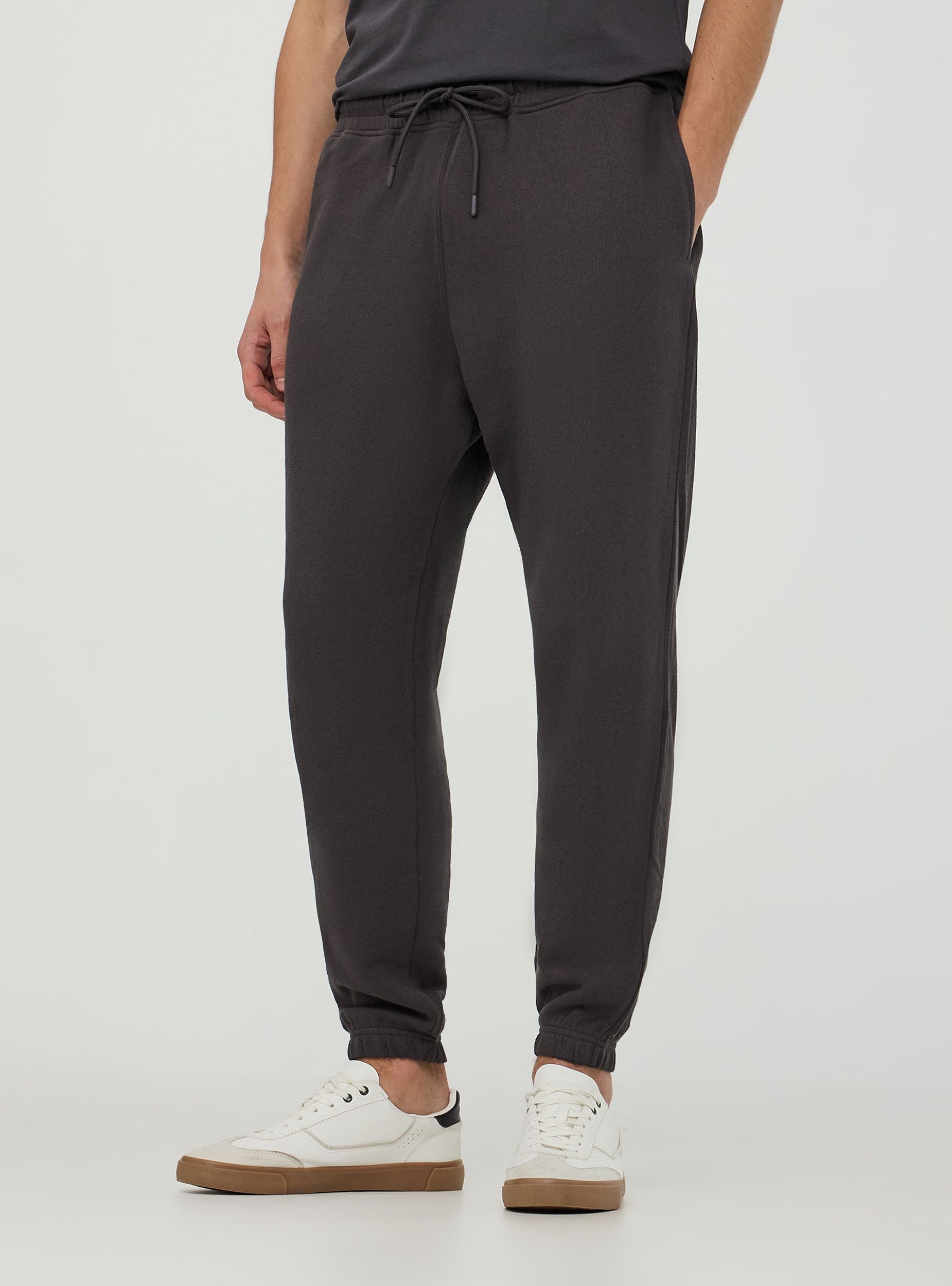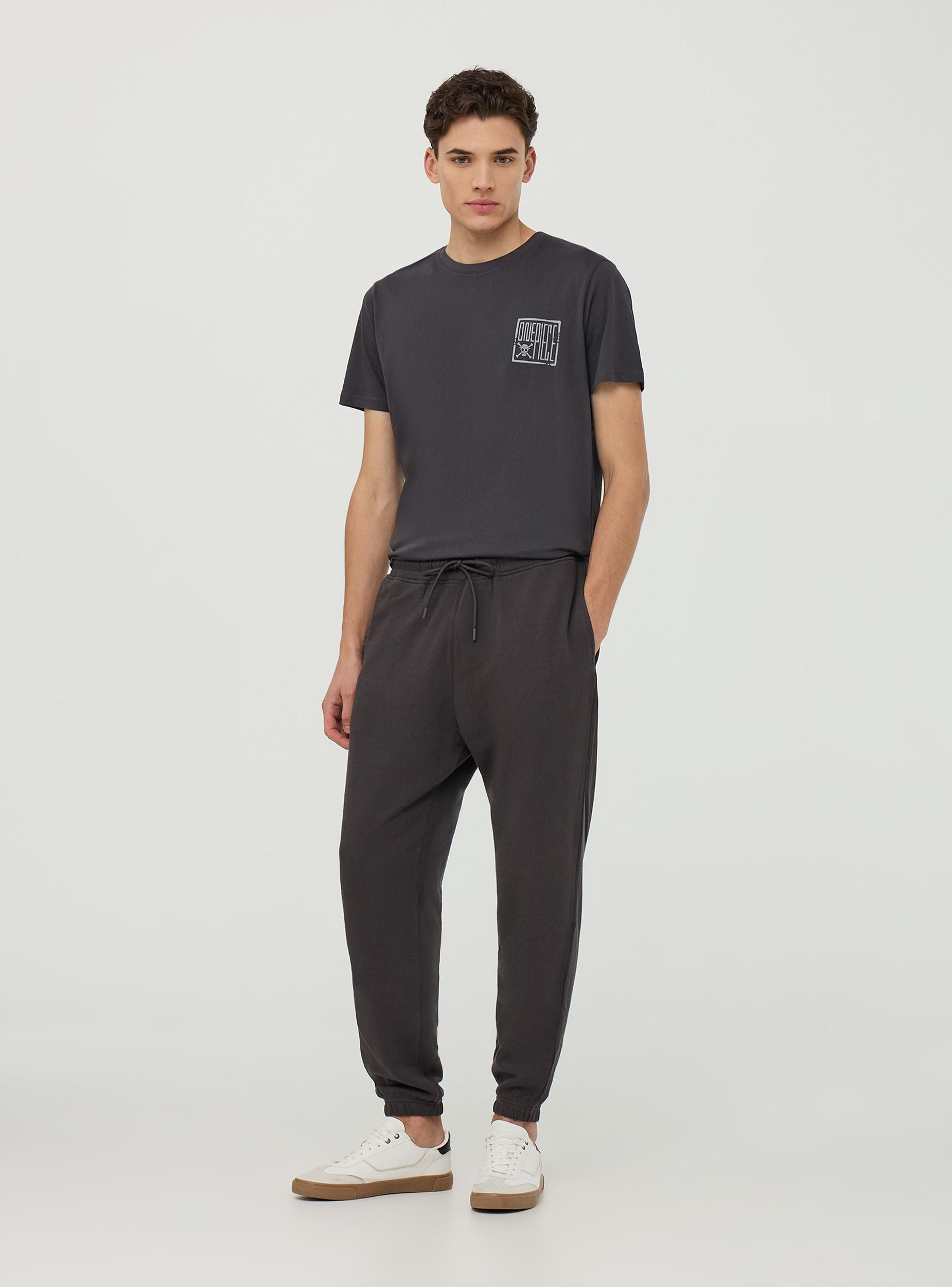 Men's jogger trousers ideal for leisure time. With an elastic waistband and adjustable drawstring, they ensure maximum comfort and practicality. Equipped with side pockets and a back pocket, they are perfect for carrying small items. The ankle cuffs complete the functional design, suitable for a casual and relaxed look.
