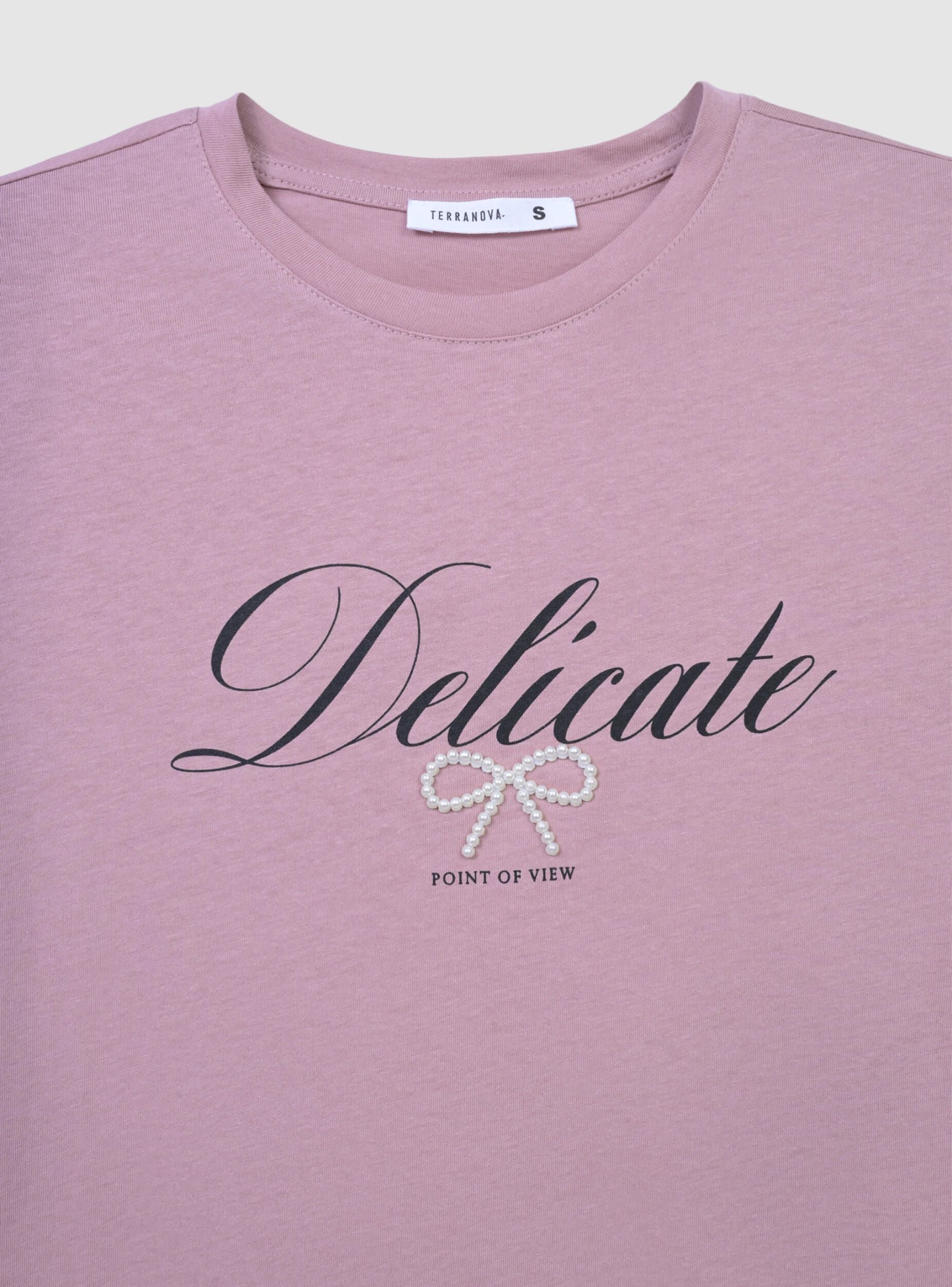 Loose T-shirt with lettering and bow