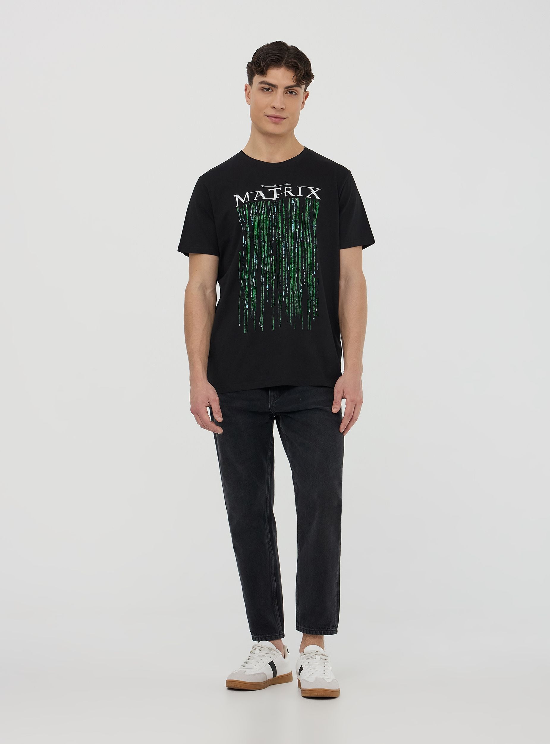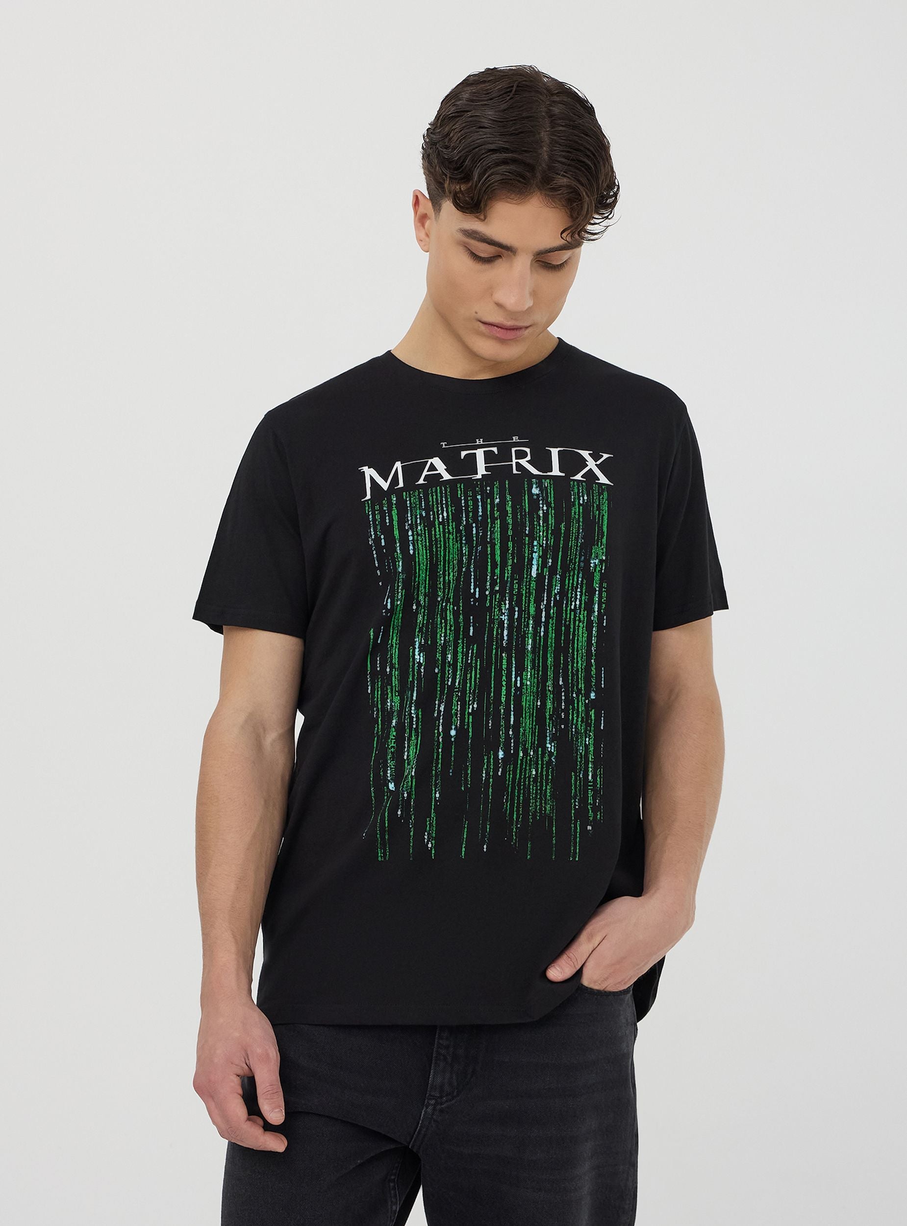 Perfect men's t-shirt for cinema and science fiction enthusiasts. The design features short sleeves and a crew neck for optimal comfort, while the Matrix® print evokes the iconic green digital code, symbol of the famous saga. Ideal for casual looks with jeans and sneakers or for streetwear outfits with a geek touch. A must-have for those who love urban style and graphics inspired by the world of science fiction.Details