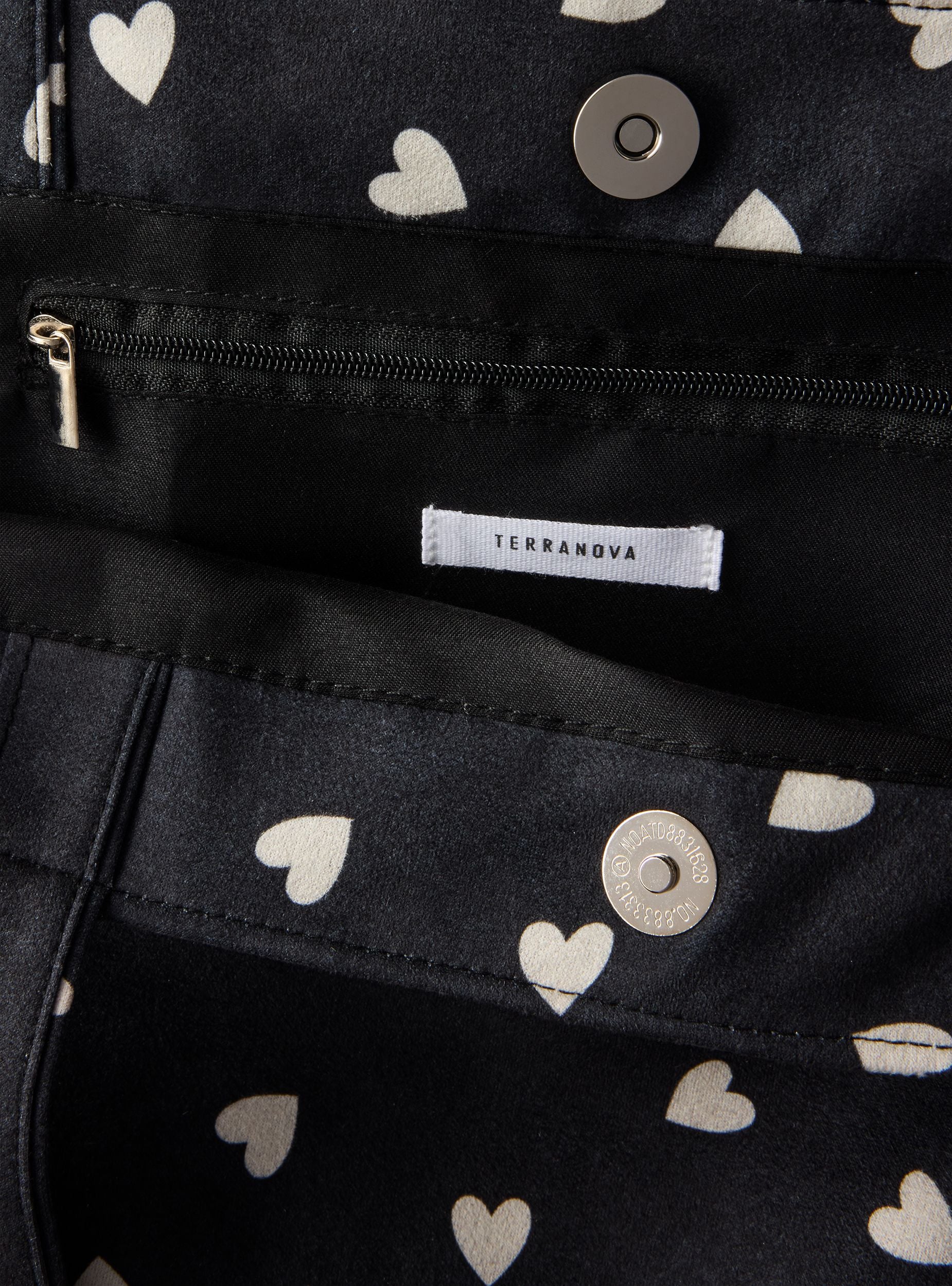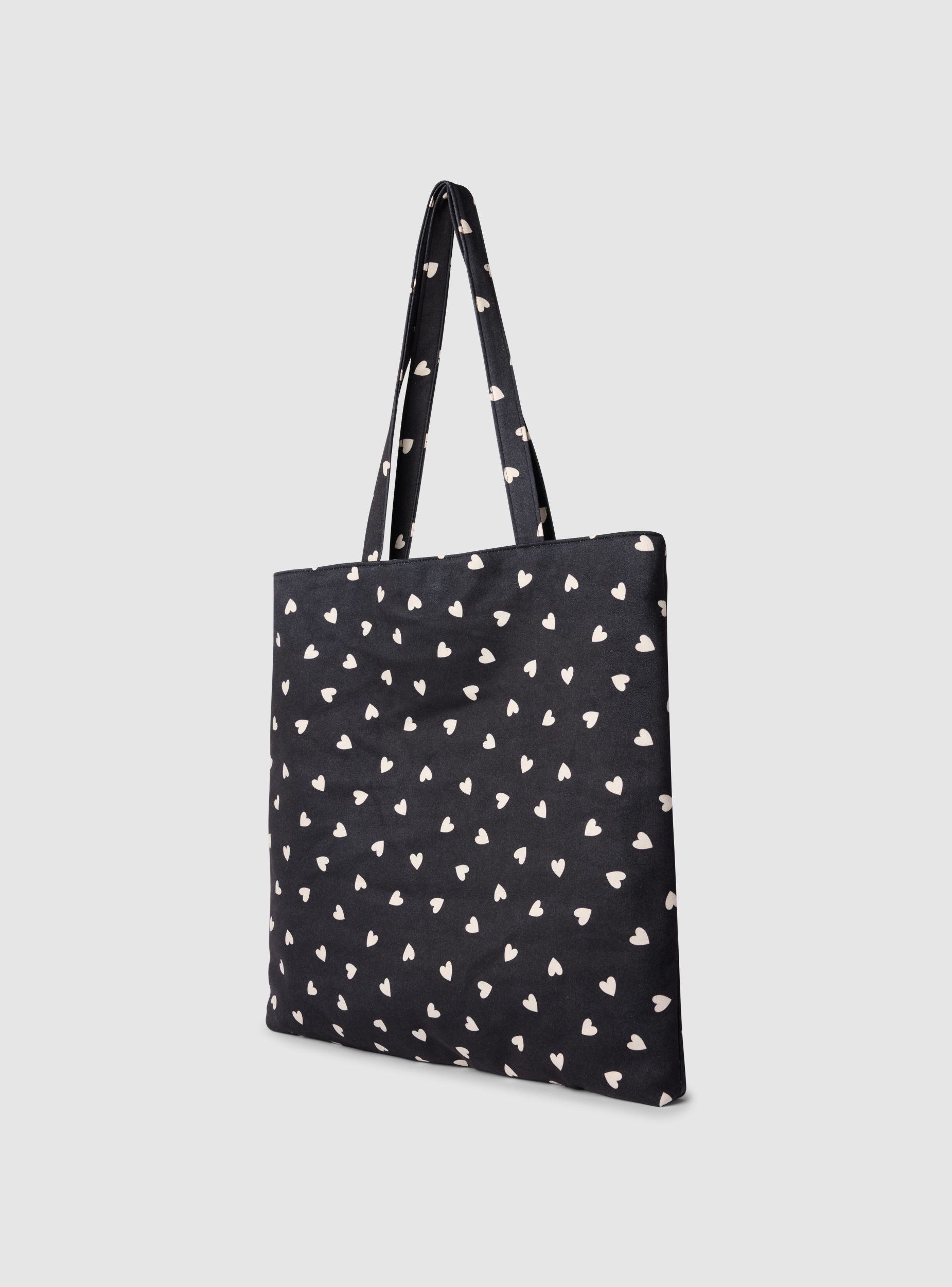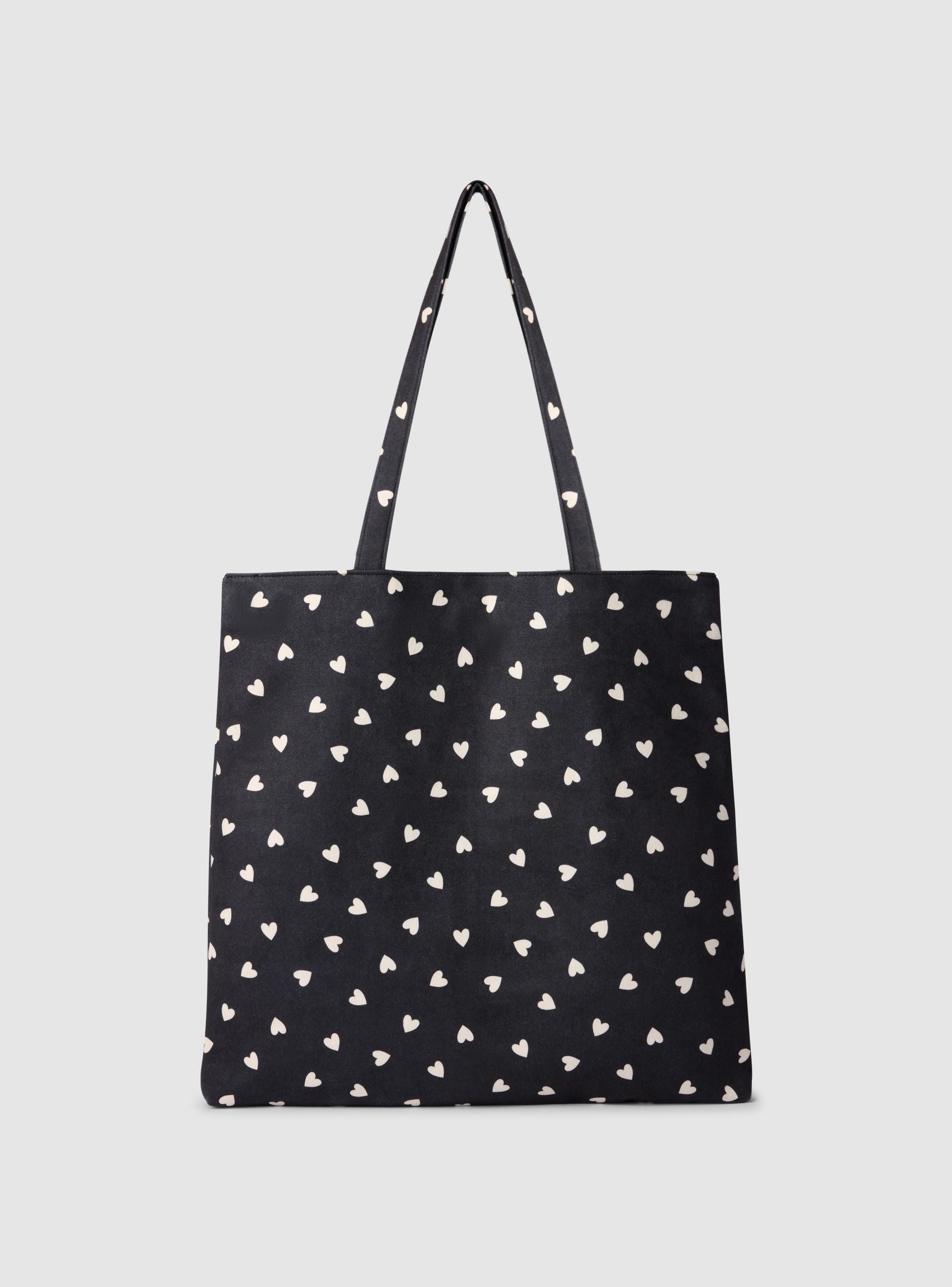Women's shopper bag, made of microfiber, ideal for adding a fun and feminine touch to your everyday outfits. Lightweight yet durable, it is perfect for accompanying you in the city, at university, or during your leisure time. The all-over heart pattern makes it original and romantic, while the long handles allow for comfortable shoulder carrying. Practical to fold, it is a versatile accessory to always have with you. Dimensions: Height 47 cm, Length 47 cm.