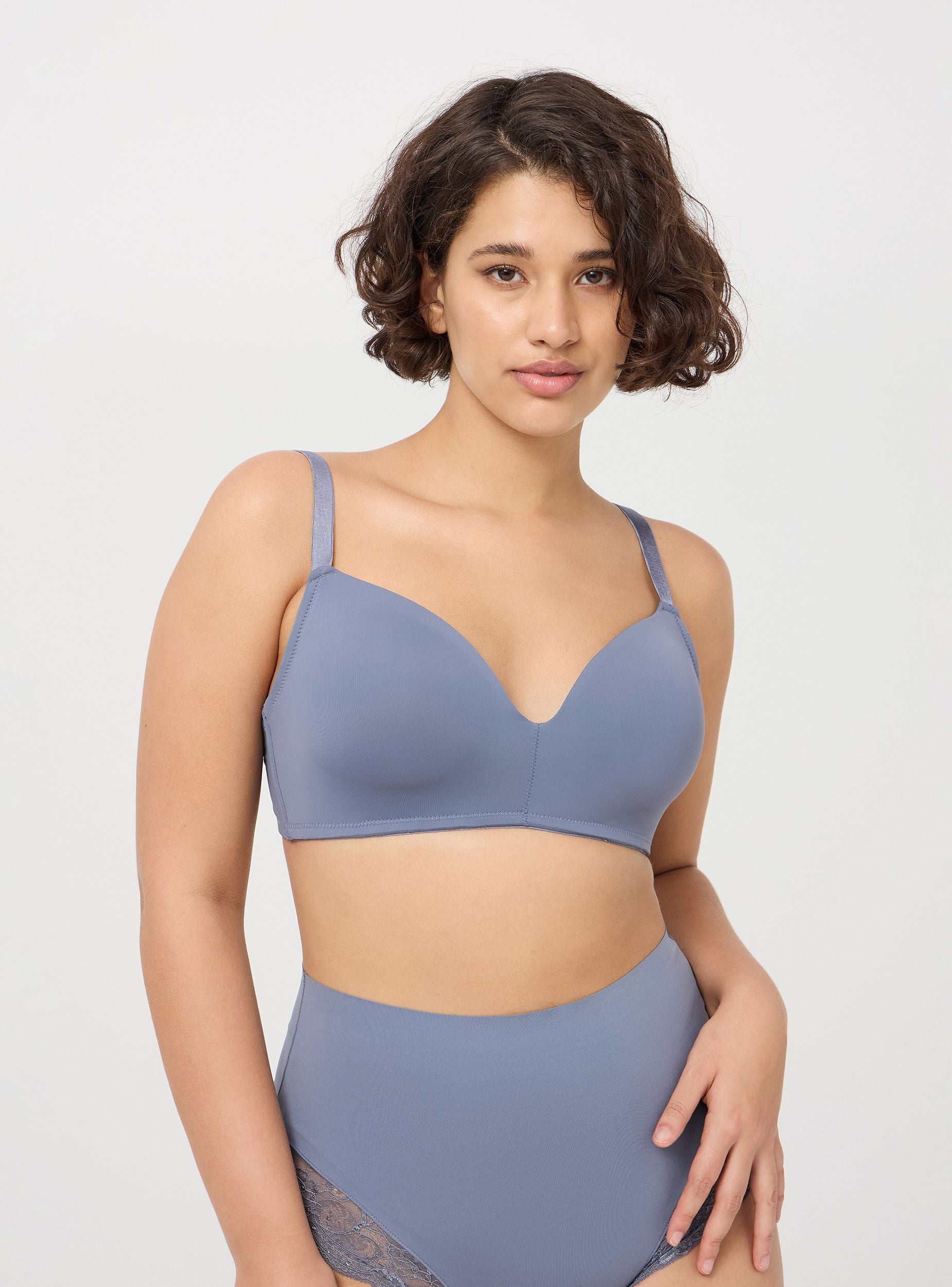 Women's moulded bra made of soft solid microfibre. Unmatched comfort. The moulded cups provide optimal support. Equipped with adjustable straps and a hook-and-eye back closure. Ideal for everyday use.