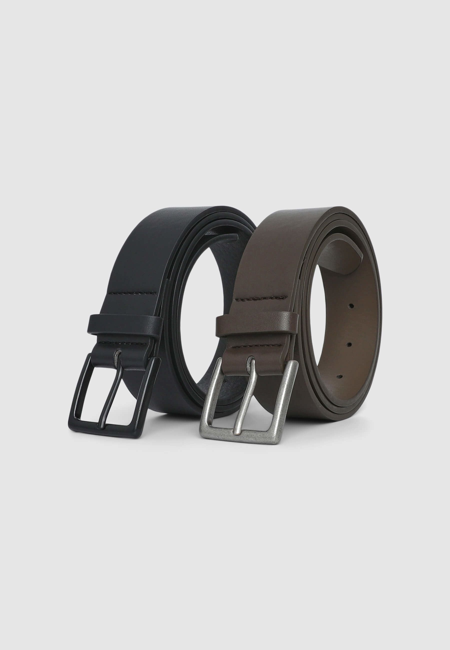 Pack consisting of 2 men's belts perfect for any occasion, featuring a leather-effect finish and a medium width ideal for a versatile look. The solid colour makes them easy to match with casual or formal outfits, ensuring style and practicality throughout the day.Details