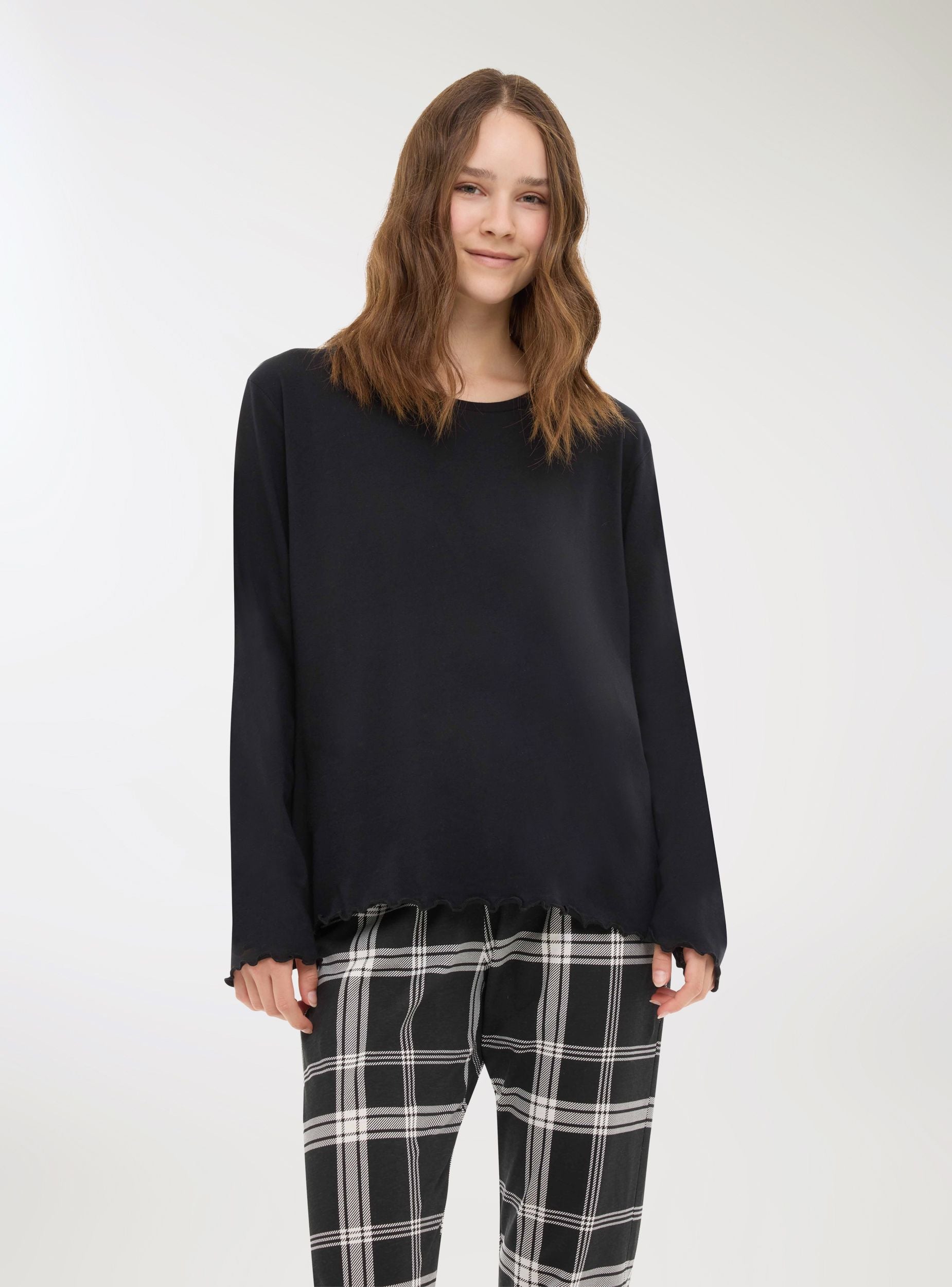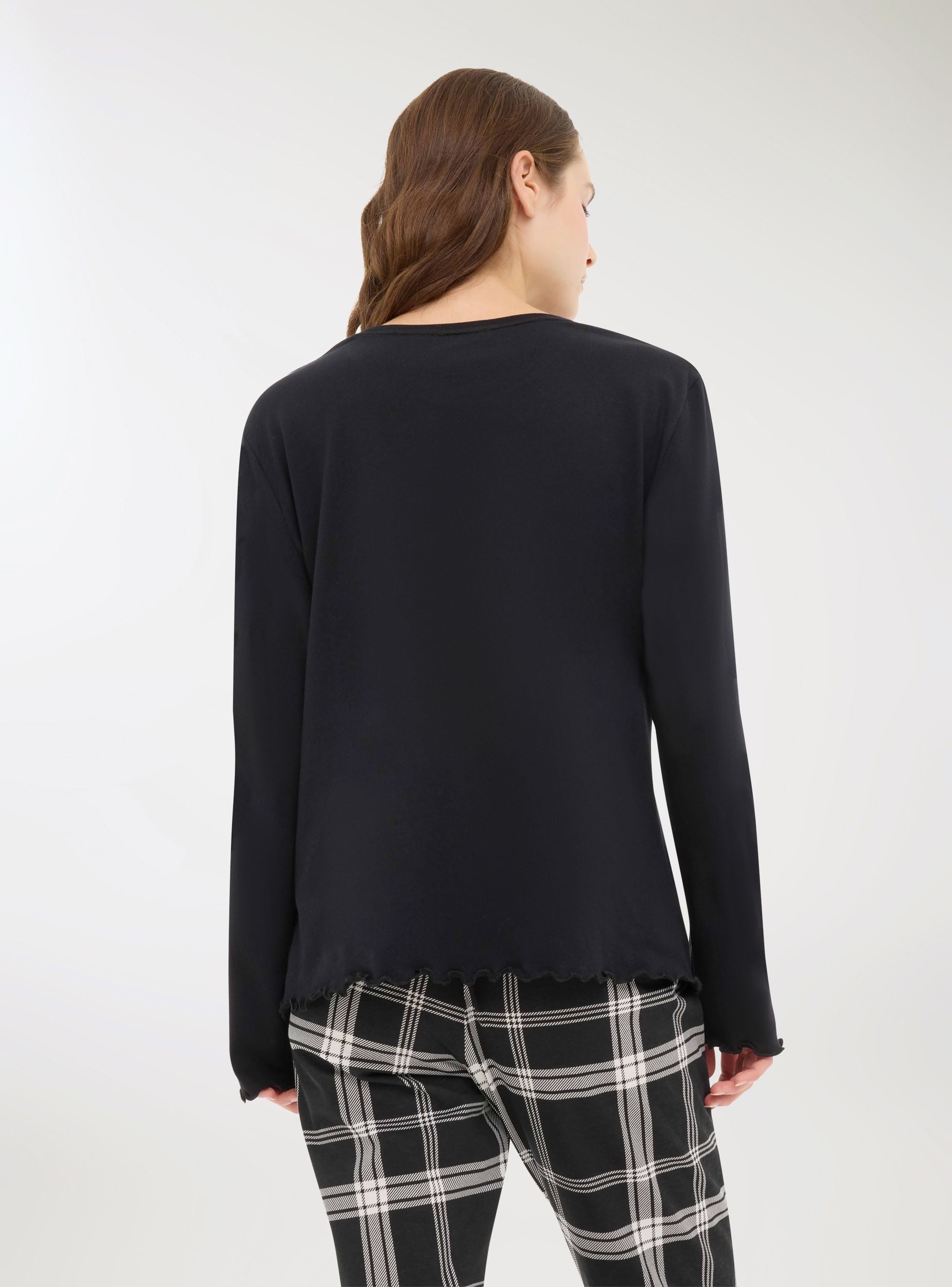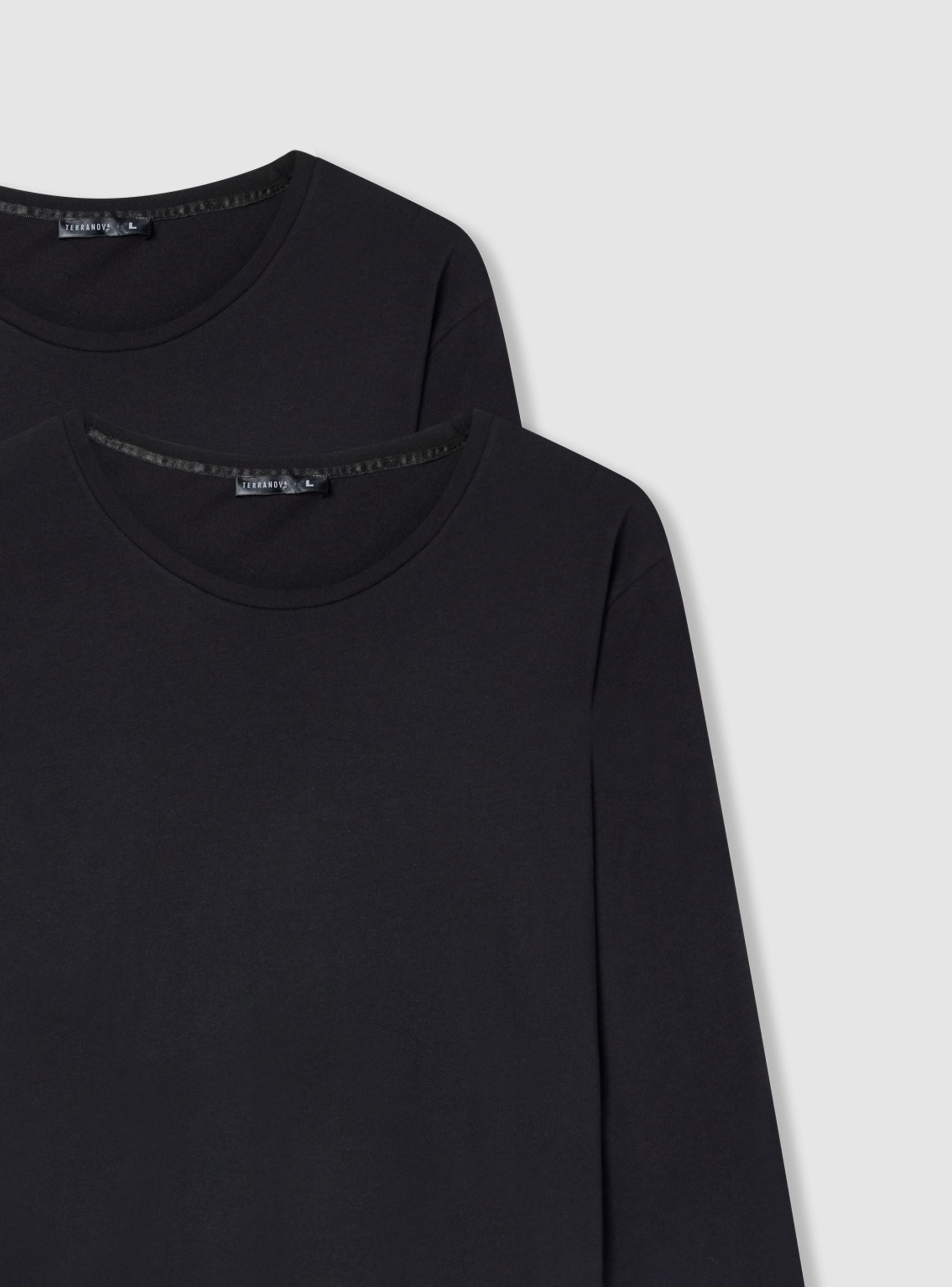Pack containing 2 women's long-sleeve t-shirts, ideal for a casual and versatile look. Perfect for pairing with jeans or trousers for an everyday outfit. The comfortable fit and plain design make them suitable for various occasions, from work to leisure. The crew neck and scalloped edge add a discreet yet elegant touch of style.Details