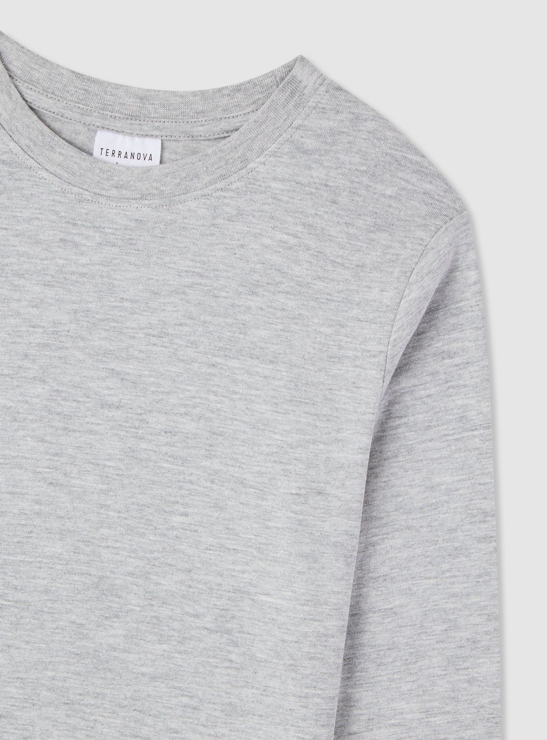 A pack of 3 children's long-sleeve T-shirts, ideal for a casual and comfortable look. Perfect for wearing on various occasions, both at school and during leisure time. The regular fit ensures comfort throughout the day. They easily match with jeans or sports trousers for a practical and versatile outfit.