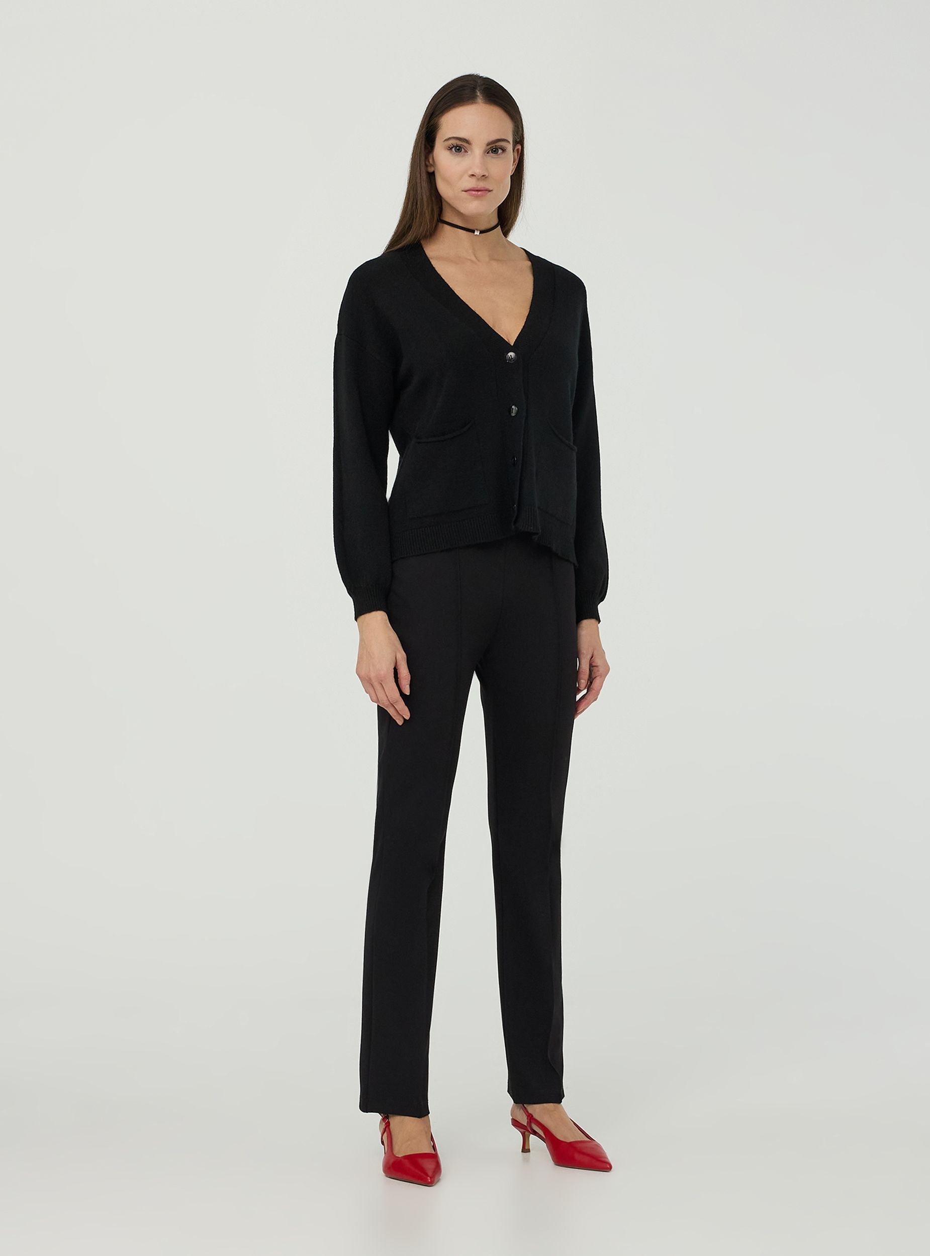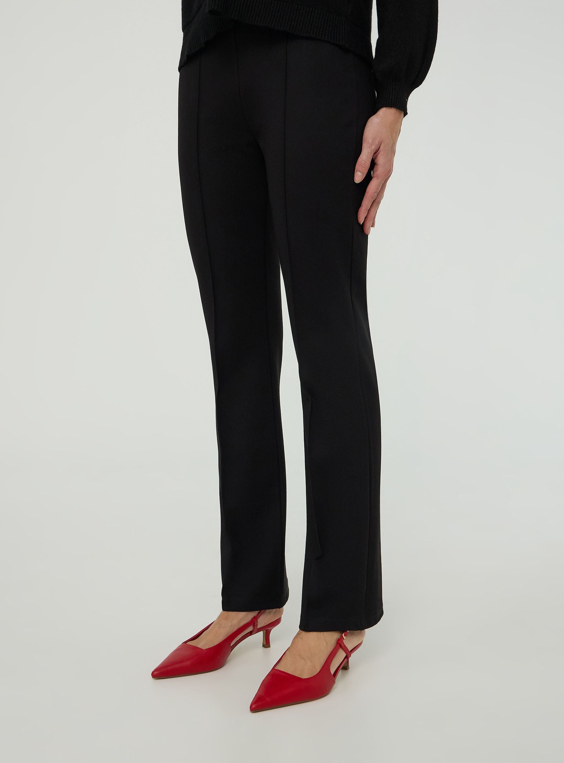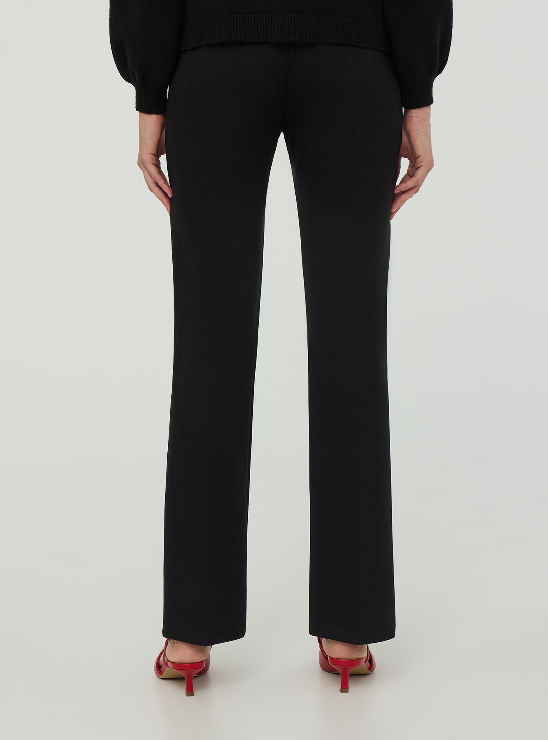 Women's trousers with a straight cut, made in solid colour with an elegant Milano stitch that ensures comfort and refinement. The minimalist design fits perfectly with both casual and formal looks, offering versatility for every occasion. Ideal for pairing with shirts or tops for a sophisticated and trendy look.Details