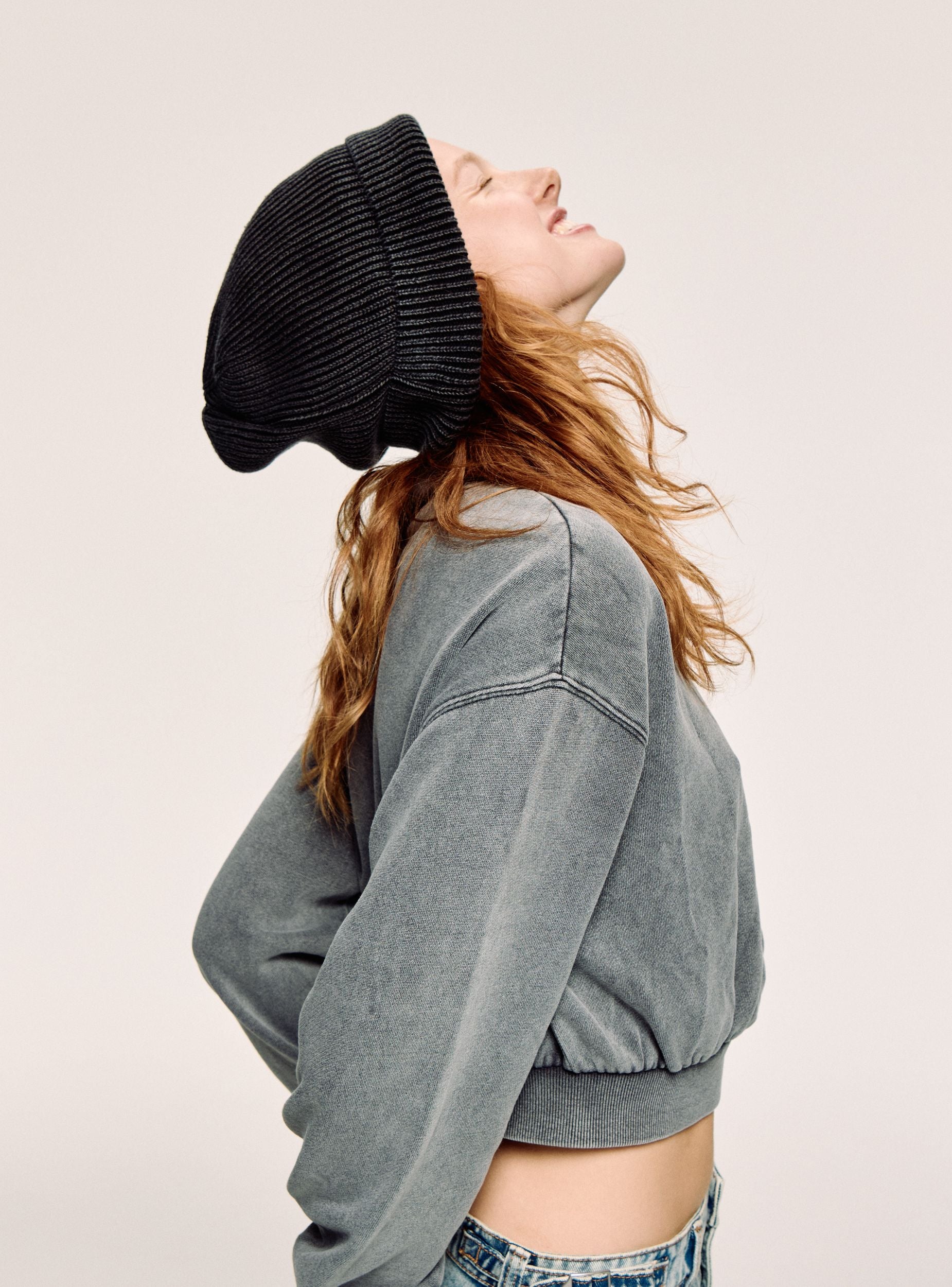 Women's ribbed beanie. Add a touch of style and warmth to your winter wardrobe with this beanie. The vertical ribbed design offers a modern and structured look, while the turned-up cuff adds an element of comfort and fit. This versatile accessory is perfect for completing your winter outfits.Details