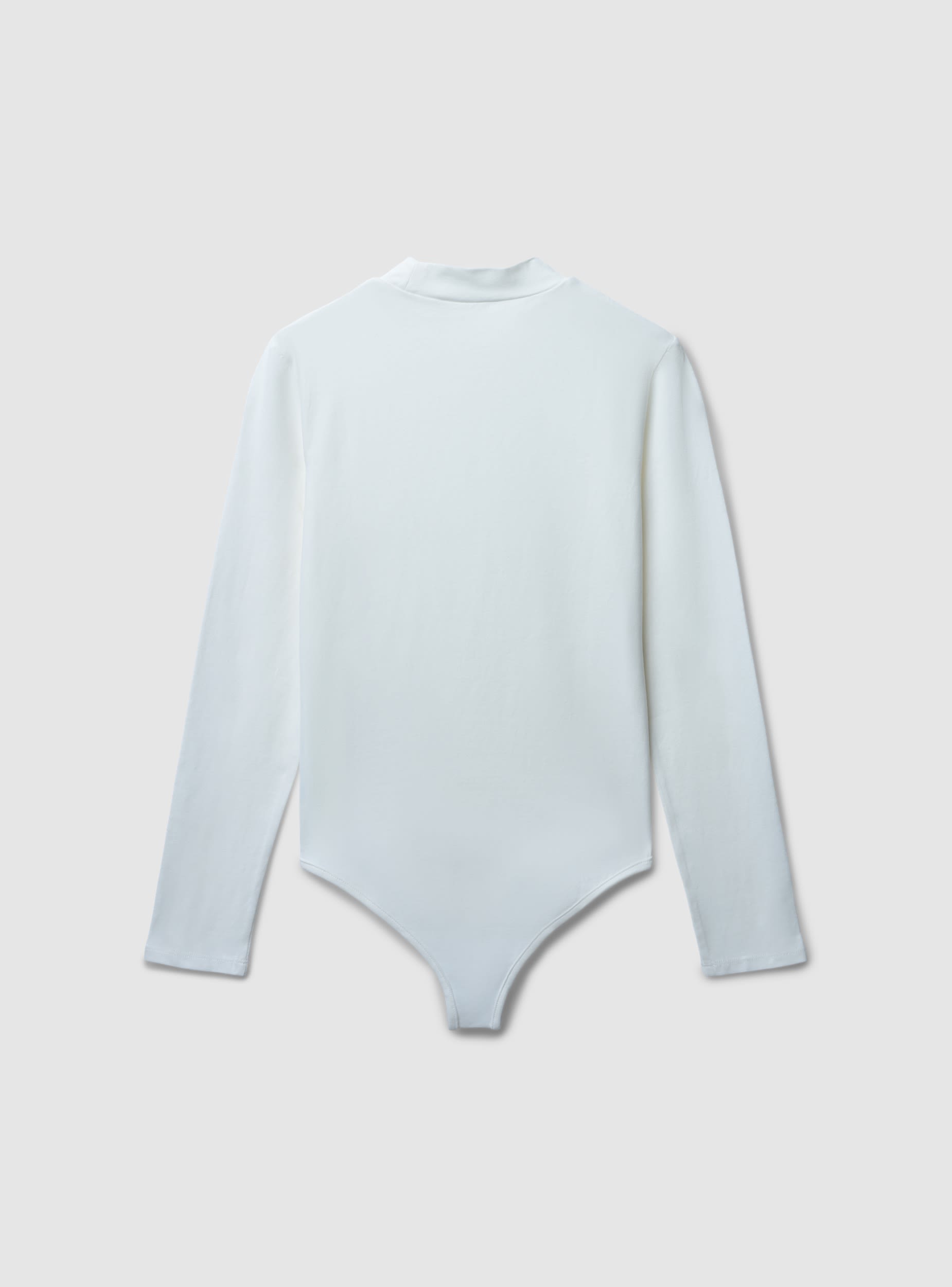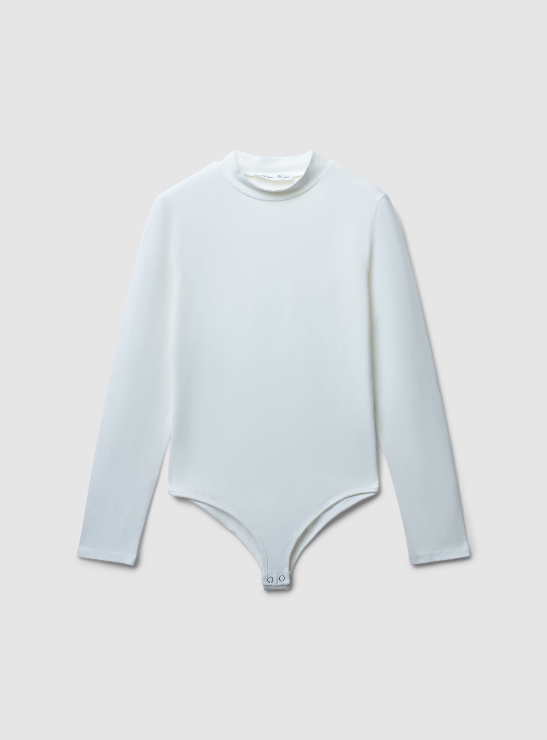 Plain-coloured girl's bodysuit with long sleeves and a high neck. Snap button closure at the crotch for a practical fit that stays neat under skirts or trousers. Regular fit and clean design without pockets or prints, ideal for school and leisure. Perfect as a layer under sweatshirts and cardigans or paired with jeans and sneakers for a simple, polished look.Details