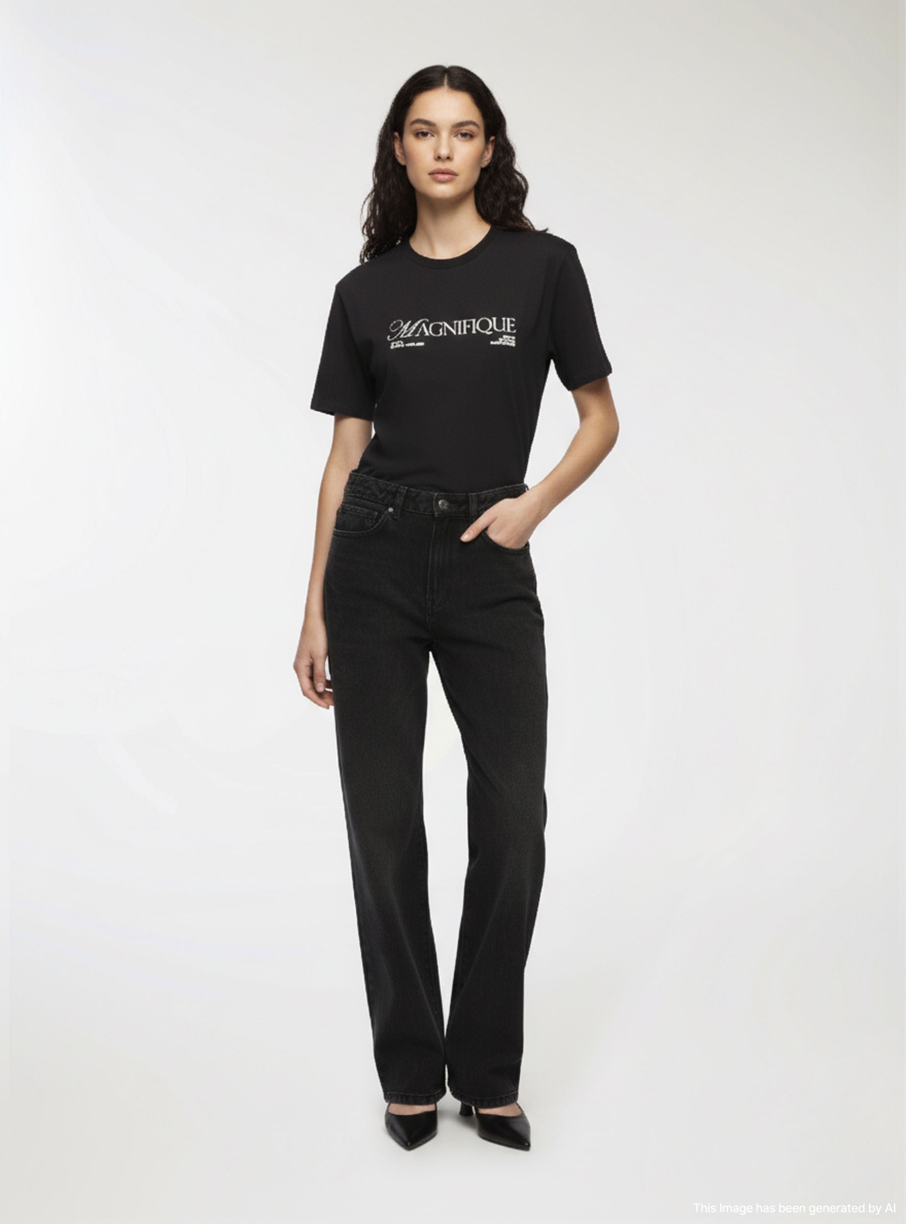 Women's straight leg jeans, ideal for a casual and versatile look. They feature a five-pocket design and a button and zip closure. Perfect to pair with t-shirts or shirts for an everyday outfit. Their long, straight cut ensures comfort and style, making them suitable for various occasions.Details