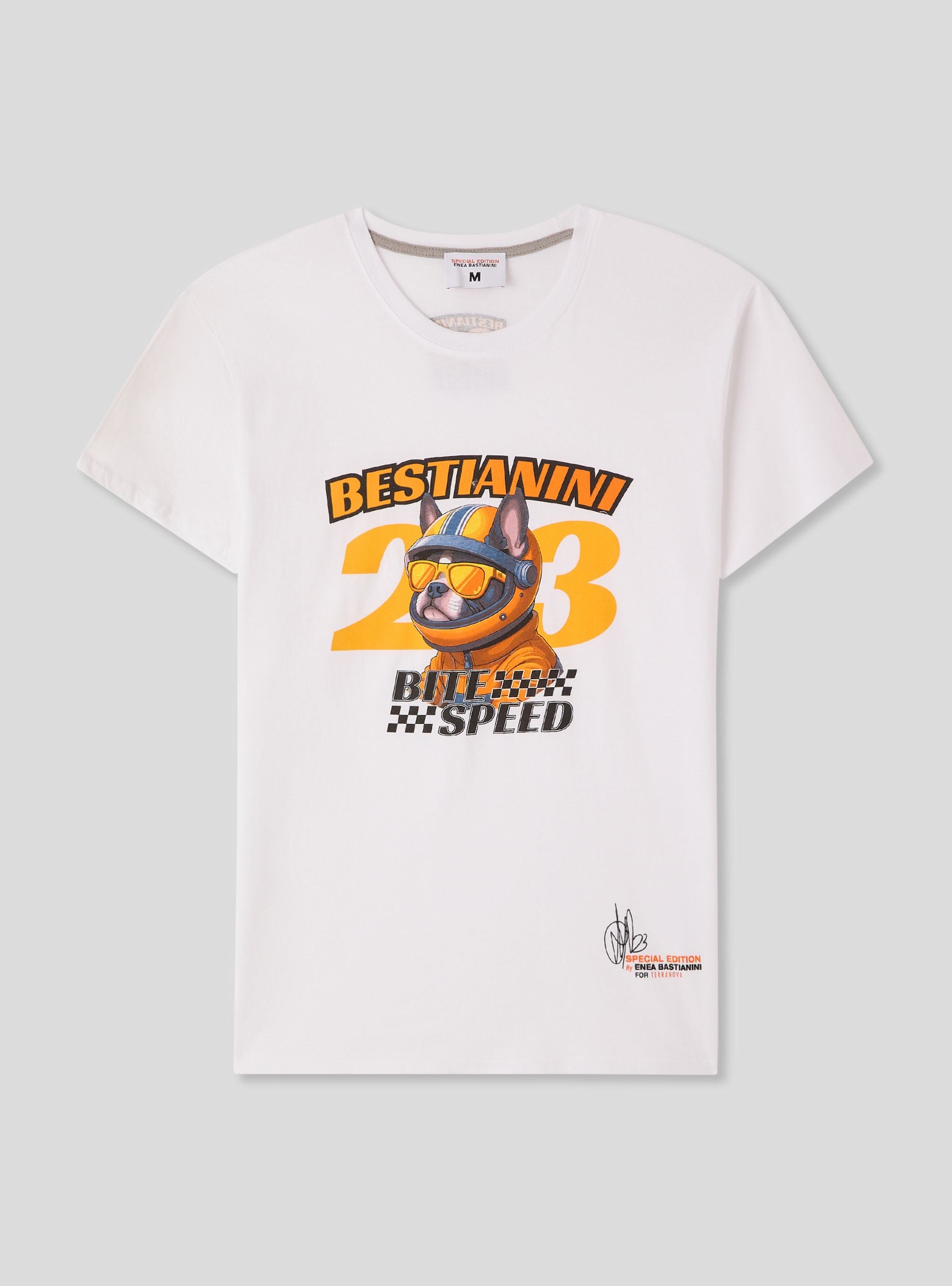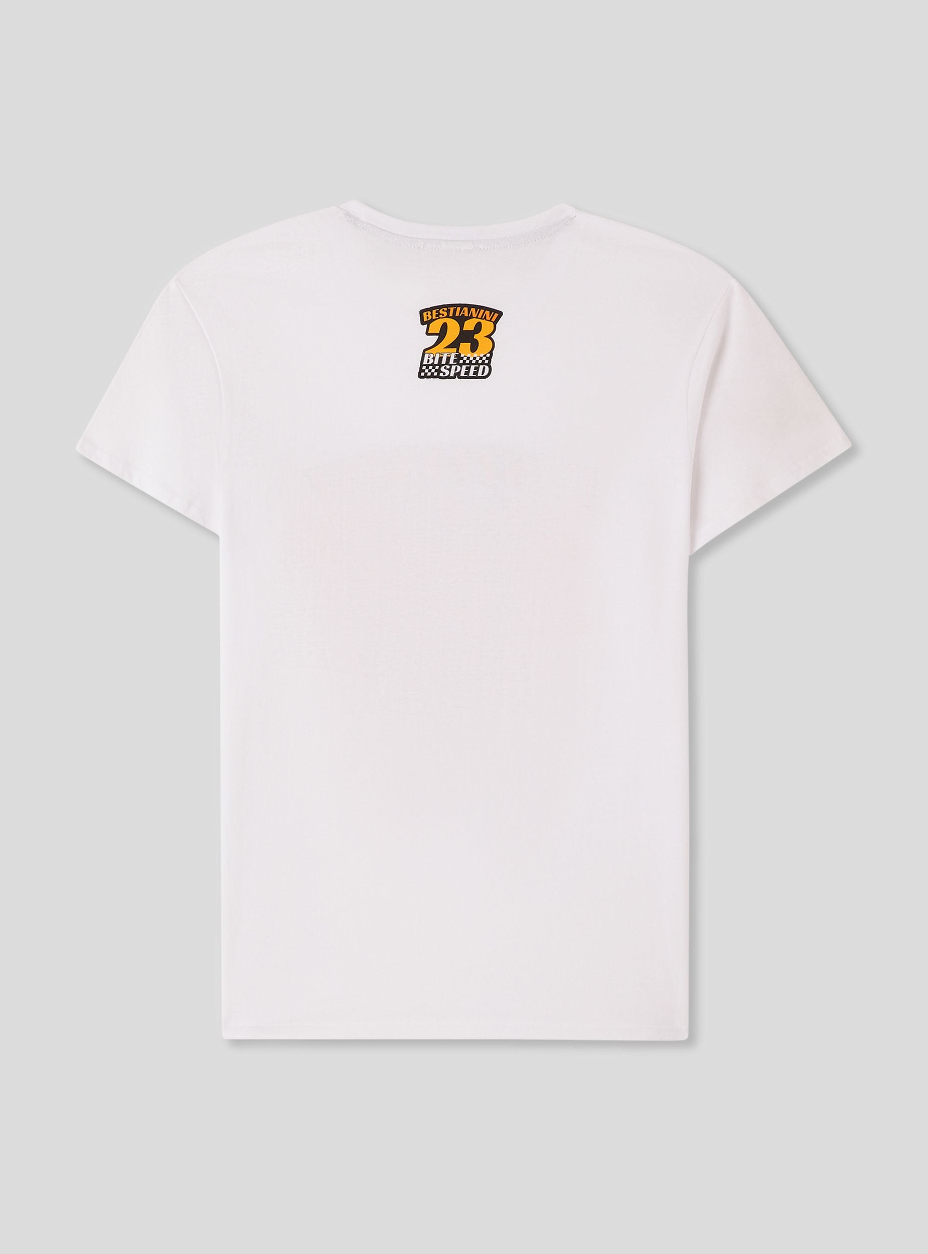 Men's T-shirt with Bestianini graphic print on the front and a small detail on the back. Short-sleeved, crew neck design, ideal for a casual and sporty look. Perfect to pair with jeans or chino trousers for an informal outfit. The regular fit ensures comfort and versatility for various occasions. Special edition Enea Bastianini.
