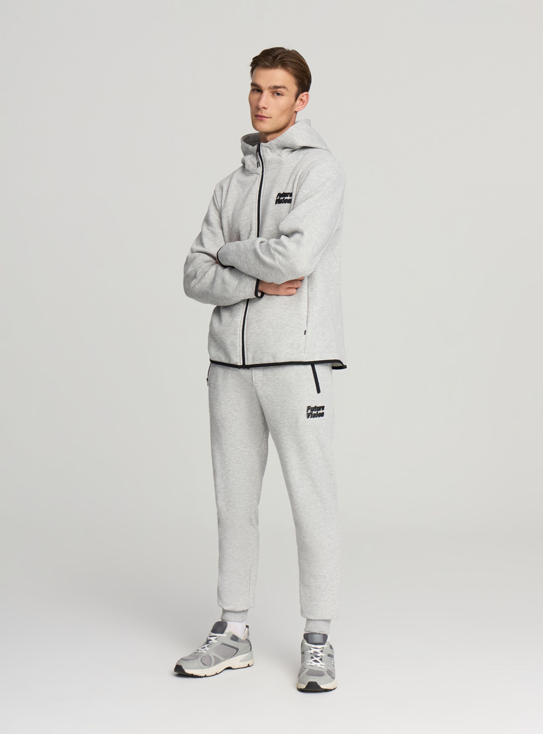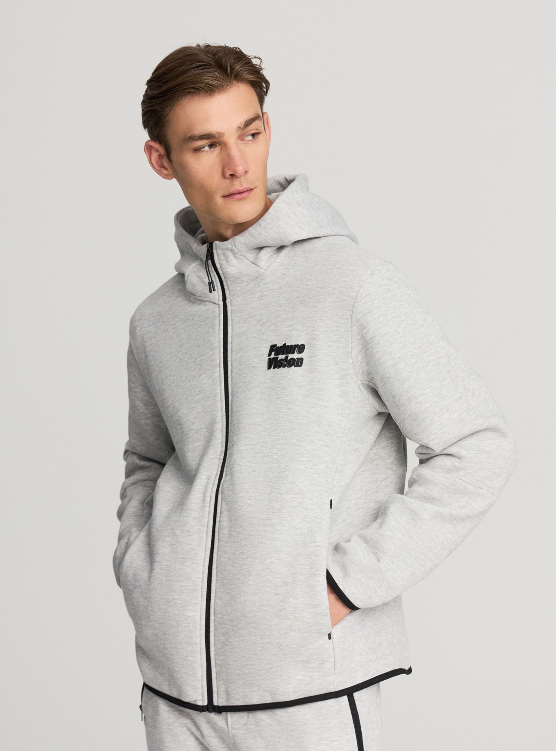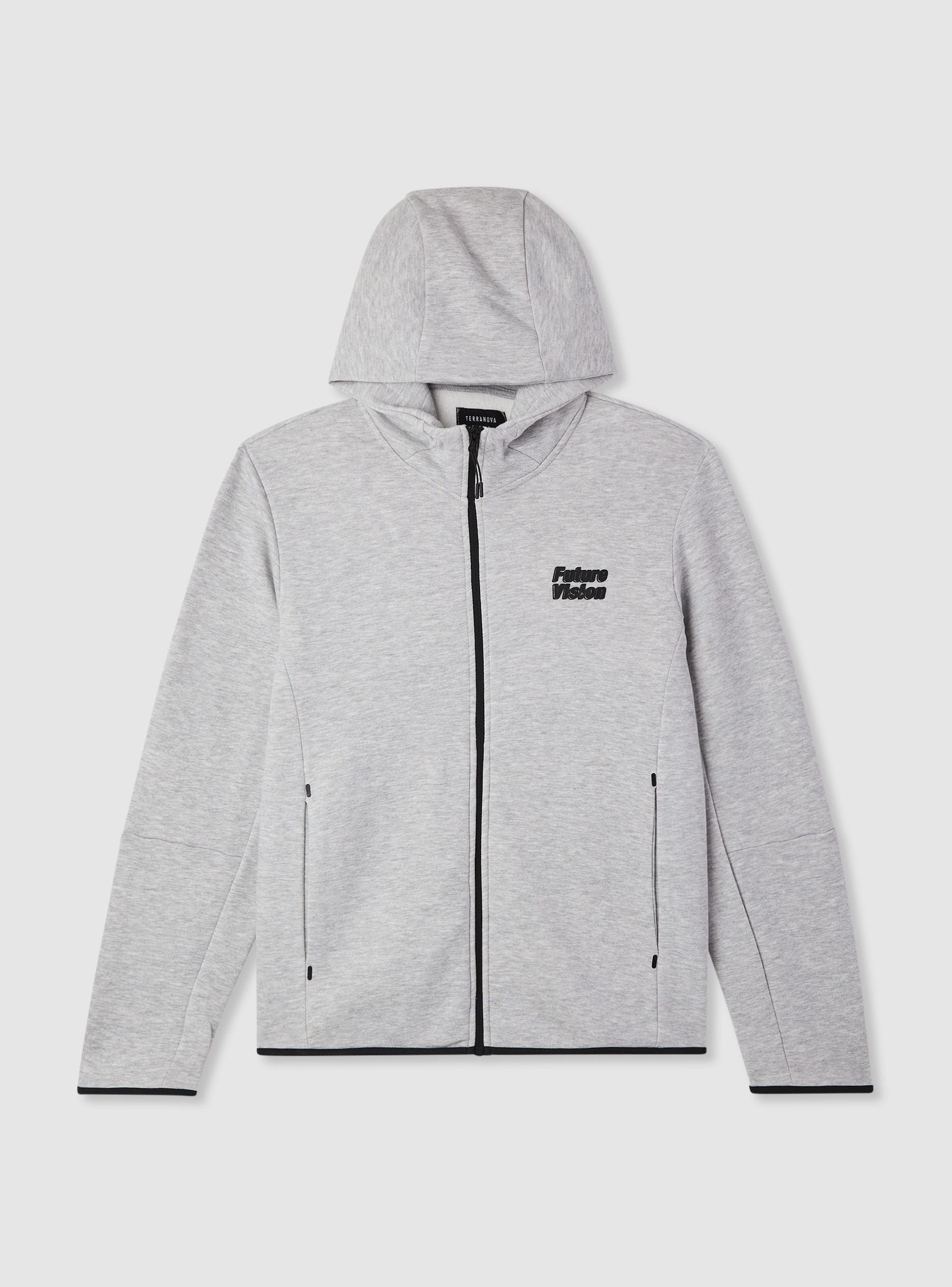 Heavyweight technical sweatshirt for men, perfect for facing the cold with functionality and style. The model features a hood, zip closure, and practical side pockets. The clean, solid-colour design is enhanced by a minimal print with the words “Future Vision” on the chest. Perfect for adding a sporty and modern touch to your look. Ideal for an active and urban casual style.