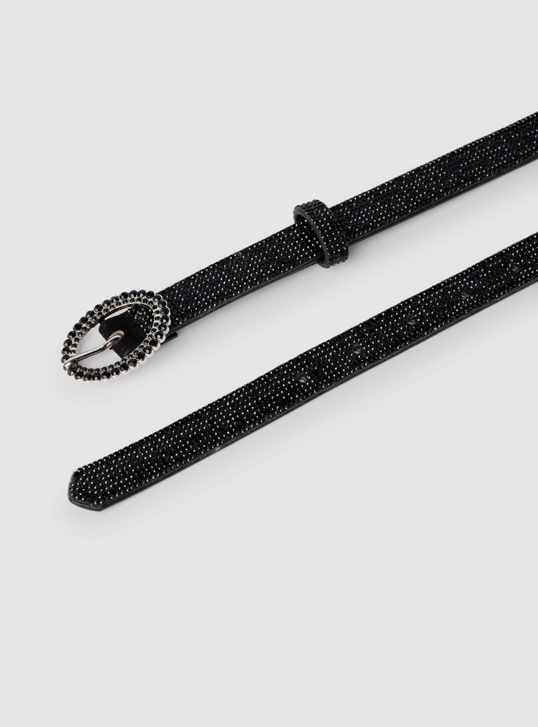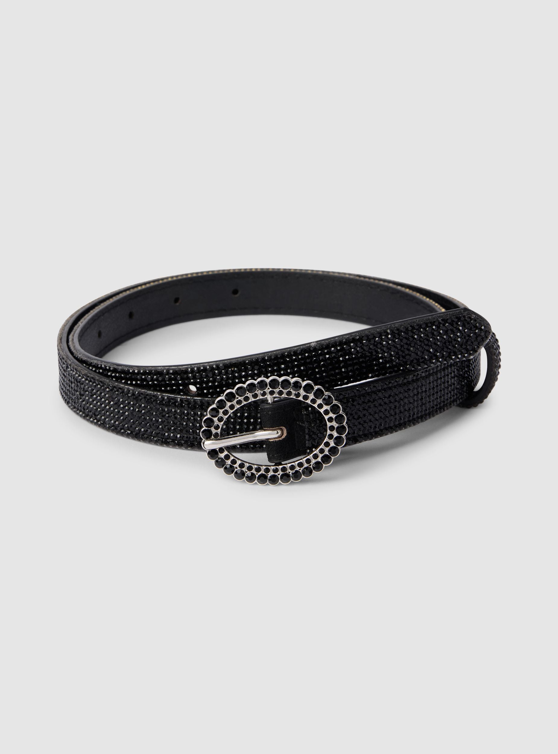 Women's belt ideal for adding a touch of elegance and sparkle to any outfit. Perfect for special occasions or evenings, this belt stands out with its refined design featuring rhinestones and a decorated buckle closure. It can be paired with elegant dresses or trousers for a sophisticated and glamorous look.Details