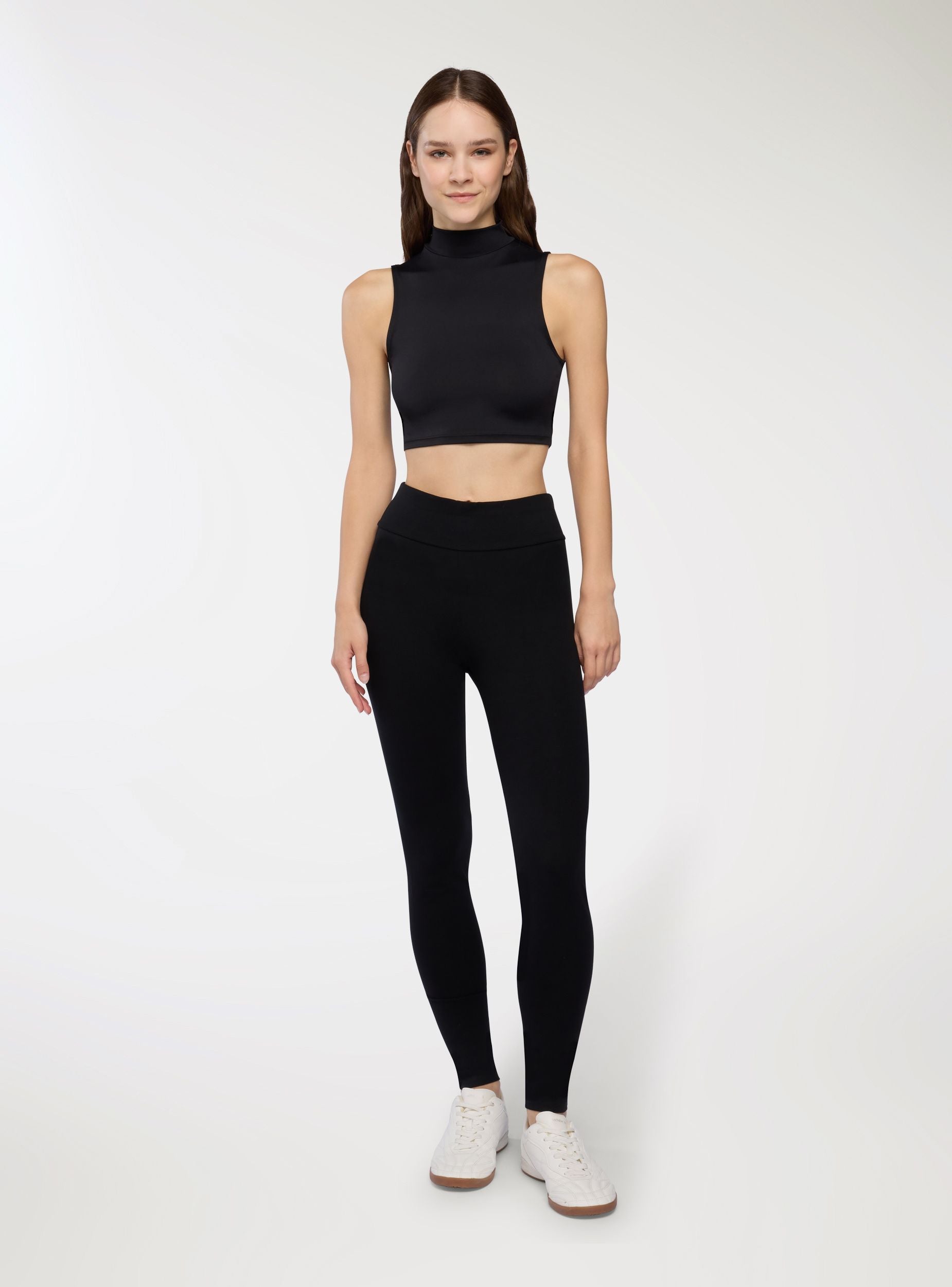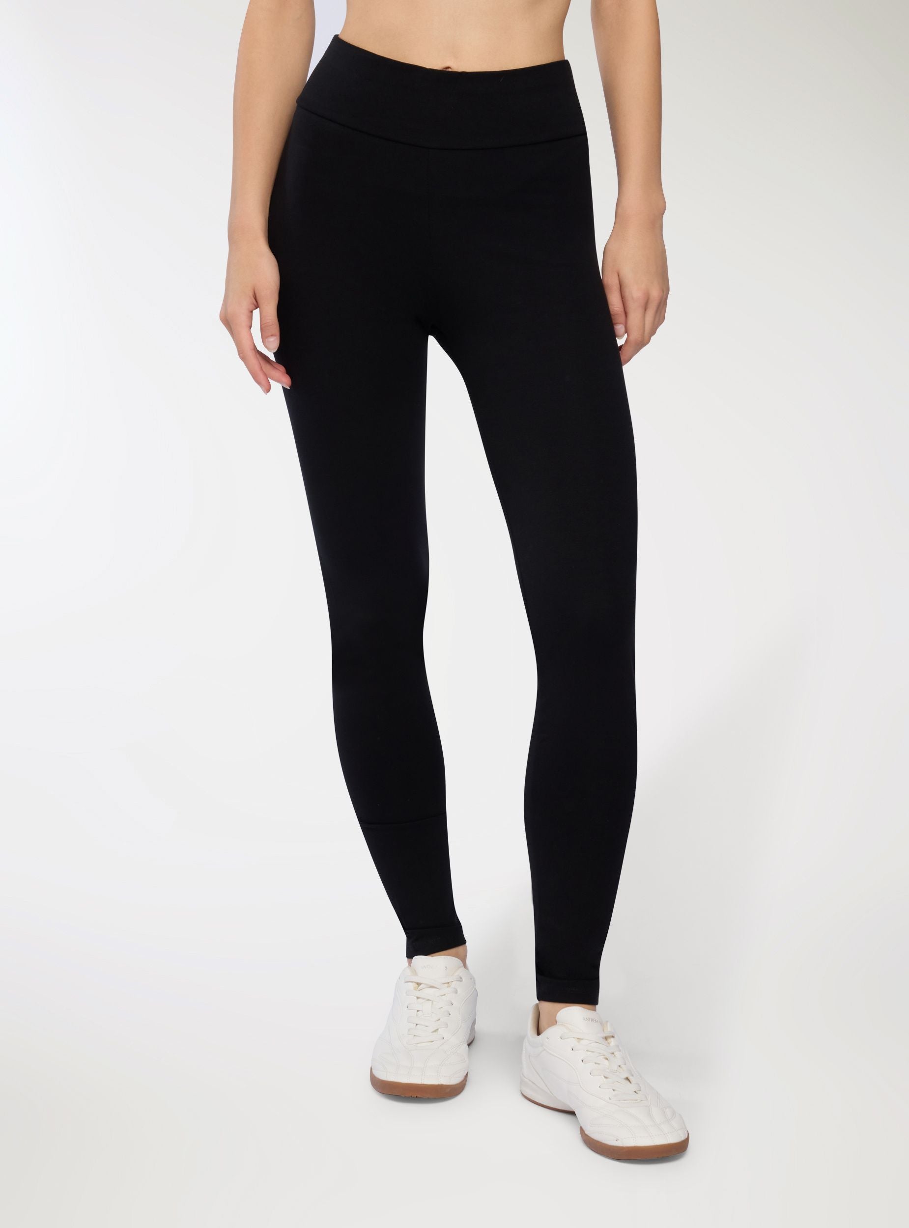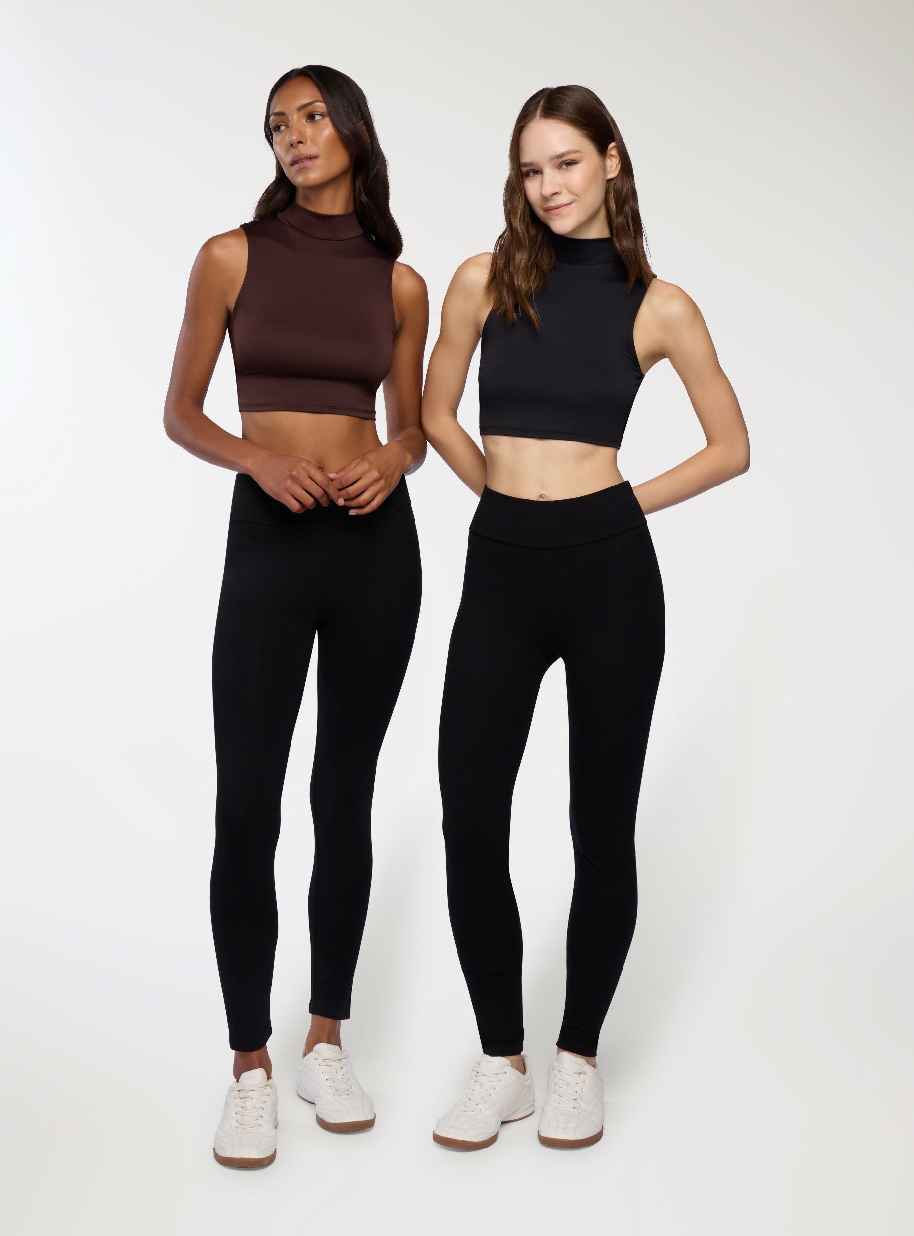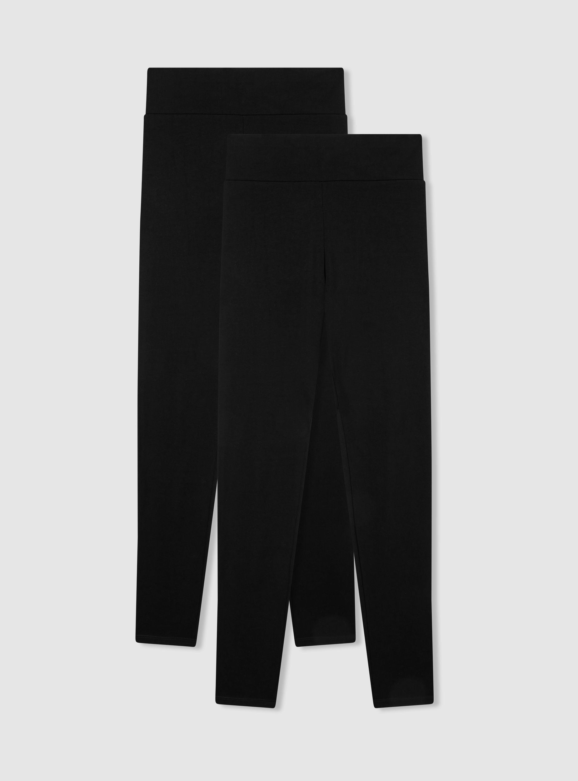 Pack consisting of 2 pairs of women's high-waisted leggings made from heavy stretch fabric in a solid colour. They offer a snug and comfortable fit, perfect for everyday wear, providing support and freedom of movement.Details