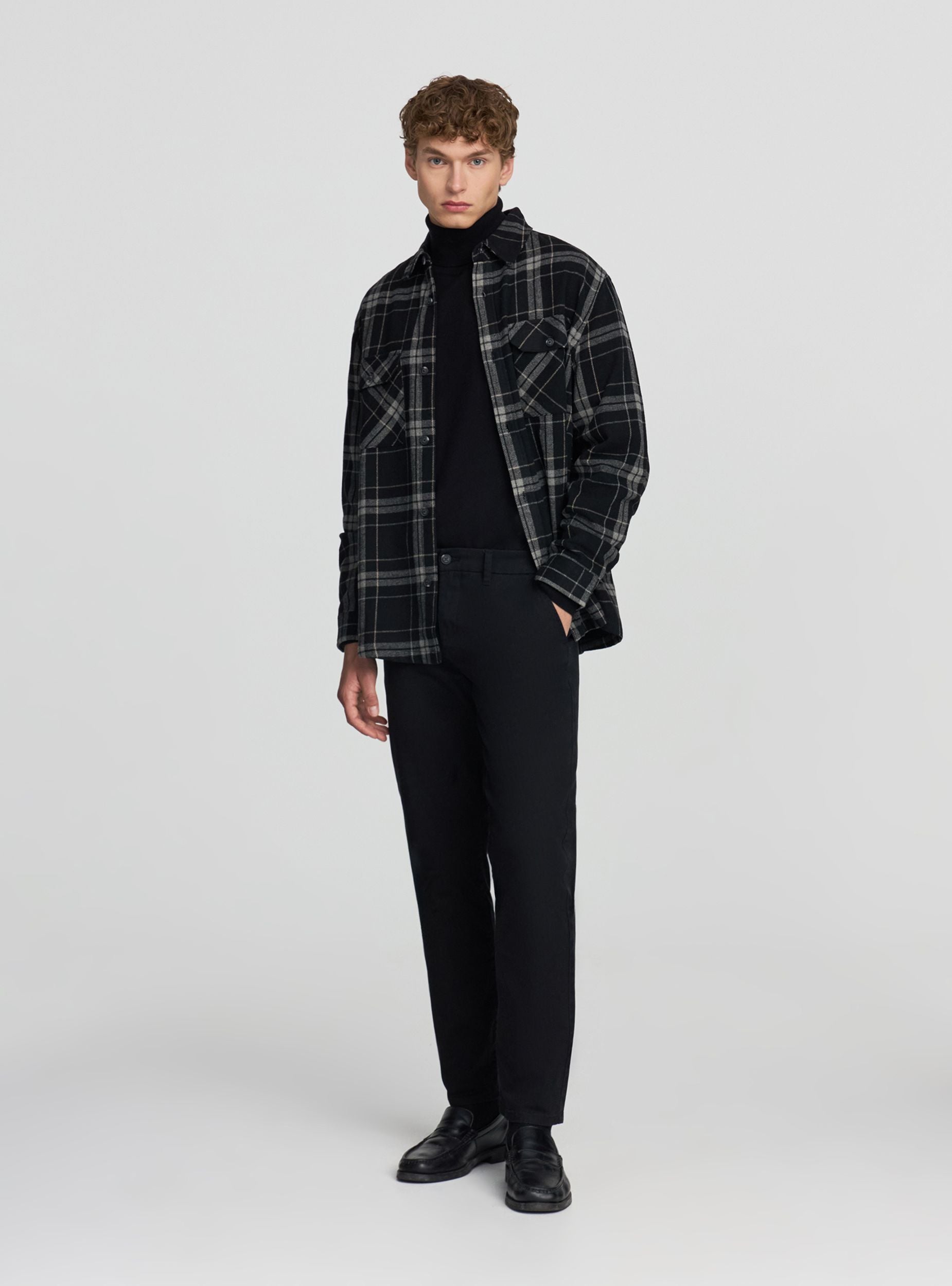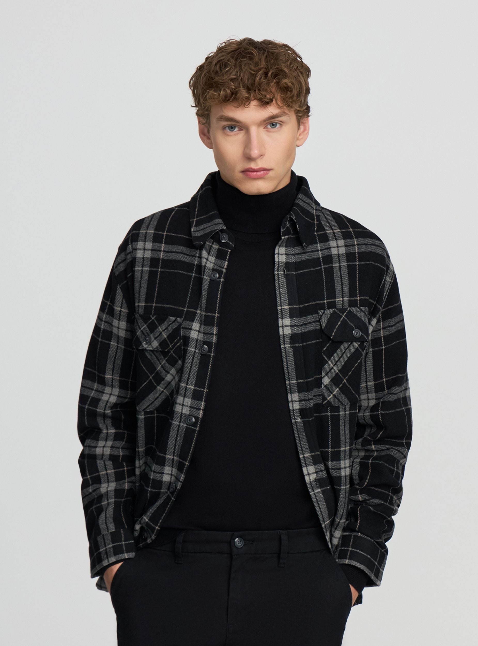 Men's shirt with a checkered pattern, ideal for a casual and versatile look. It features a classic collar and long sleeves, with a button closure at the front. Equipped with practical chest pockets with flaps and buttons, it offers a modern and functional style. Perfect to wear over a t-shirt or paired with jeans for a relaxed and trendy outfit.