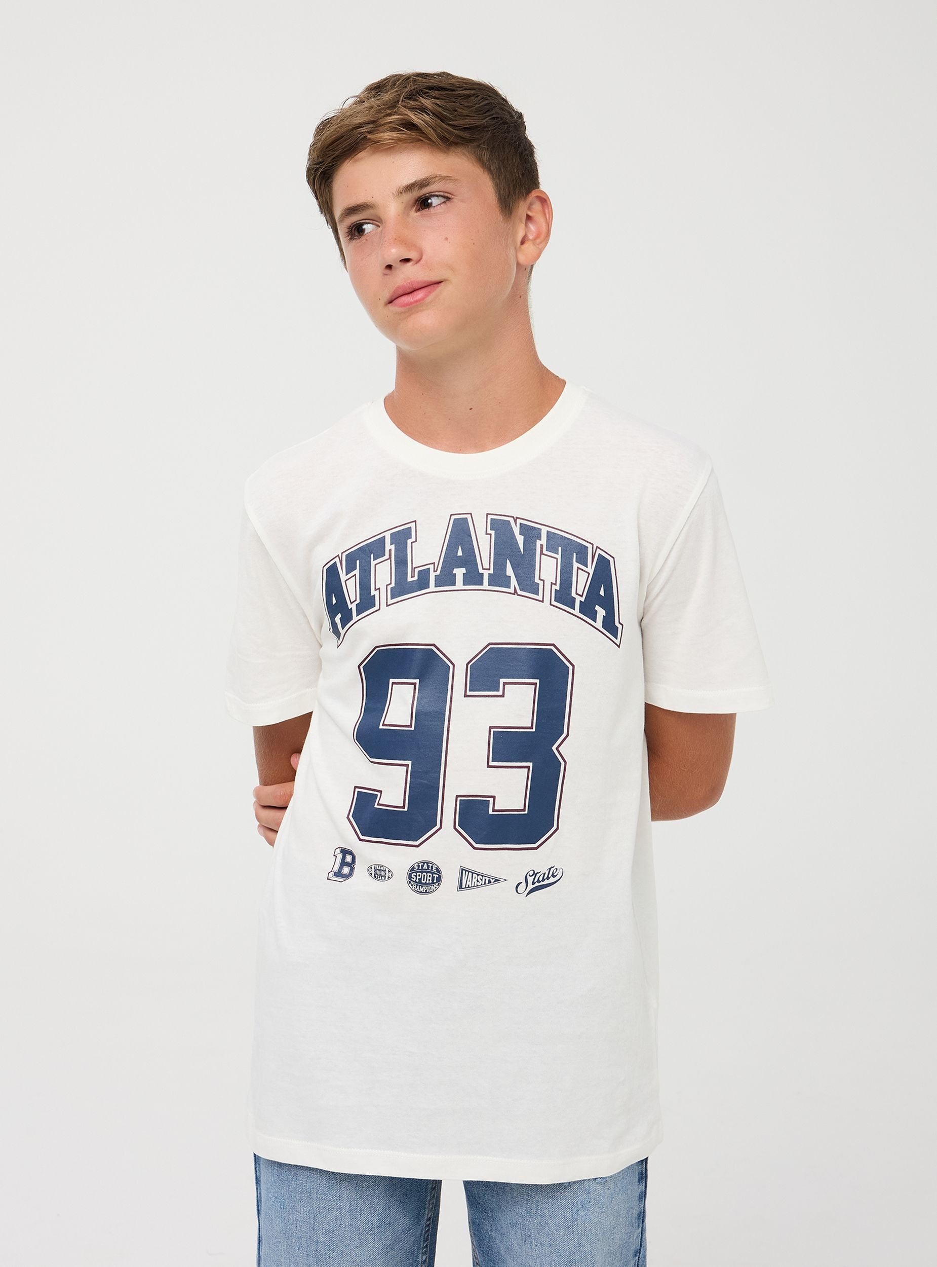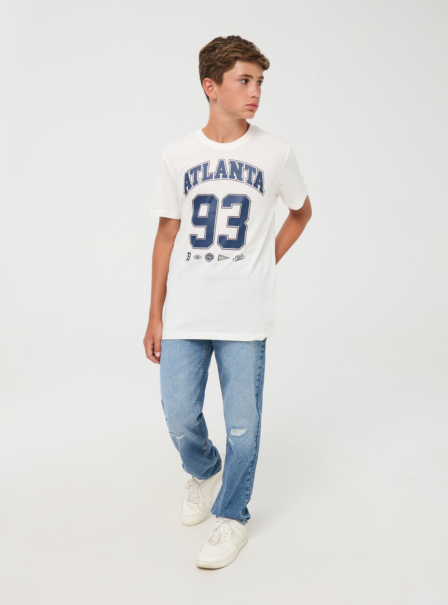 Children's t-shirt in cotton jersey with college print. Crew neck model with short sleeves. Regular fit.Details