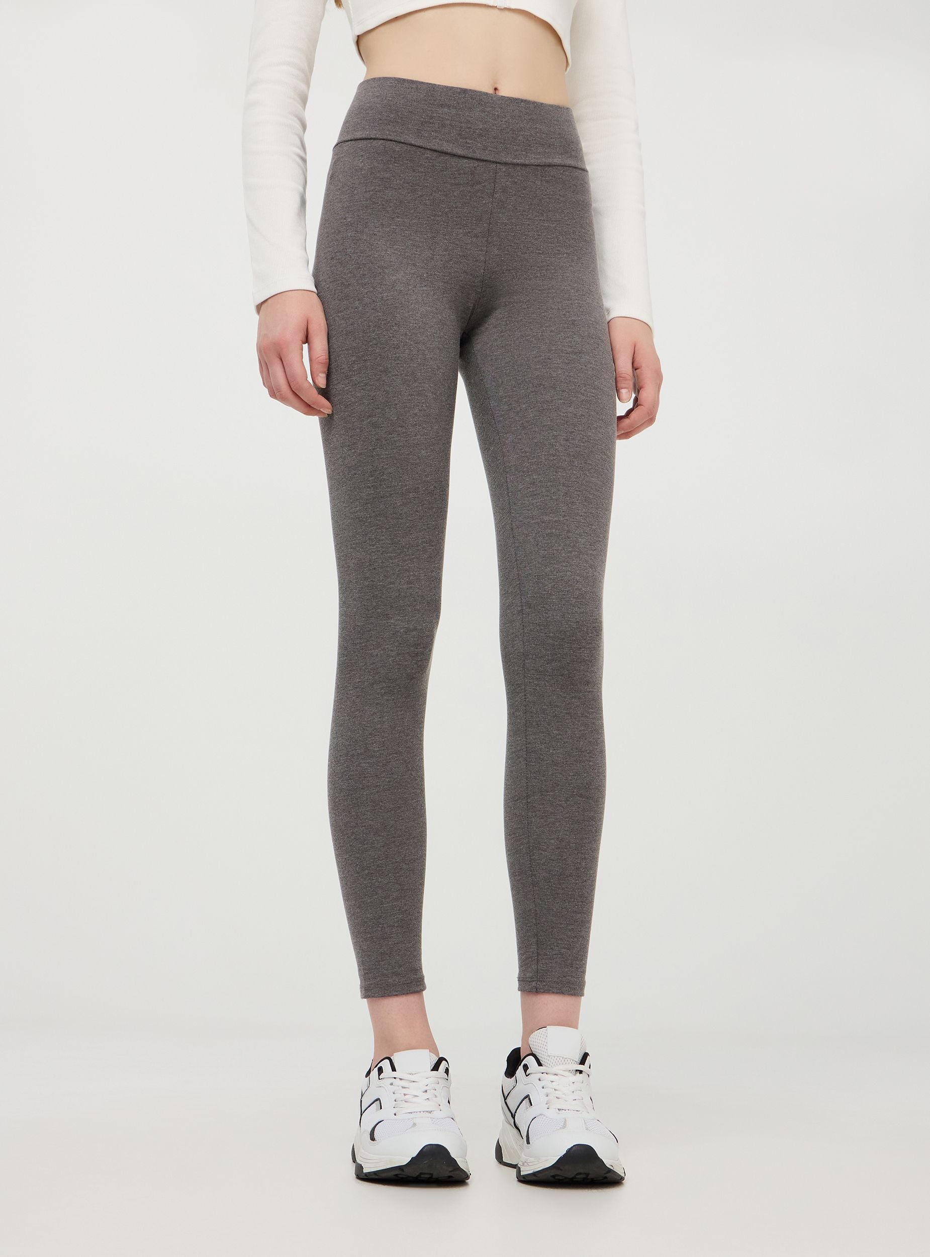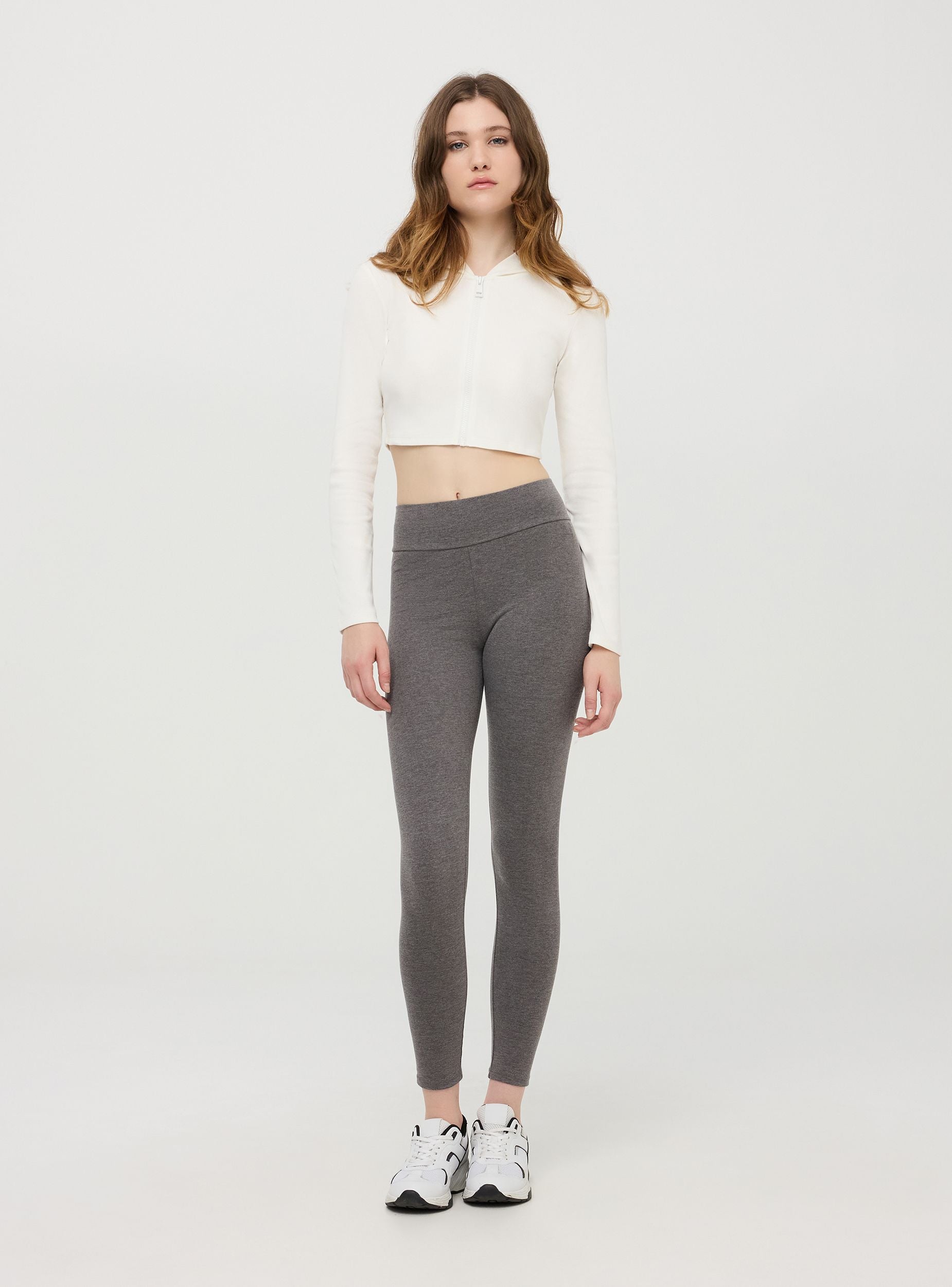 High-waisted women's leggings made from heavy stretch fabric in a solid colour. They offer a snug and comfortable fit, perfect for everyday wear and sports activities, ensuring support and freedom of movement.