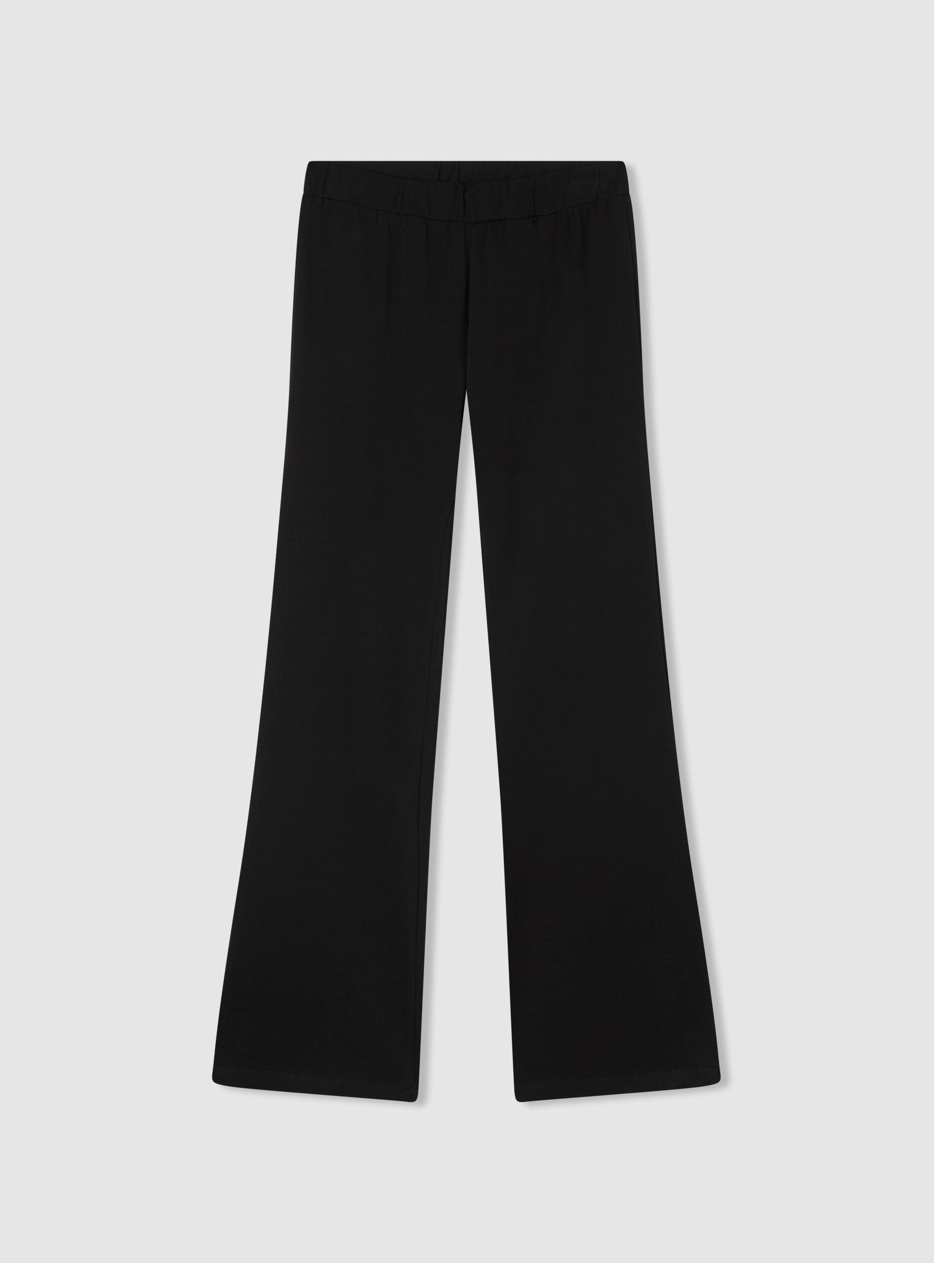 Women's flared leggings, perfect for casual looks and leisure time. Long style with an elasticated waistband that ensures comfort and freedom of movement. The flared leg elongates the figure and pairs well with oversized sweatshirts, cardigans, or t-shirts for a relaxed outfit. Solid colour design, also ideal for travel or busy days.