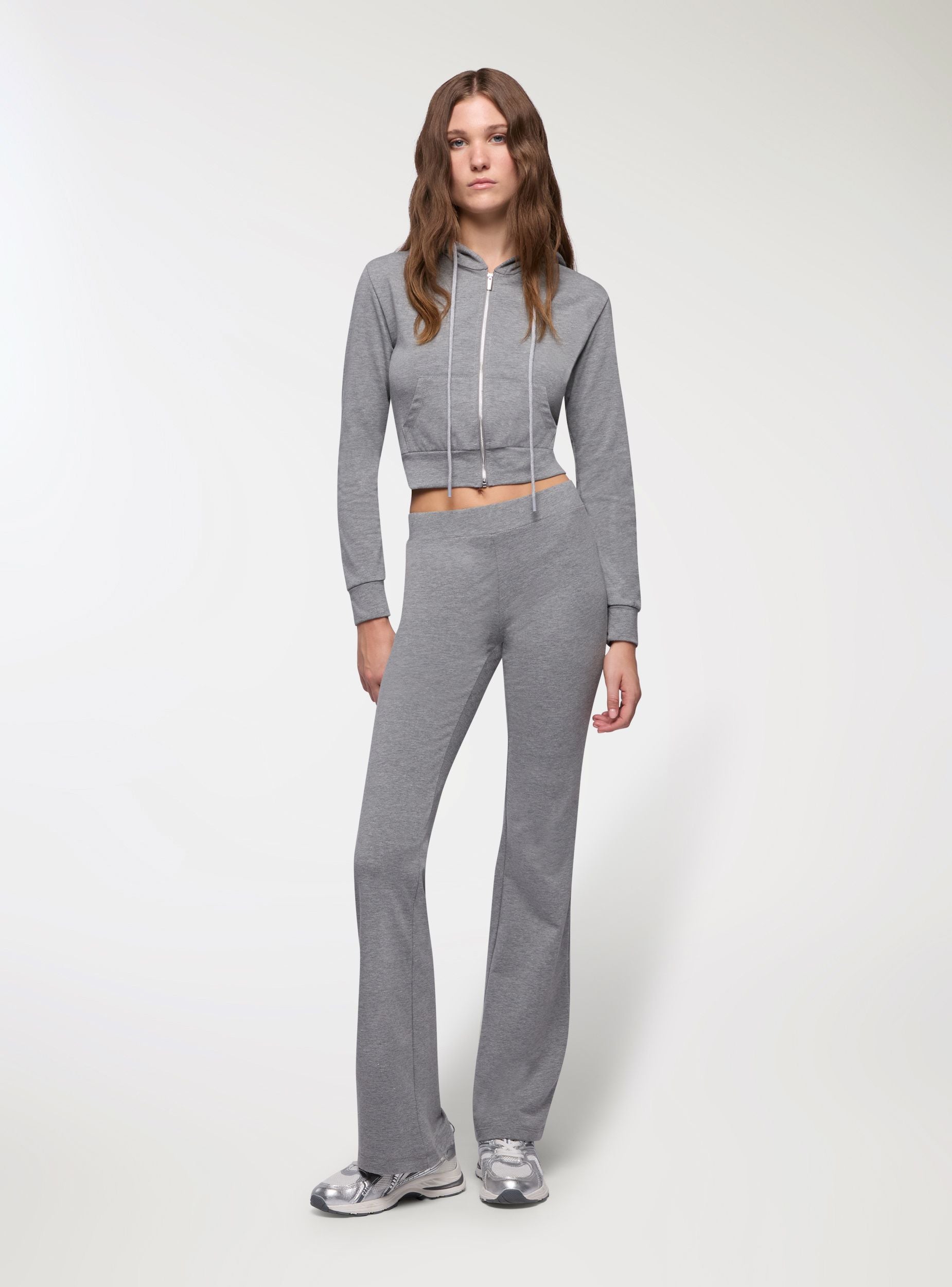 Women's flared leggings, perfect for casual looks and leisure time. Long style with an elasticated waistband that ensures comfort and freedom of movement. The flared leg lengthens the silhouette and pairs well with oversized sweatshirts, cardigans, or t-shirts for a relaxed outfit. Solid colour design, also ideal for travel or active days.Details