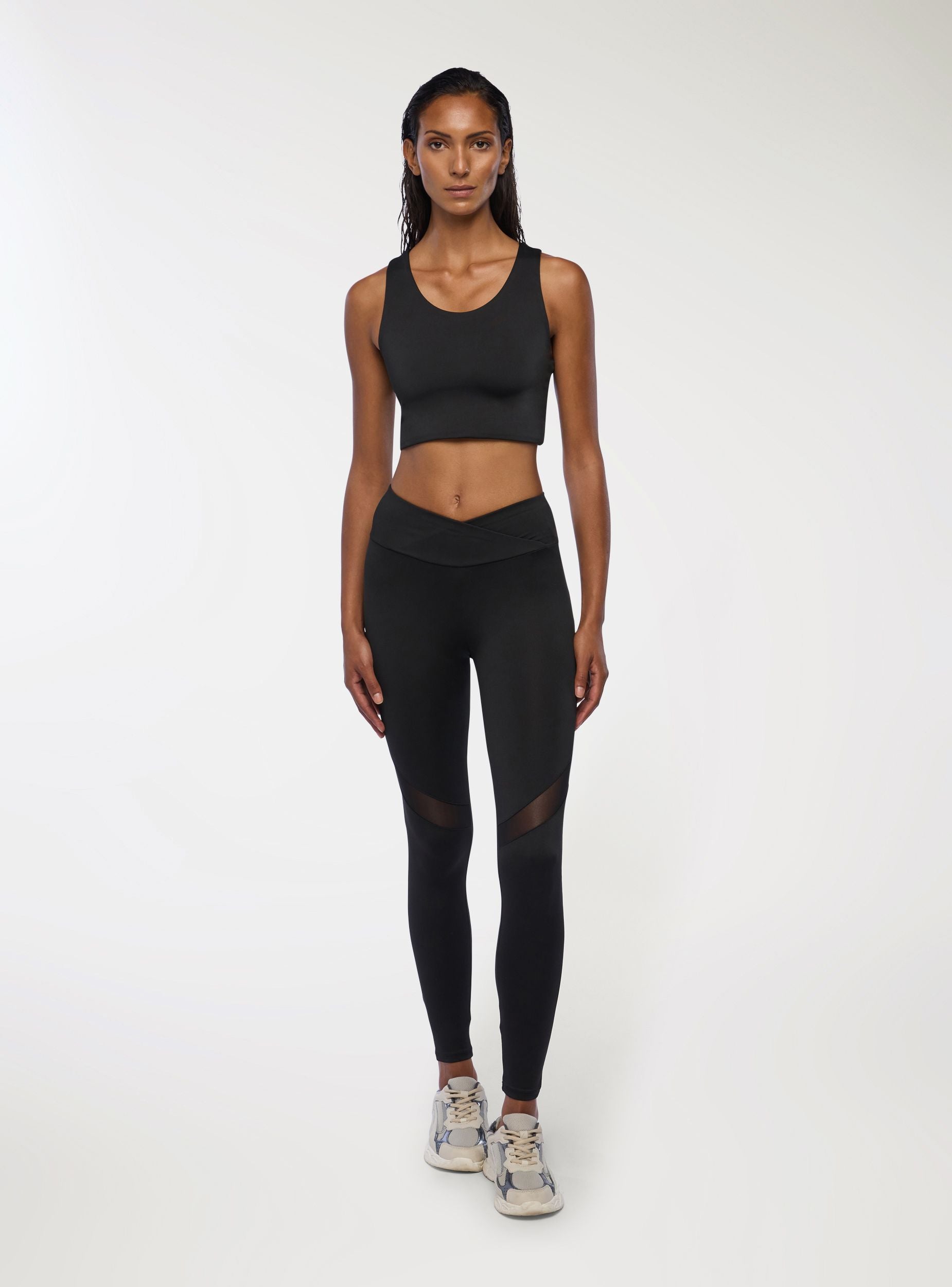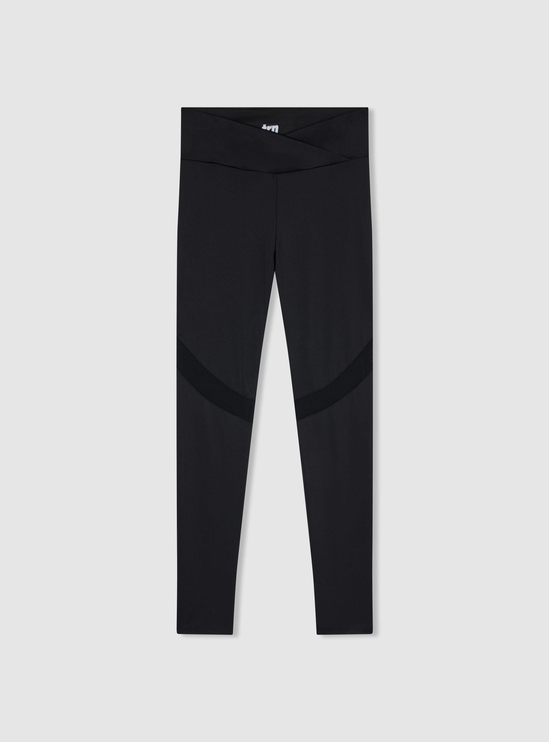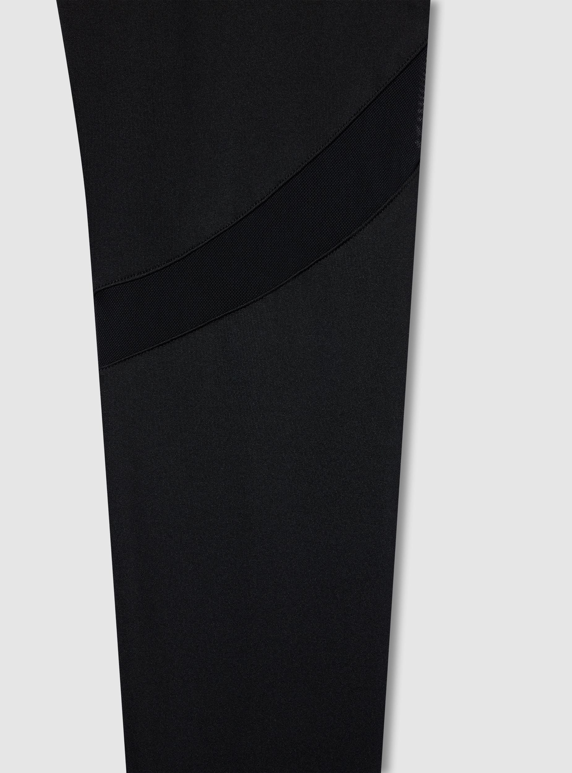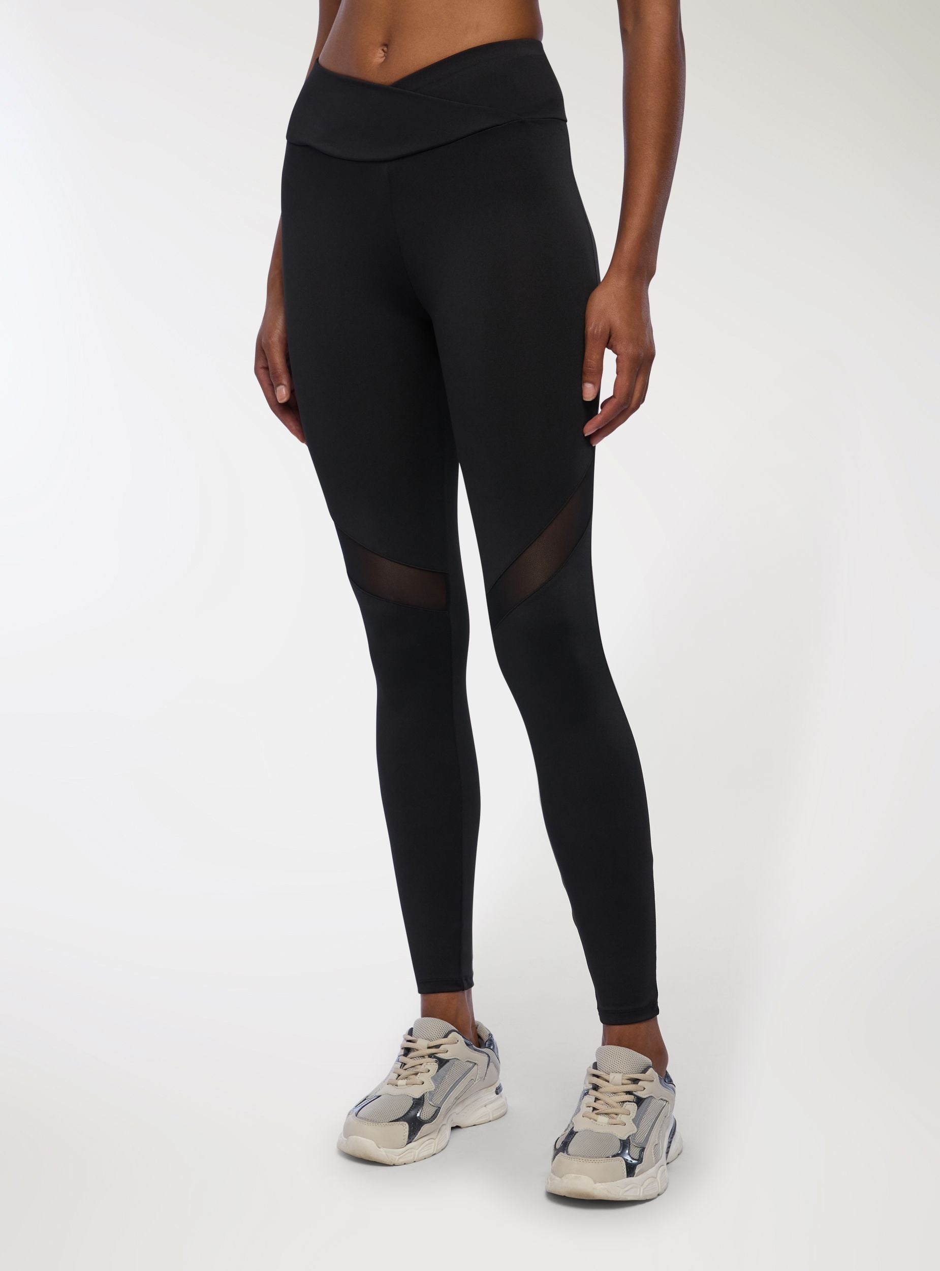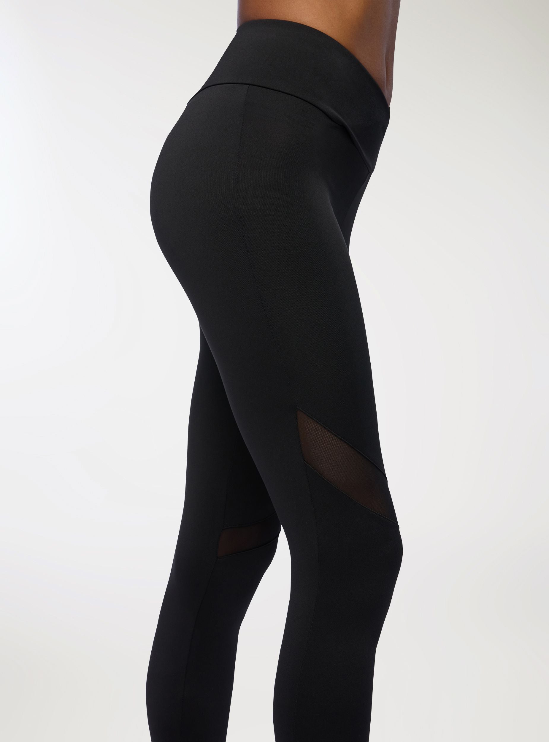 Women's leggings ideal for a sporty and dynamic look. They feature a tight fit that enhances the silhouette, with sheer panels on the legs for a modern touch. Perfect for workouts or a casual outfit, they pair easily with t-shirts and sneakers. The high waist ensures comfort and support during physical activity.Details