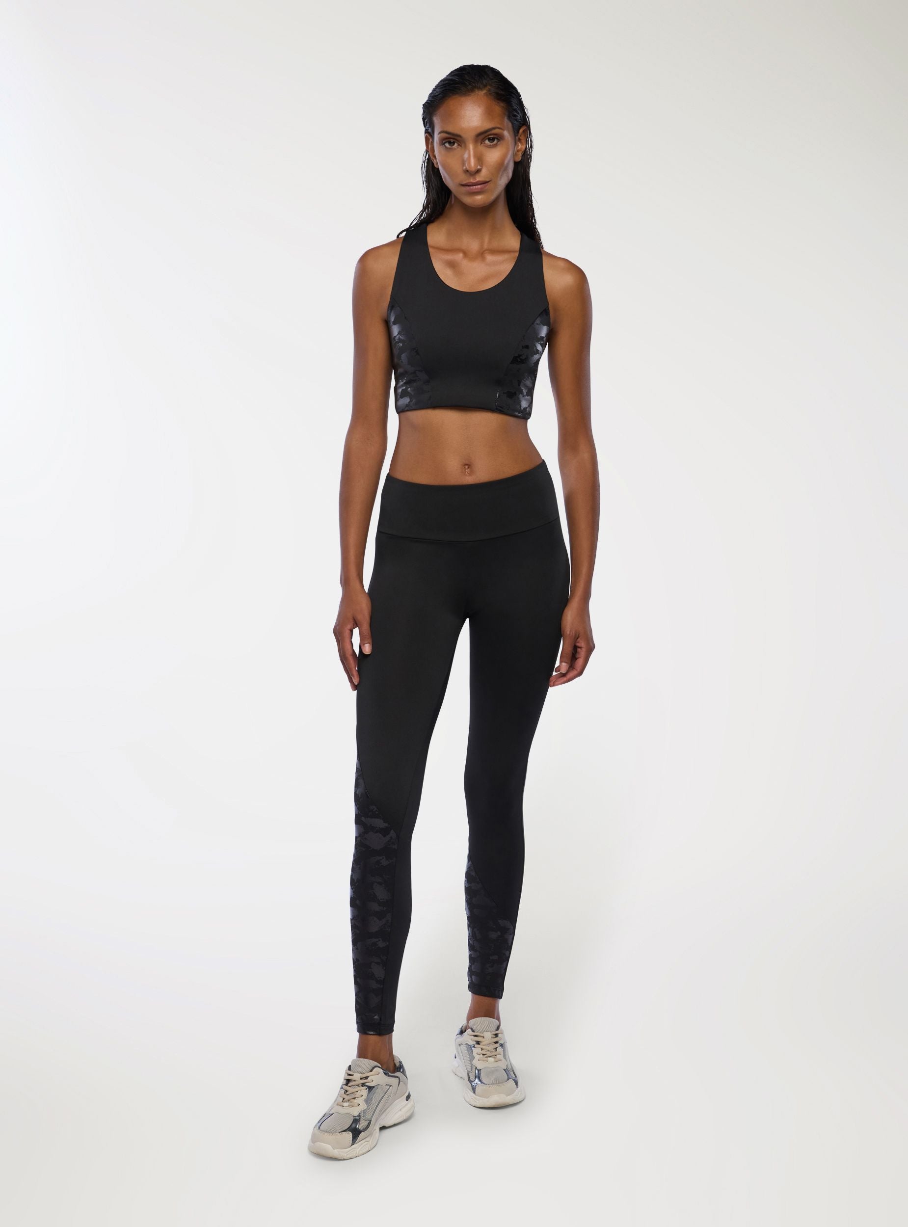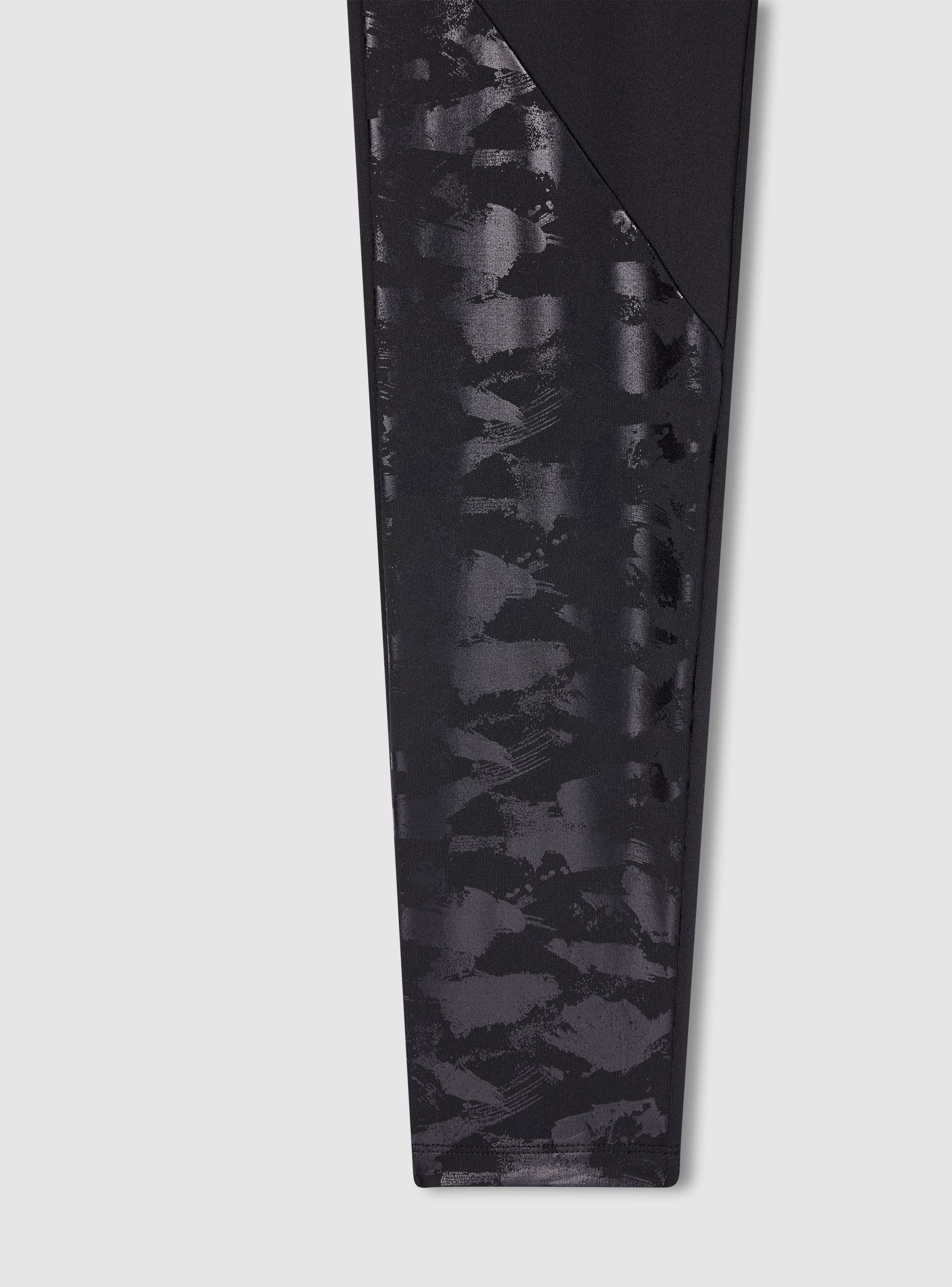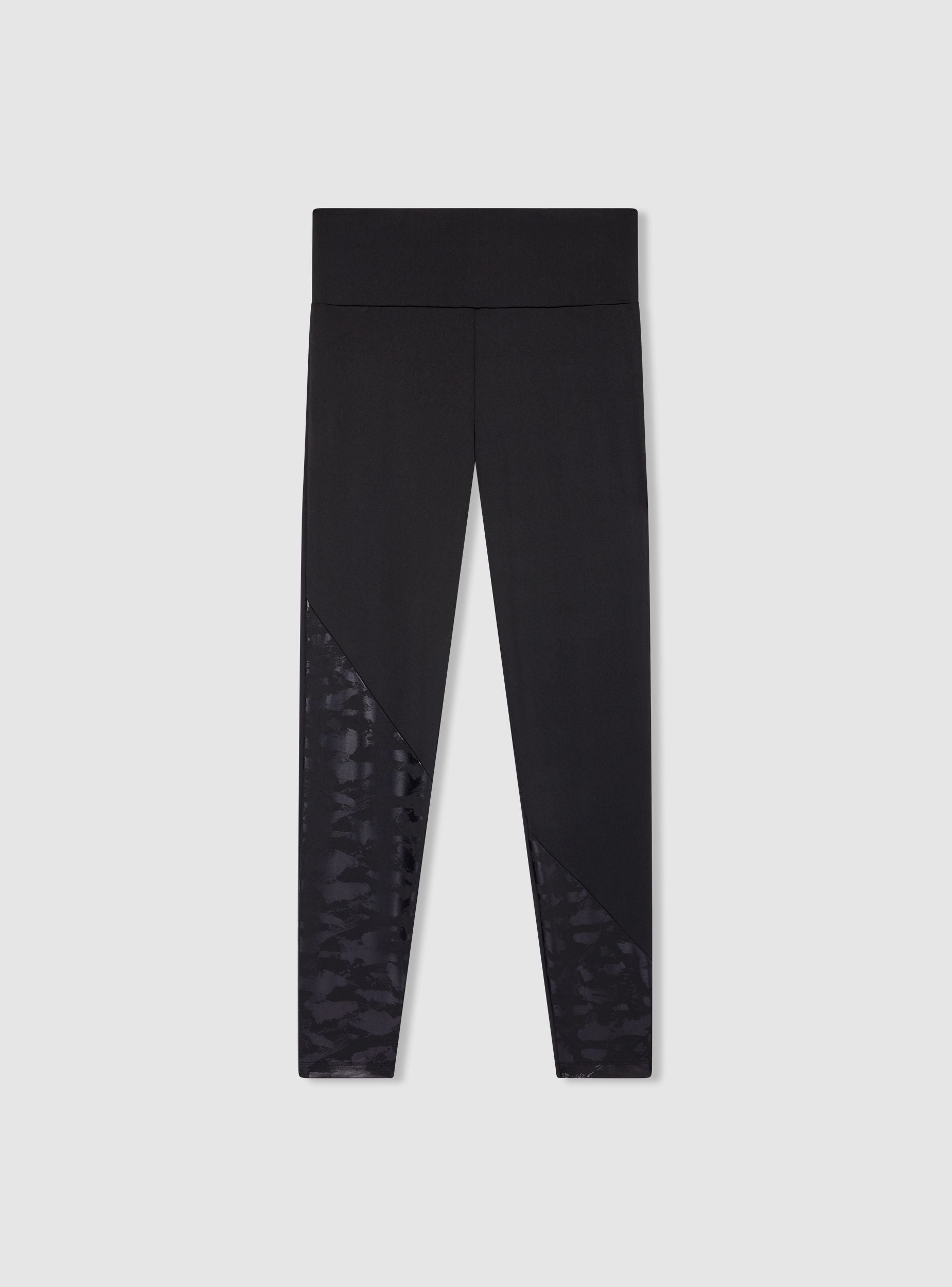 Women's leggings ideal for a sporty and dynamic look. They feature a slim fit that enhances the silhouette, perfect for workouts or a casual outfit. The plain design with shimmering effect inserts adds a unique touch of style. The high waist ensures comfort and support during physical activity. An essential piece for every active woman's wardrobe.Details