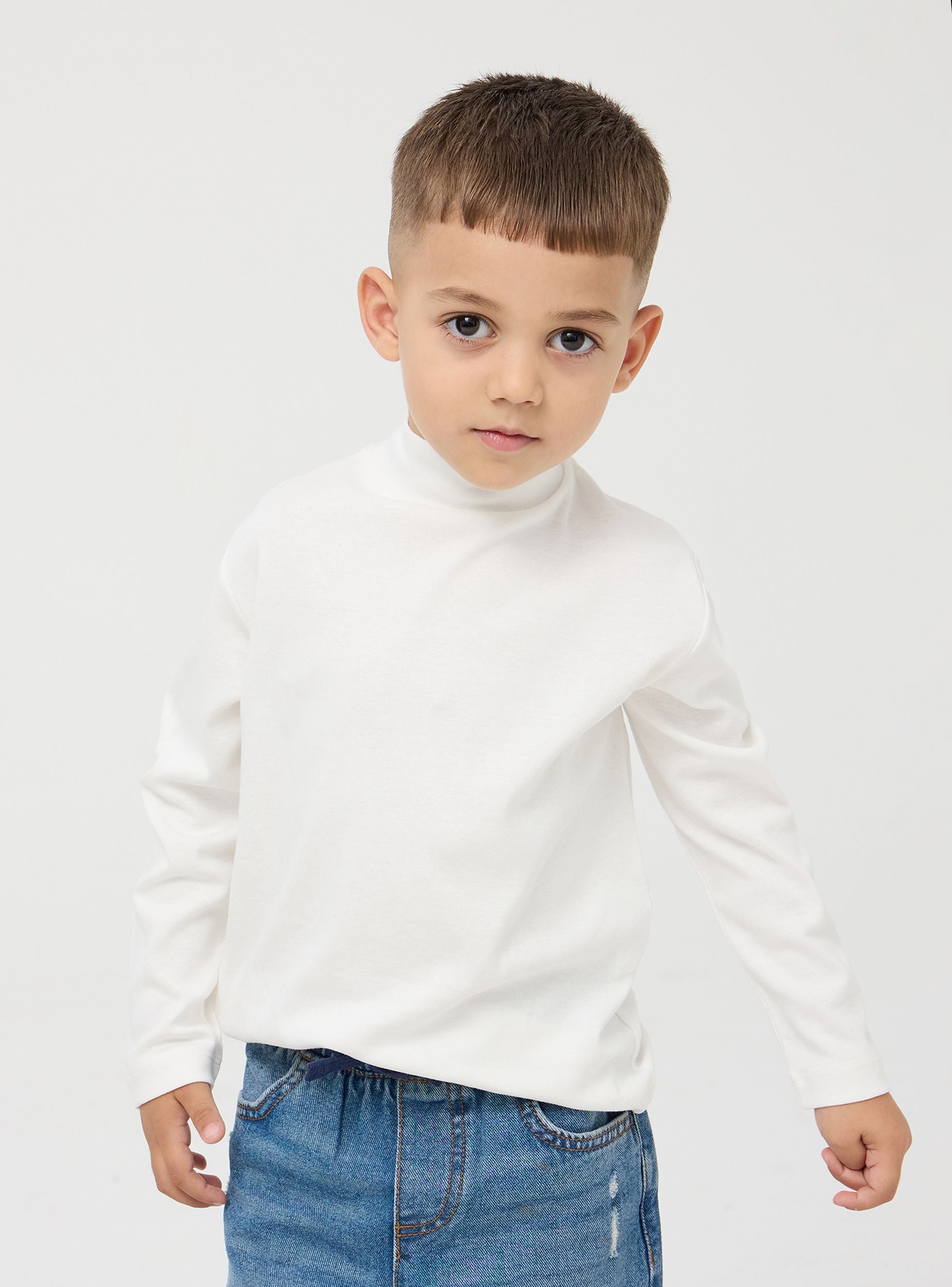 Long-sleeved top for children made of cotton that ensures a soft and comfortable feel against the skin. A basic piece perfect for any occasion. The design features a high collar that adds a touch of sophistication, ideal for a casual-chic look.Details