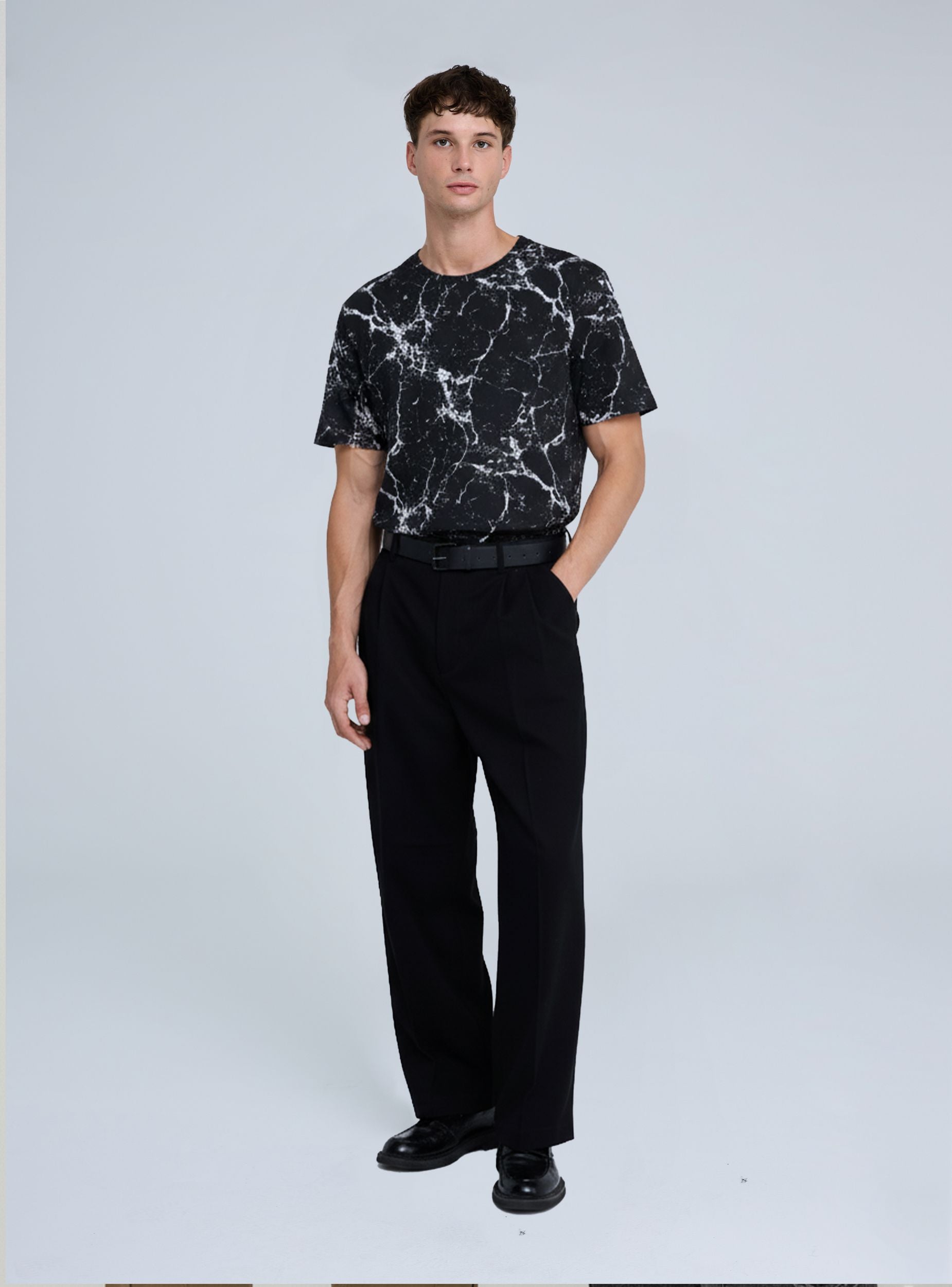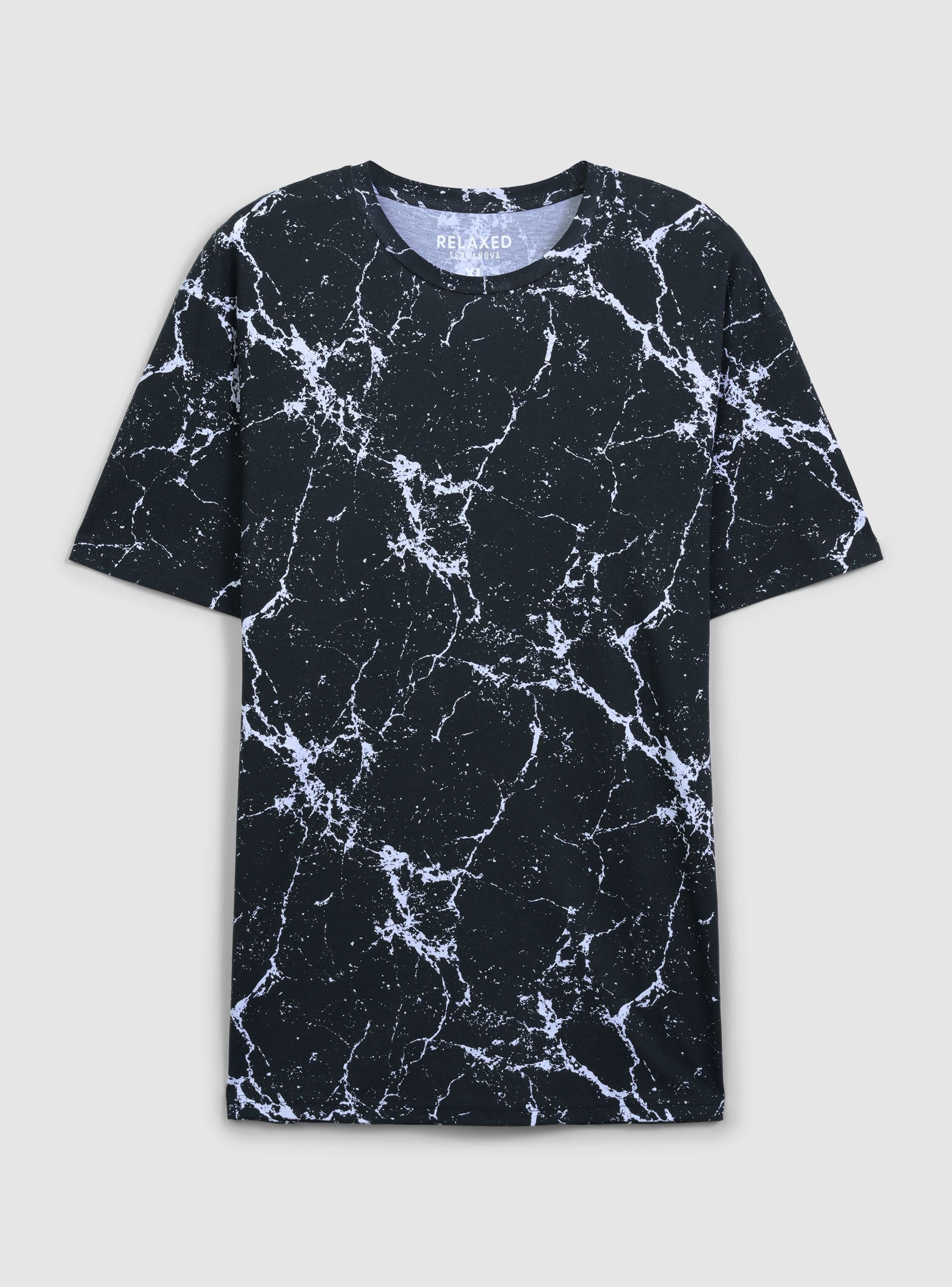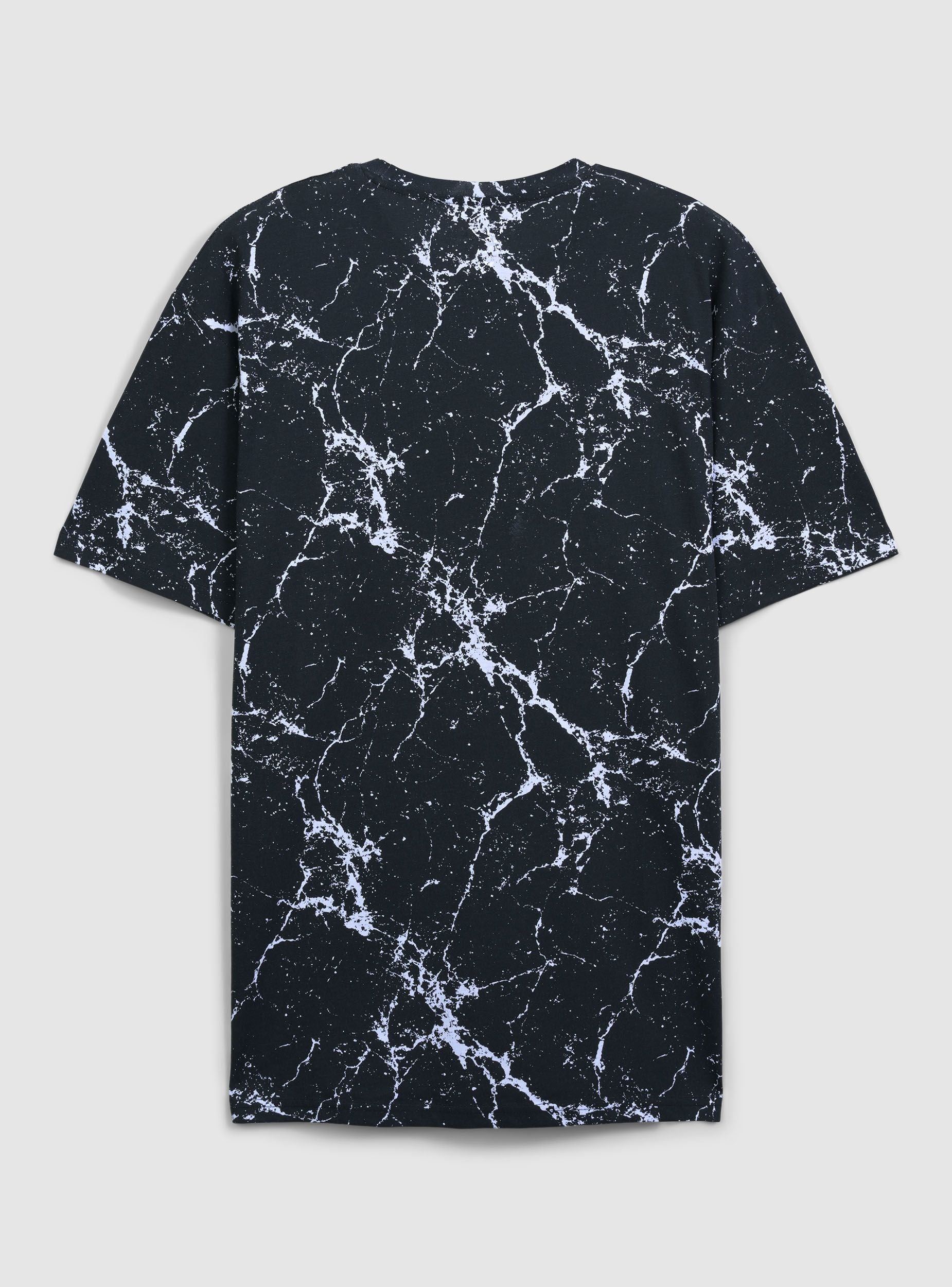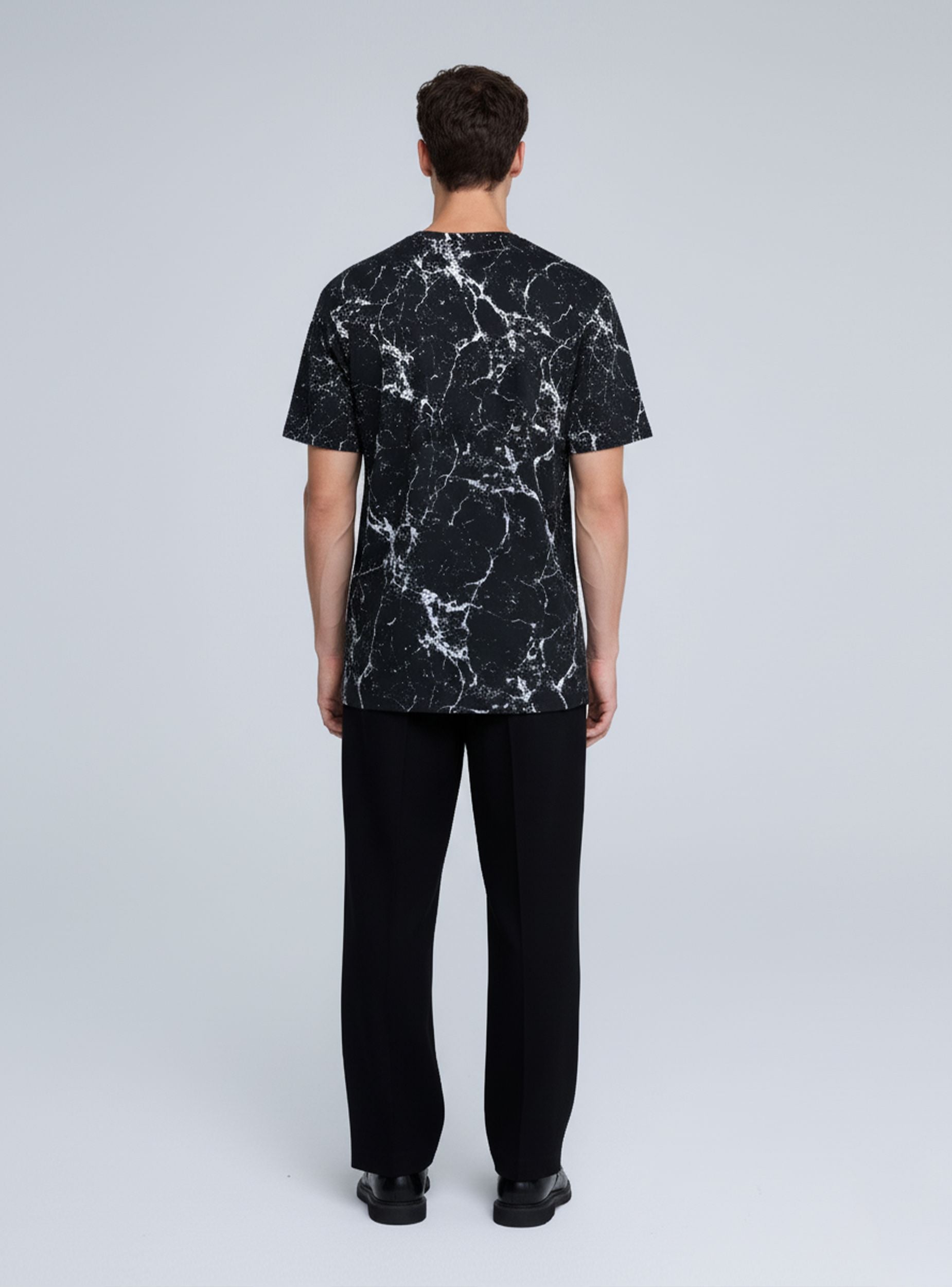 Men's T-shirt with marble effect print, ideal for a casual and modern look. It features a relaxed fit and short sleeves, perfect for pairing with jeans or sports trousers. The unique print design adds a distinctive touch, making it suitable for informal occasions or to express a personal style.