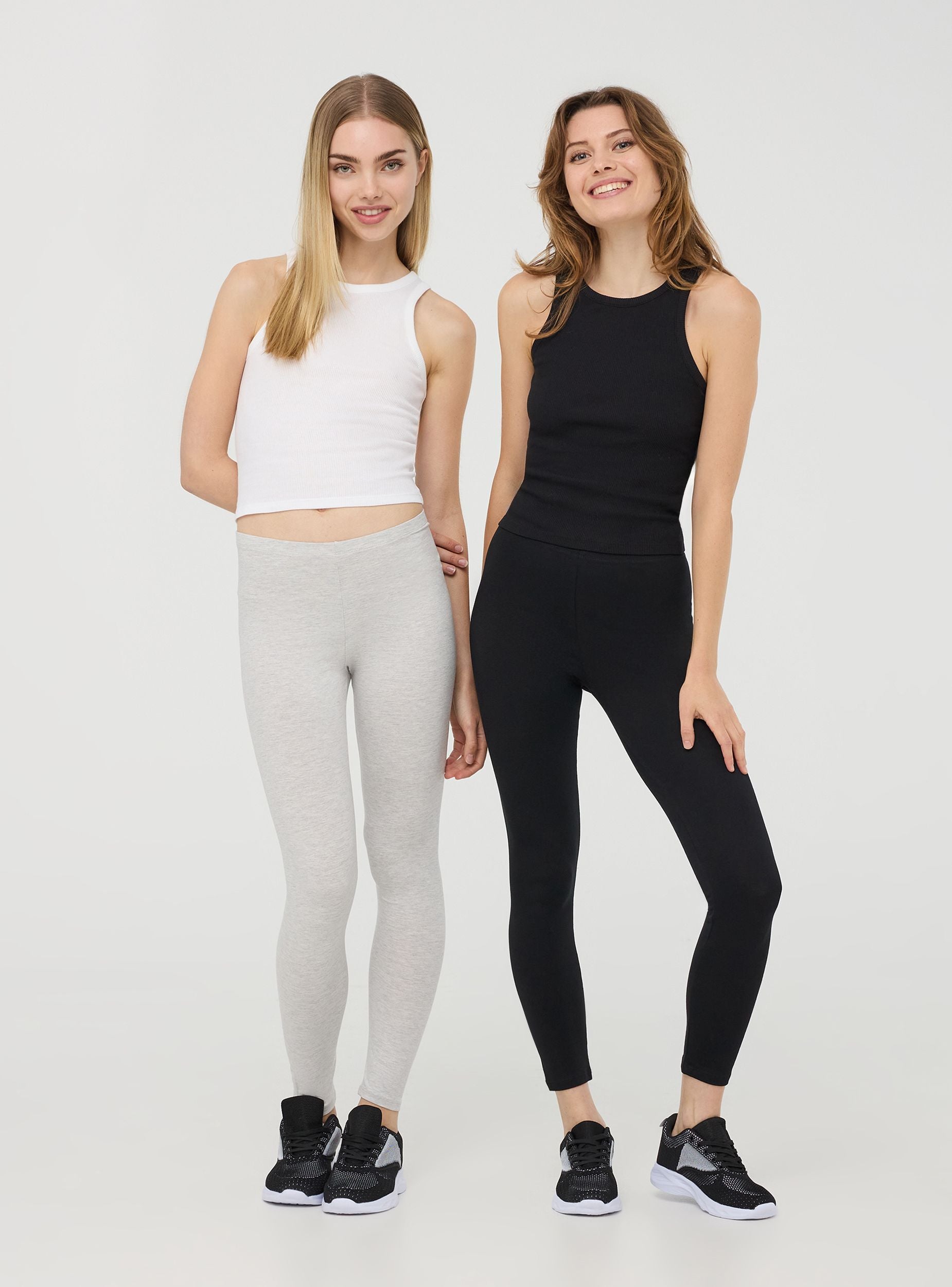 Pack consisting of 2 women's leggings, ideal for those seeking comfort and versatility. These solid-colour long leggings are made from stretch jersey, an elasticated fabric that fits the body perfectly, ensuring freedom of movement and a comfortable, snug fit. Perfect for everyday wear, they easily match various outfits, offering a simple yet always polished look. A set designed for those who want to add practicality and style to their wardrobe, with essential pieces that combine comfort and quality.Details