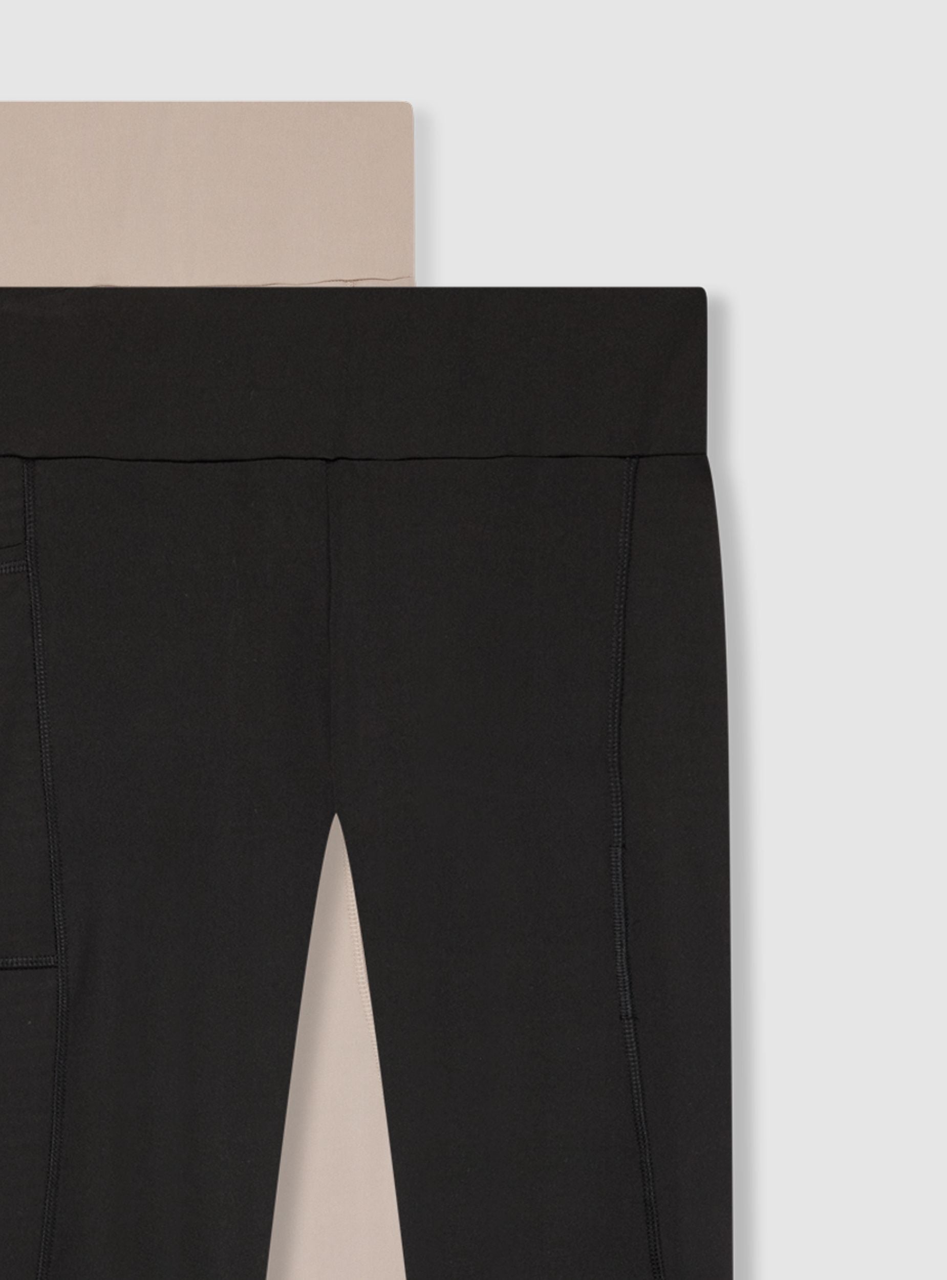 Pack consisting of two plain long leggings, ideal for a casual and comfortable look. They feature a slim fit that enhances the silhouette, with a high waist for added comfort. Perfect to pair with oversized t-shirts or sweatshirts for a relaxed outfit. Versatile and practical, they are suitable for leisure time or light activities.