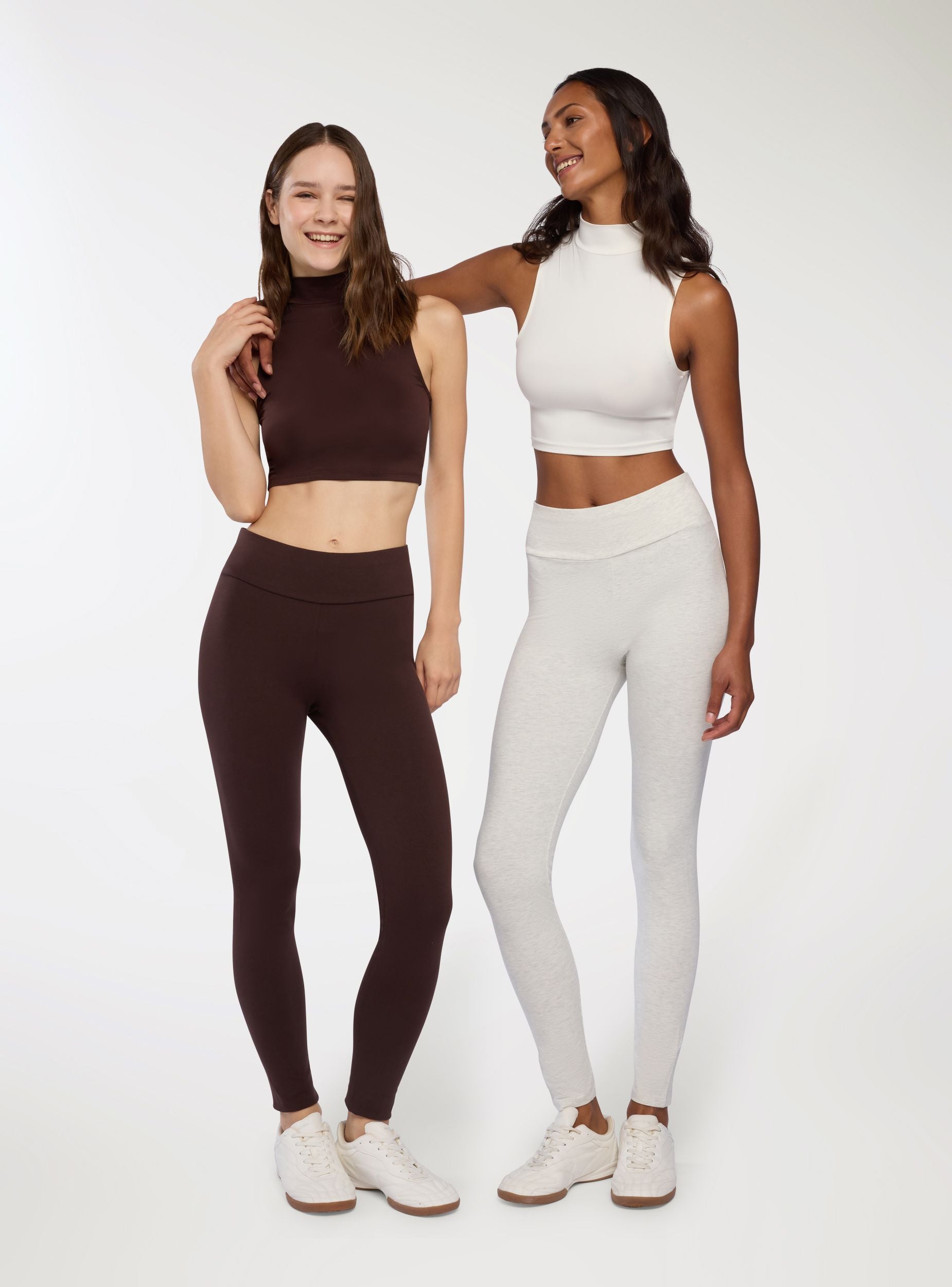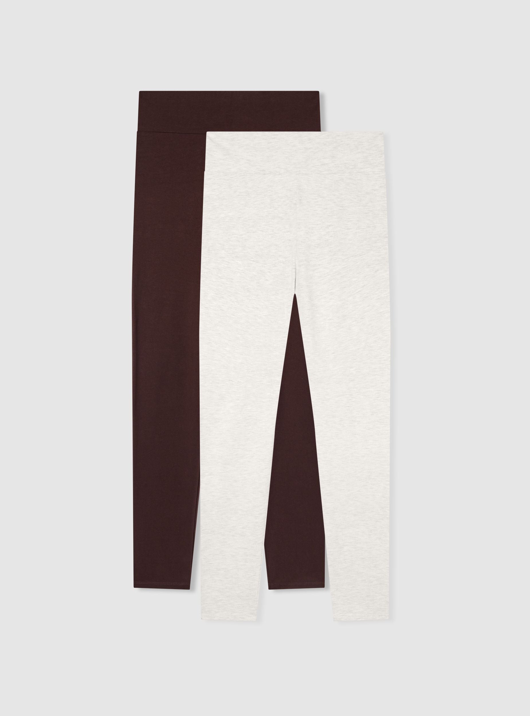 Pack containing two long plain leggings, perfect for pairing with oversized t-shirts or sweatshirts. Slim fit that enhances the silhouette, with a high waist for added comfort. Ideal for leisure time or to complete sporty outfits.Details