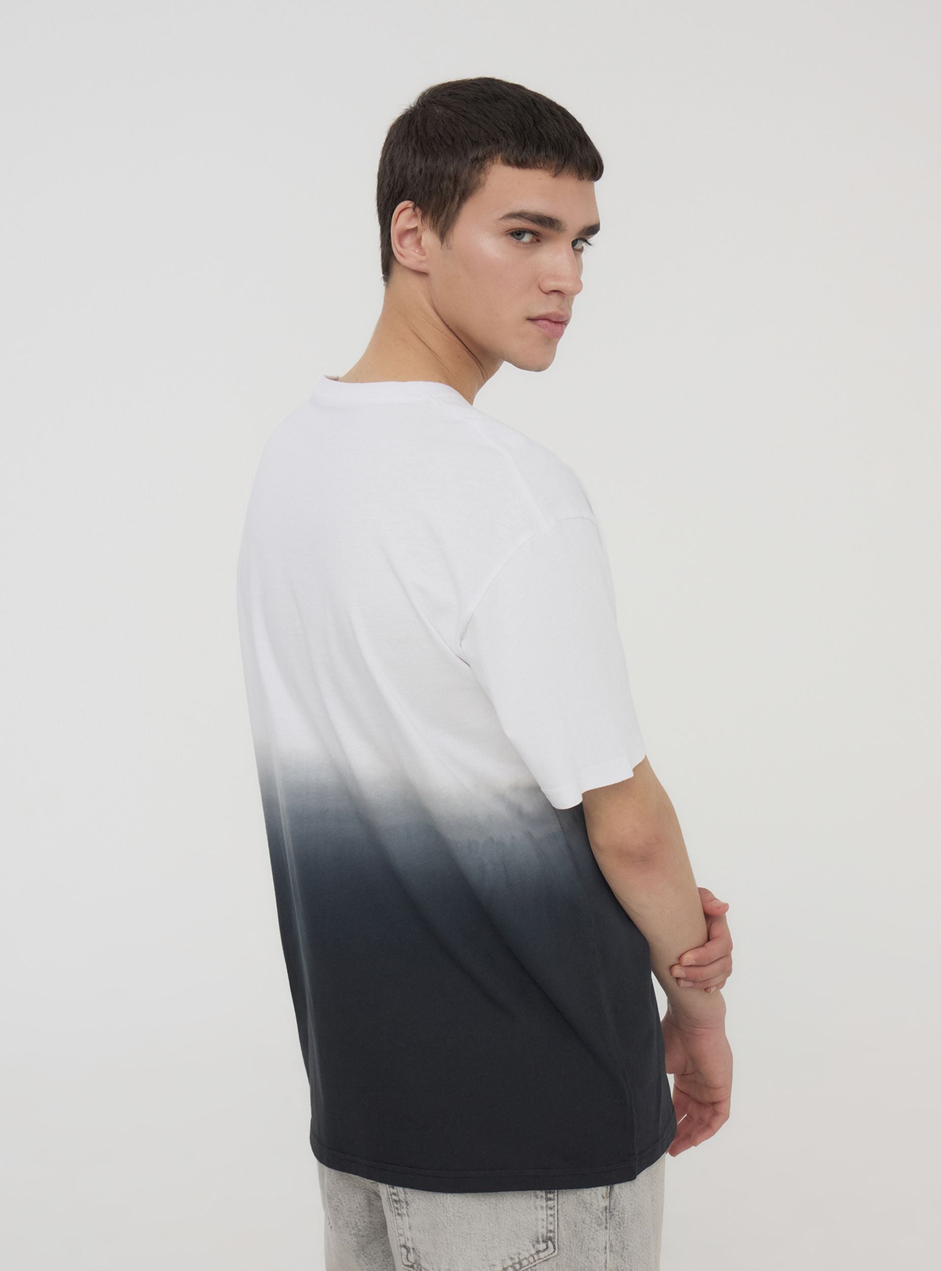 Men's t-shirt with a modern and versatile style, featuring a relaxed fit for maximum comfort. The short sleeves and crew neck ensure practicality, while the gradient effect adds an original and dynamic touch. Perfect to pair with jeans, shorts, or joggers, it is ideal for casual looks suitable for leisure time, city outings, or informal evenings with friends.