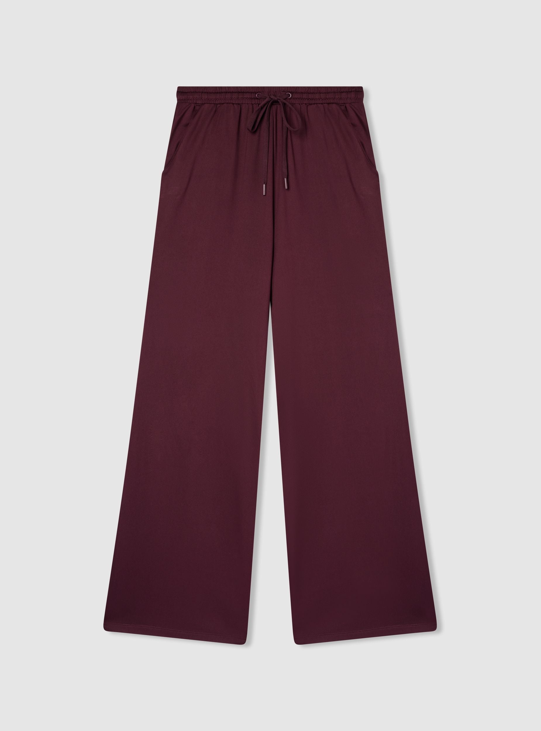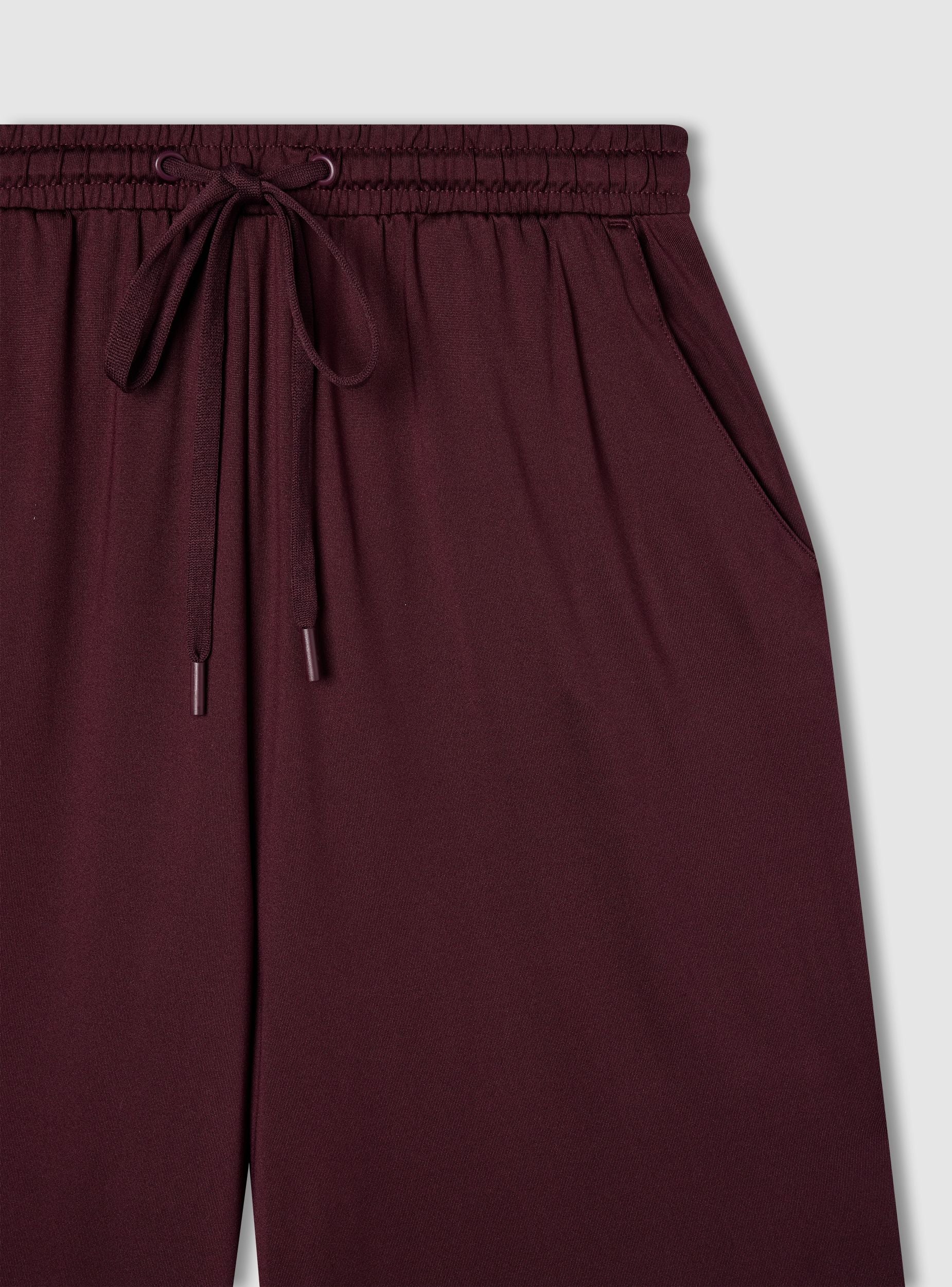 Women's trousers with a loose fit and solid colour design. Ideal for a casual and comfortable look, these trousers feature a drawstring closure for a personalised fit and side pockets for practicality. Perfect for leisure time, they easily pair with t-shirts and trainers for a relaxed and modern outfit.