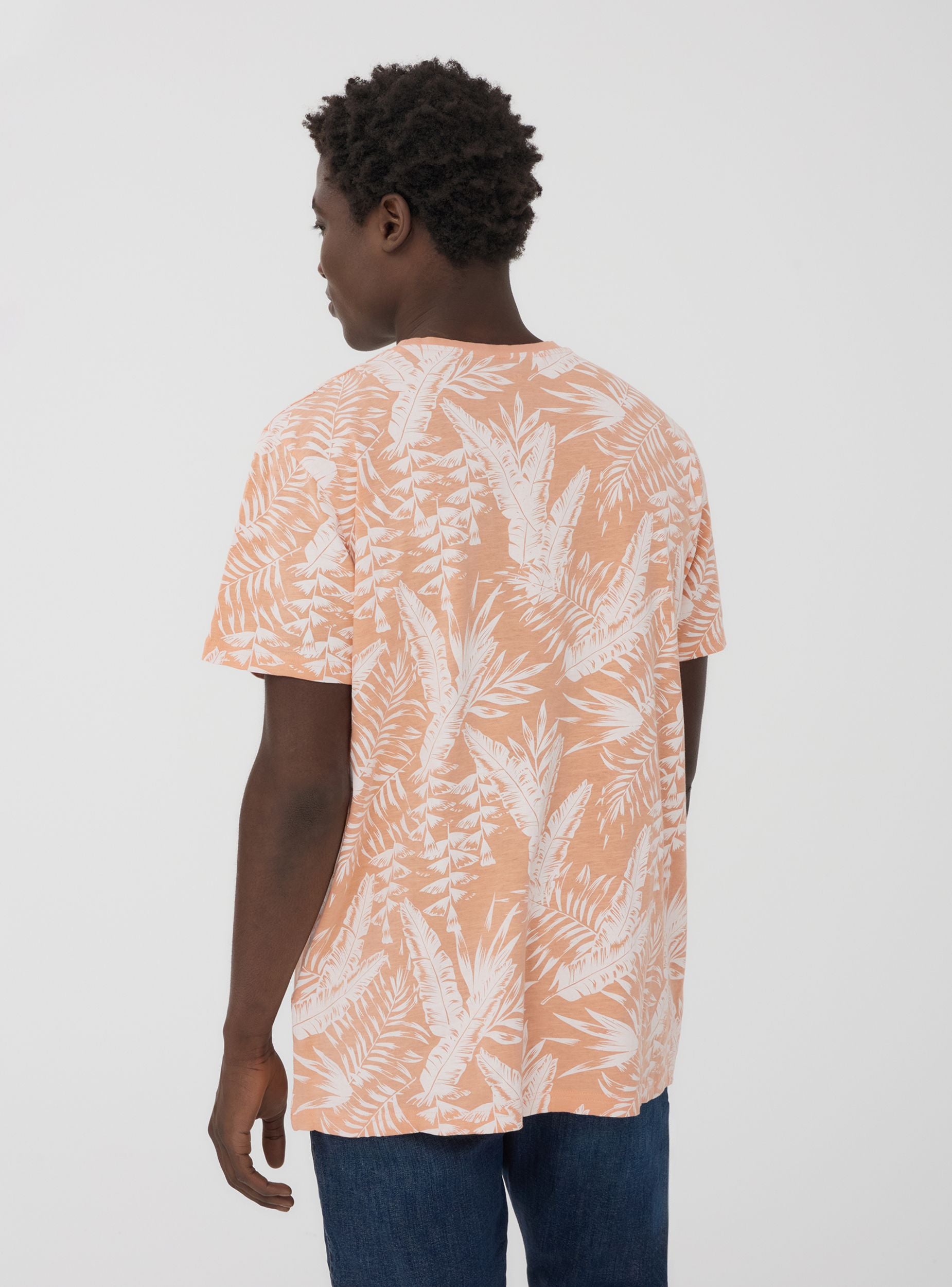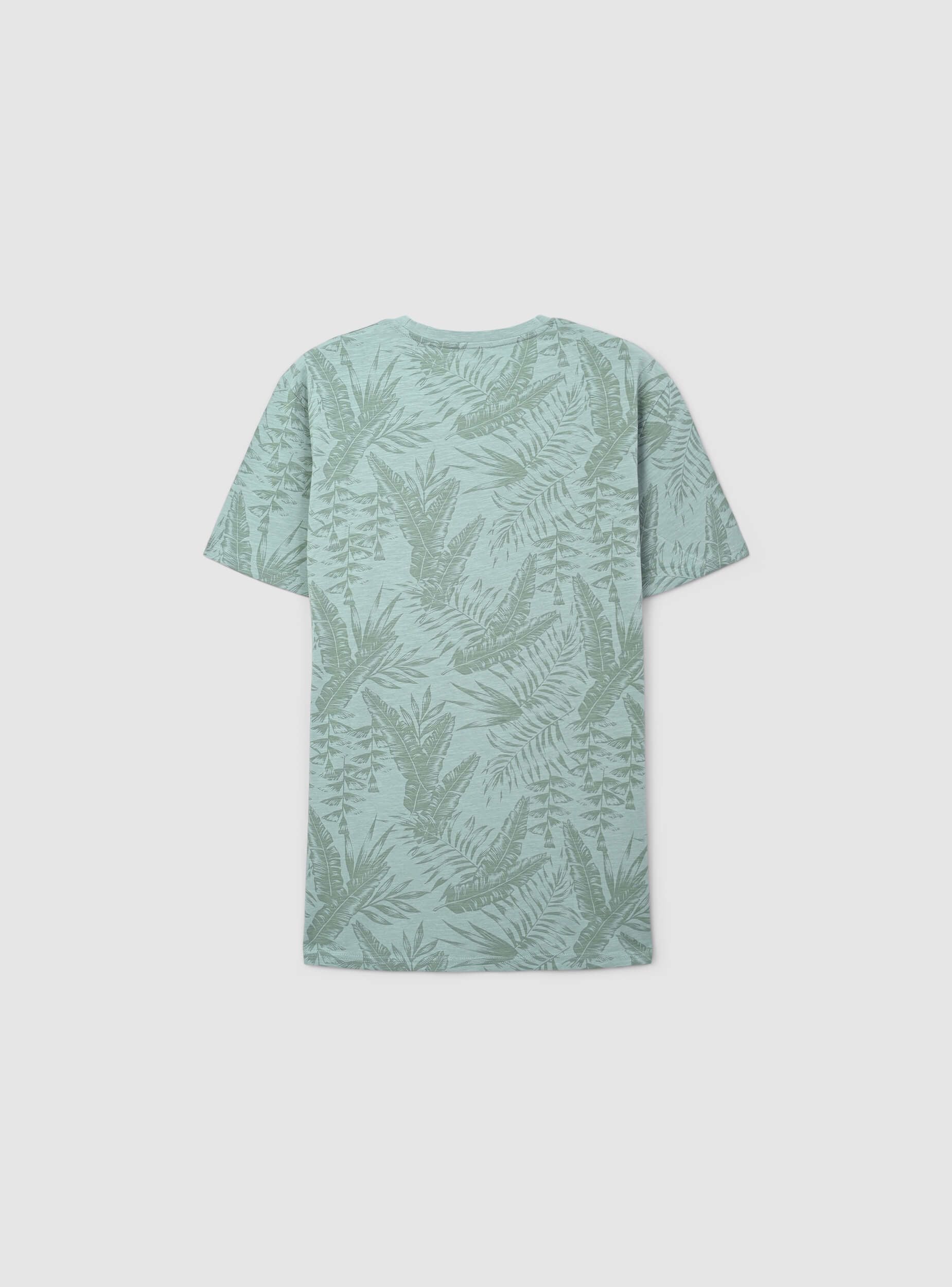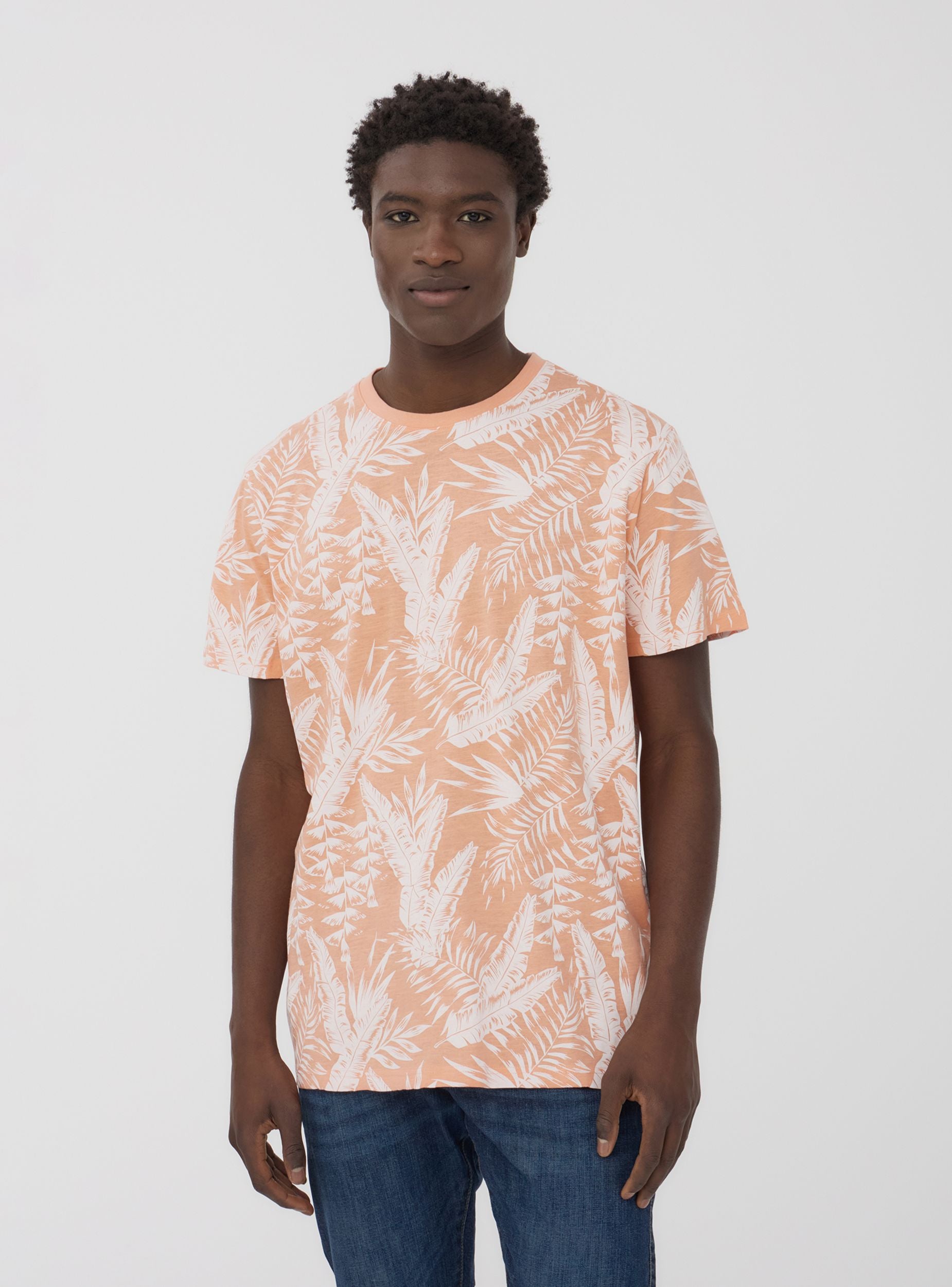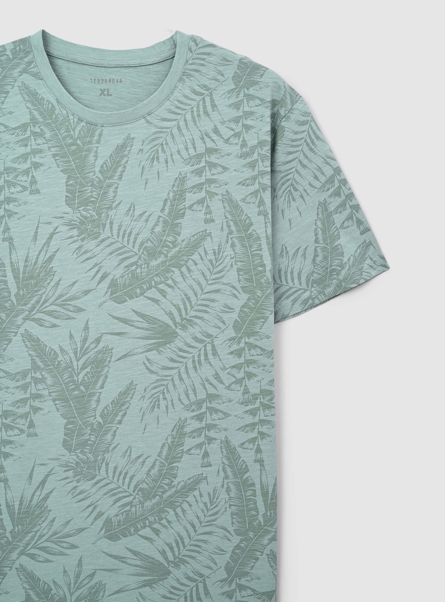 Men's t-shirt with a fresh and modern style, featuring an all-over palm print that evokes tropical vibes. With short sleeves and a crew neck, it ensures comfort and versatility. Perfect for casual summer looks, it pairs easily with shorts, jeans, or lightweight trousers, ideal for outdoor days, holidays, or relaxing moments with friends.Details
