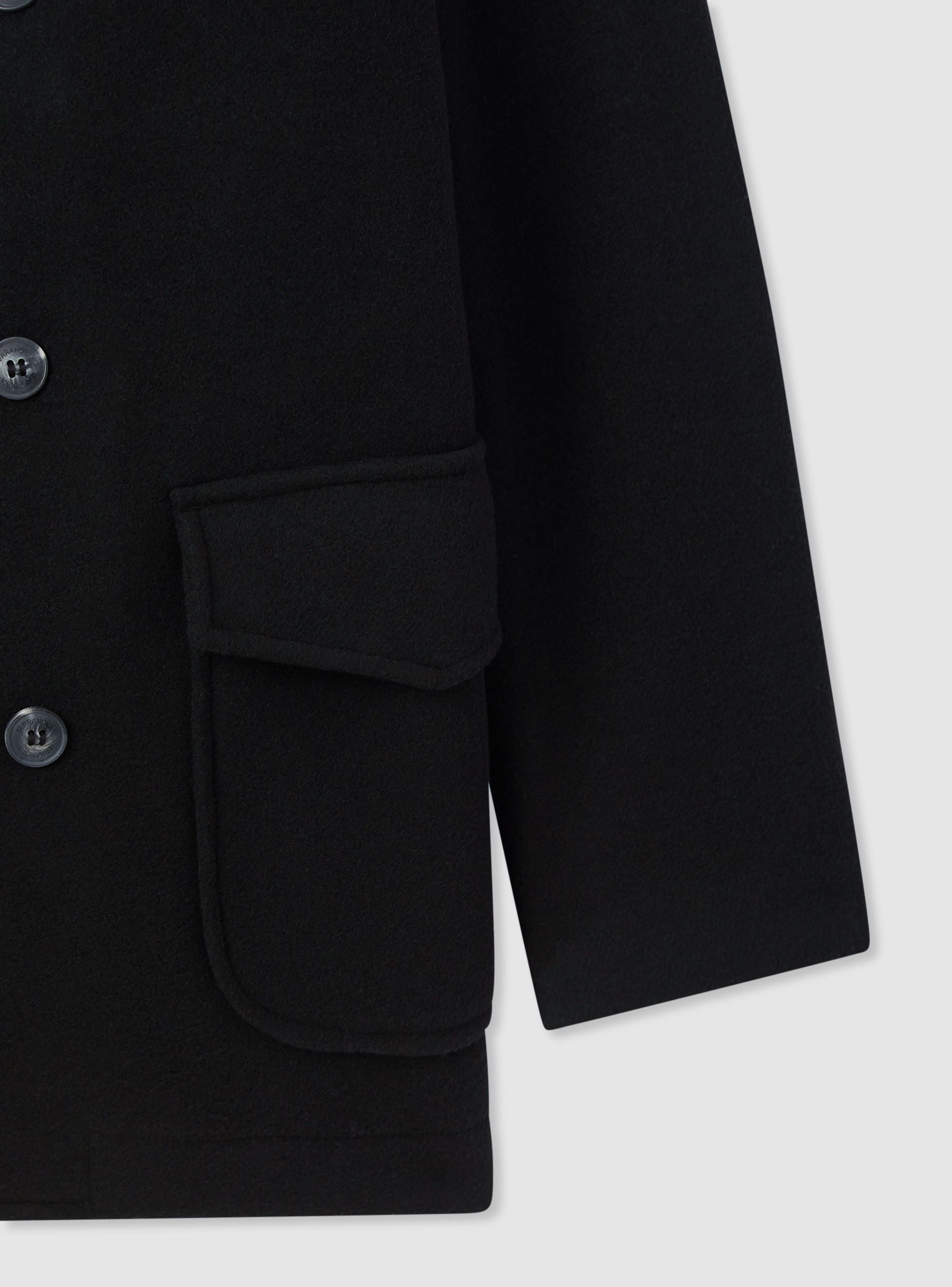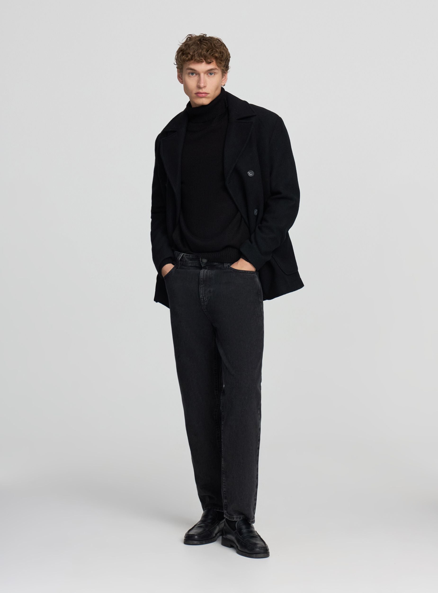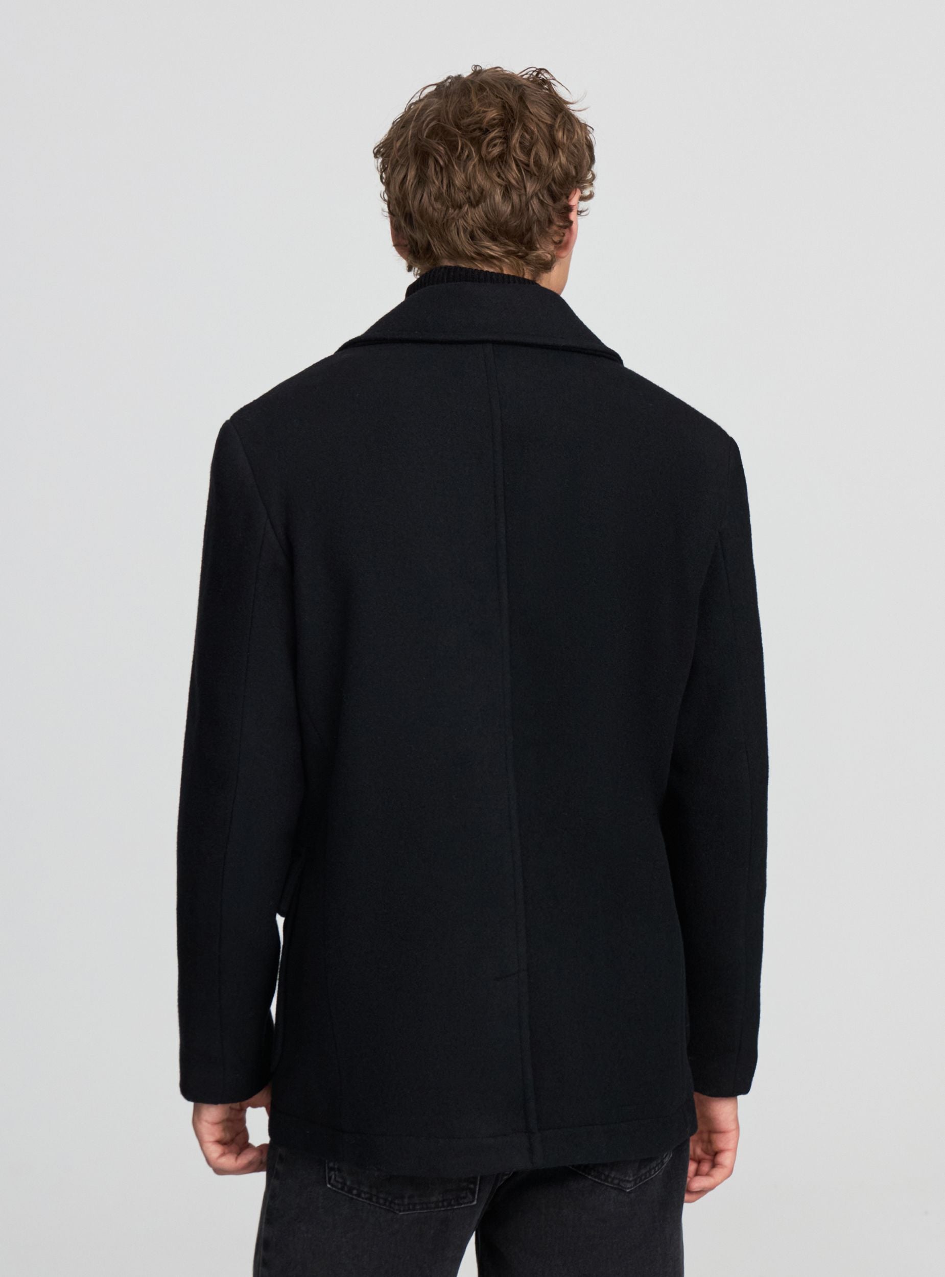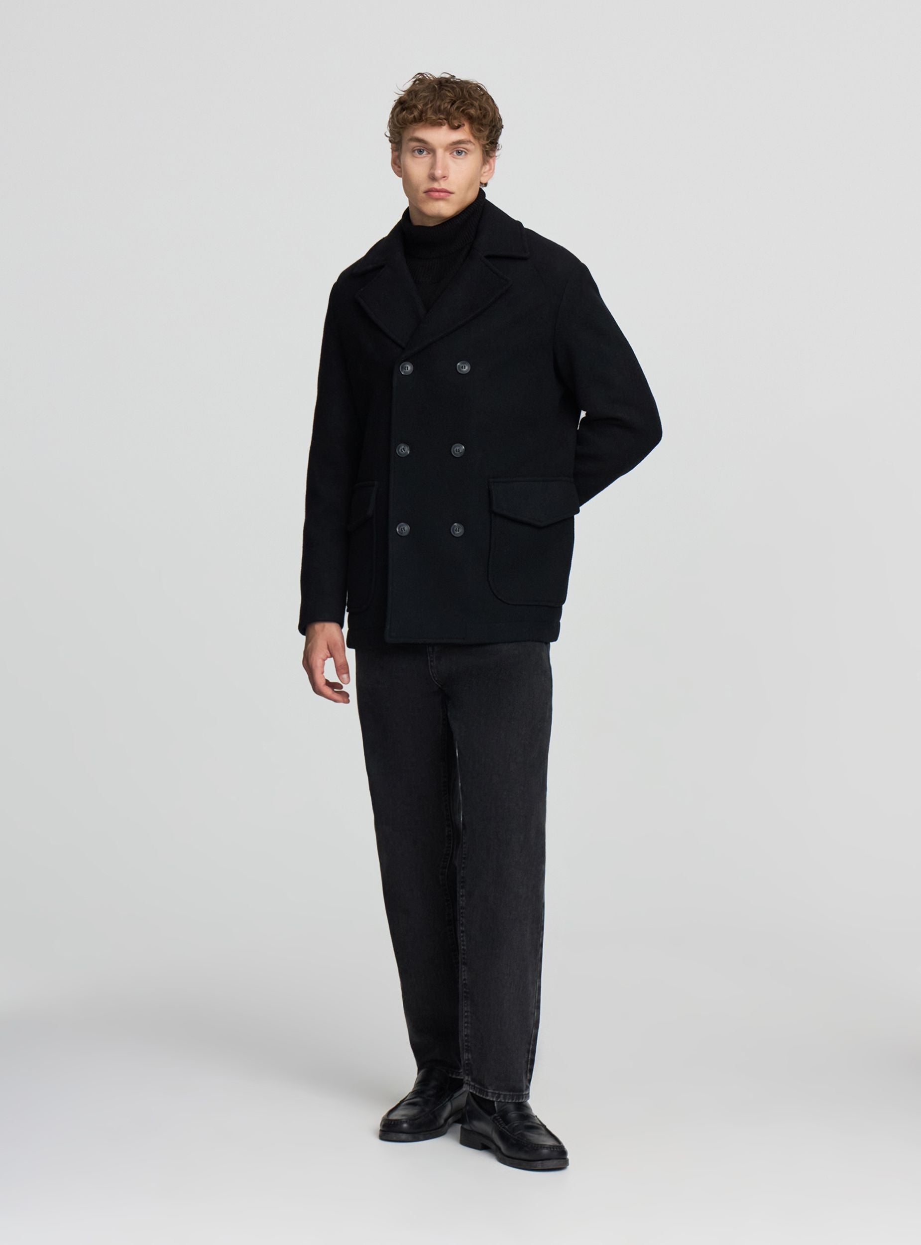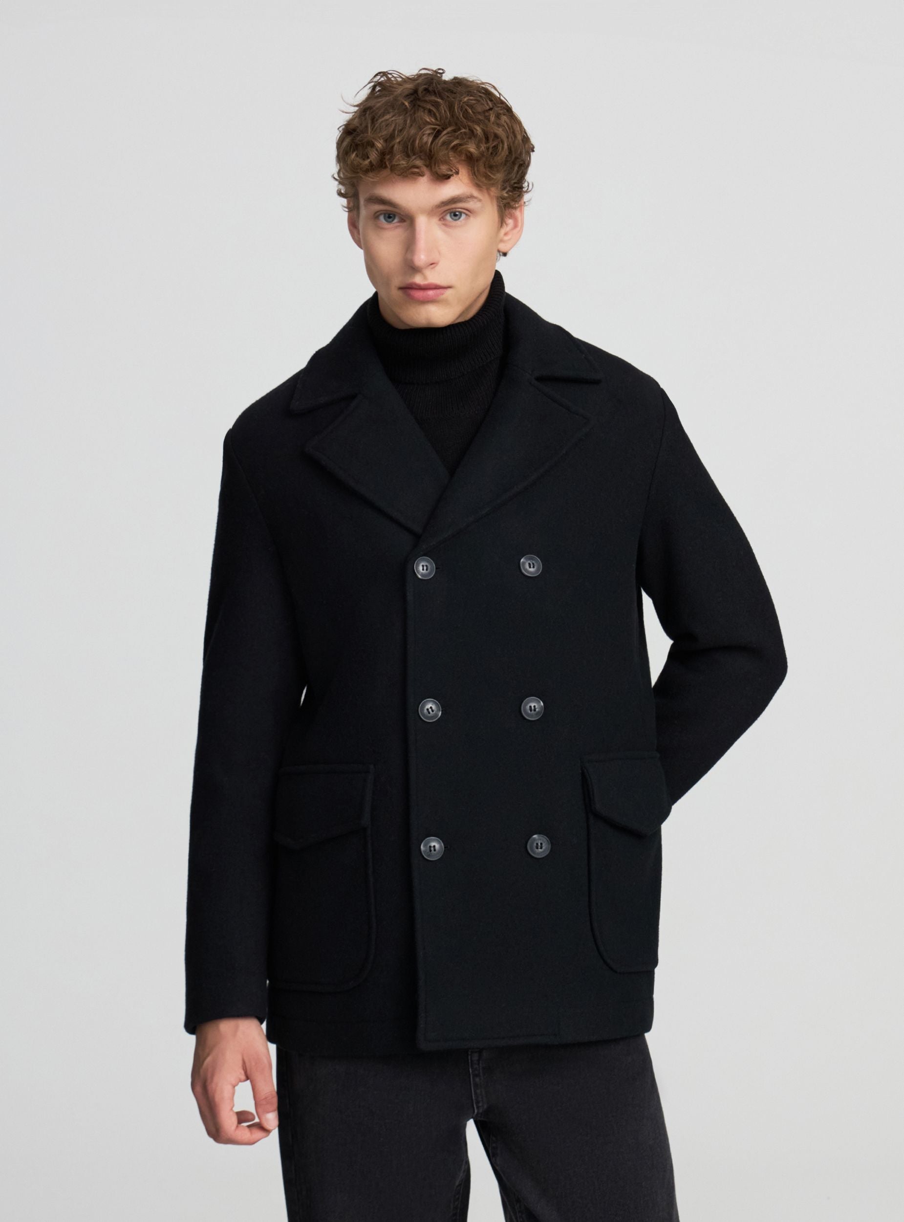 Abrigo de hombre con diseño de doble botonadura, ideal para ocasiones formales y profesionales. Presenta un ajuste regular, con cuello clásico y mangas largas. Equipado con cierre de botones y bolsillos delanteros, ofrece un look elegante y sofisticado. Perfecto para completar conjuntos invernales con estilo y practicidad.
