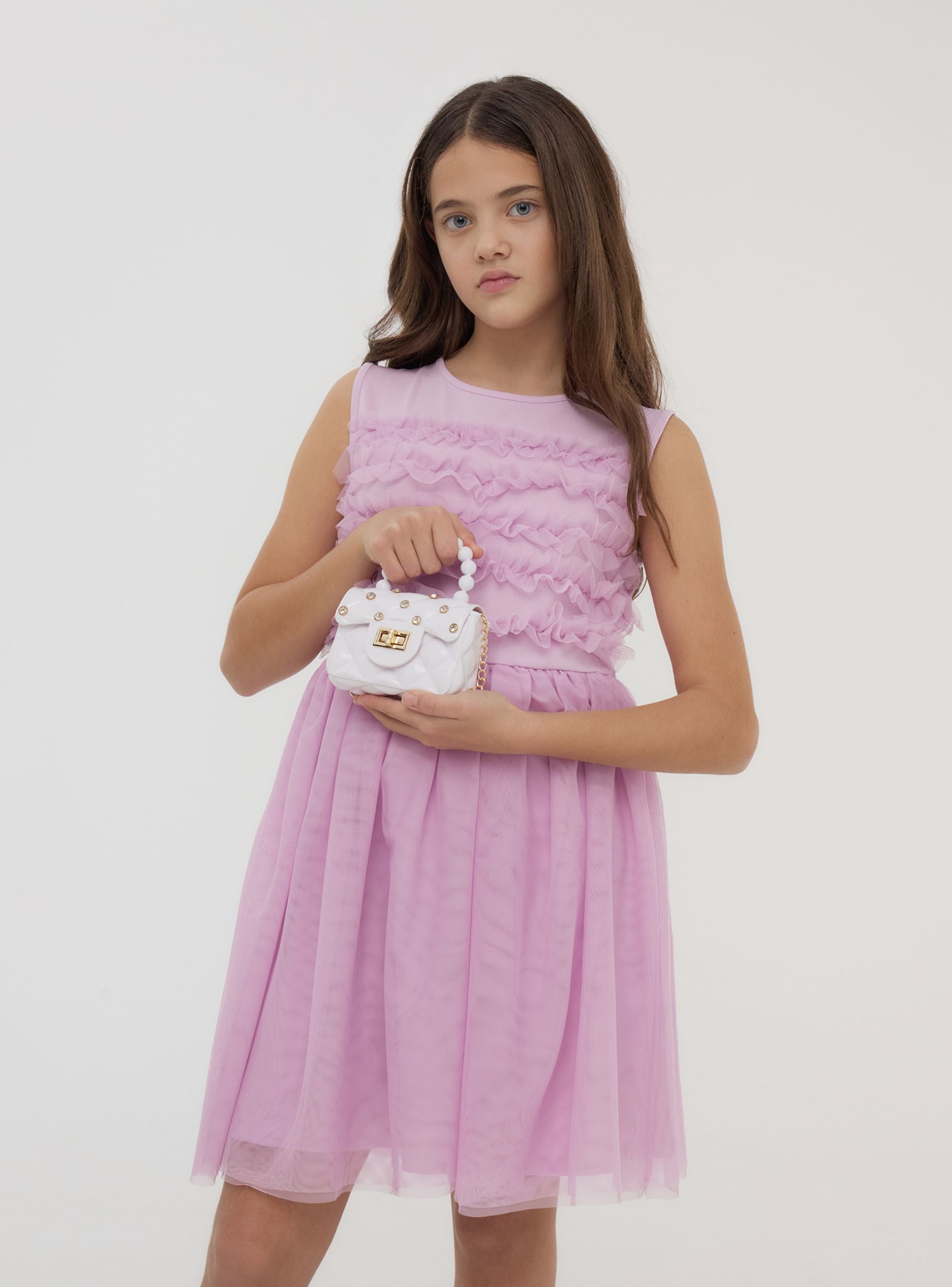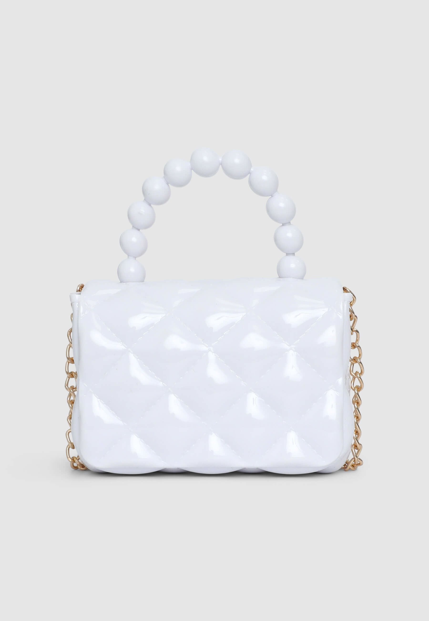 Bolso de niña ideal para ocasiones especiales o para completar un look juguetón y a la moda. De diseño en color sólido, se distingue por la elegante decoración con strass en la solapa. Equipado con una cadena para un toque chic y un asa rígida, es perfecto para llevarlo tanto de la mano como al hombro, añadiendo un detalle brillante y divertido. Dimensiones: Altura 8cm, Longitud 12cm, Profundidad 4,8cm.Detalles