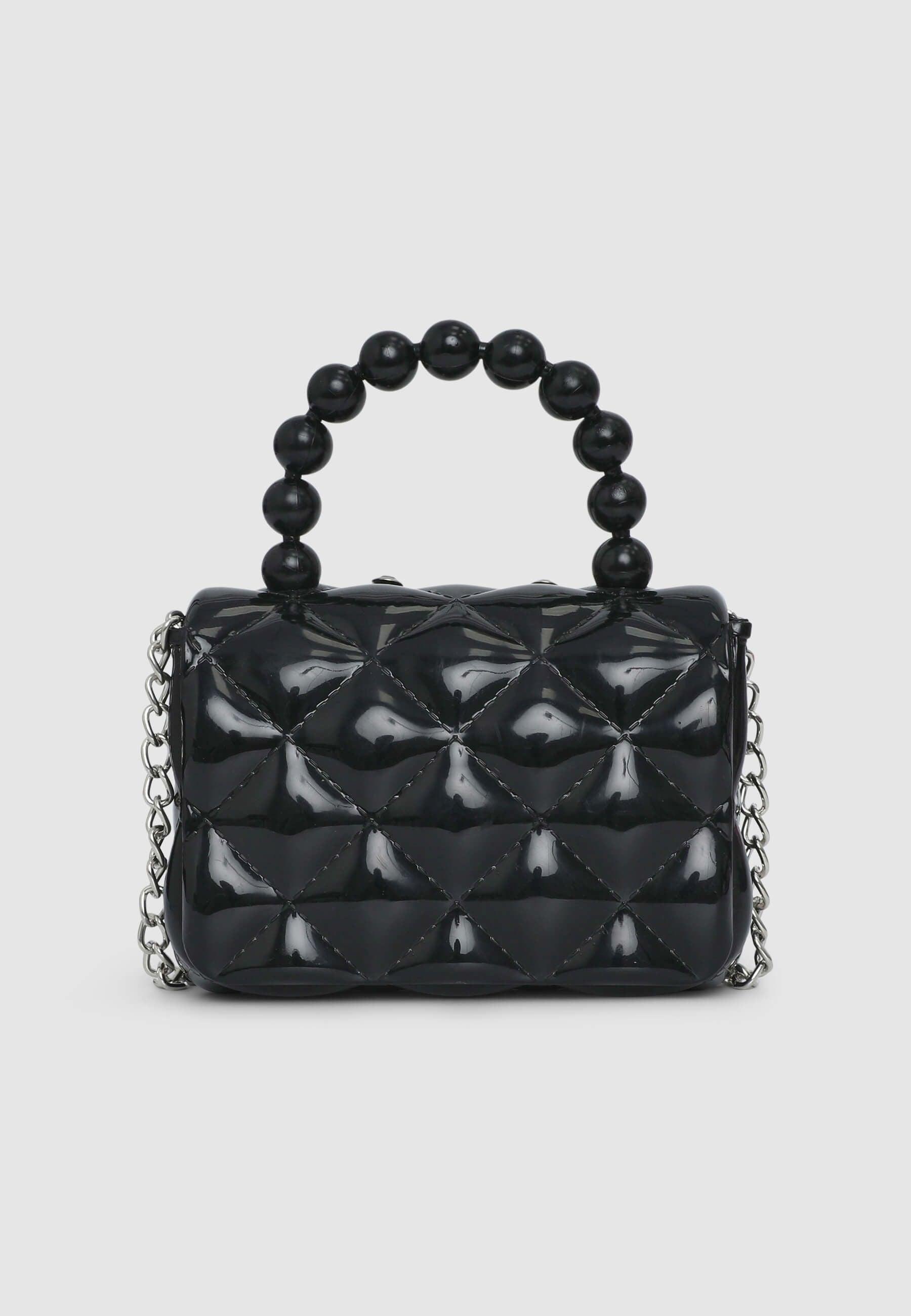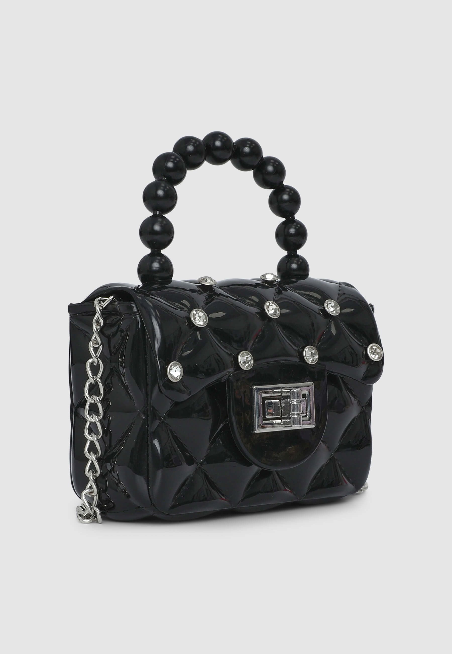 Bolso de niña ideal para ocasiones especiales o para completar un look juguetón y a la moda. Con un diseño de color sólido, se destaca por la elegante decoración con strass en la solapa. Equipado con una cadena para un toque chic y un asa rígida, es perfecto para llevarlo tanto a mano como al hombro, añadiendo un detalle brillante y divertido. Dimensiones: Altura 8cm, Longitud 12cm, Profundidad 4,8cm.Detalles