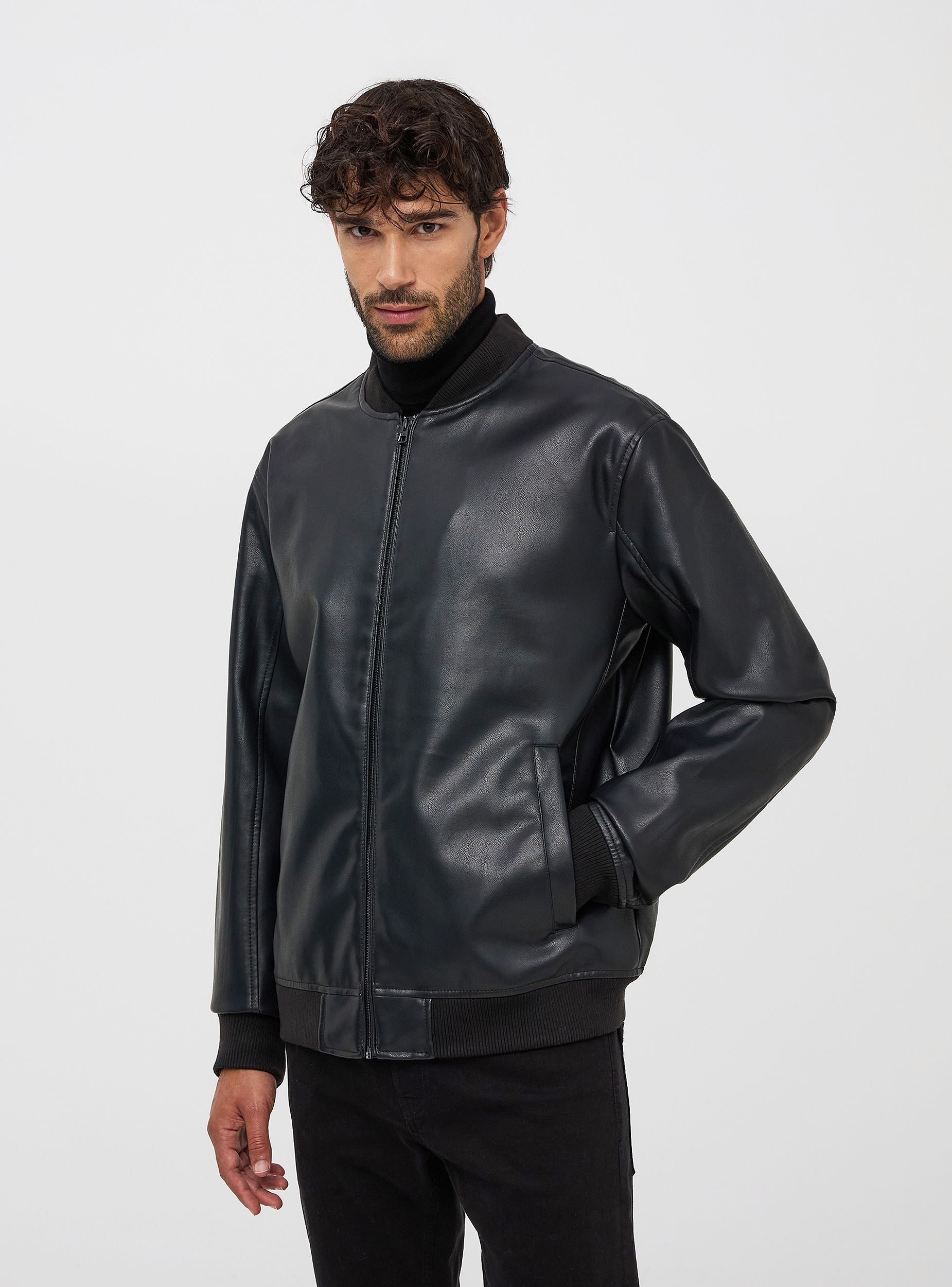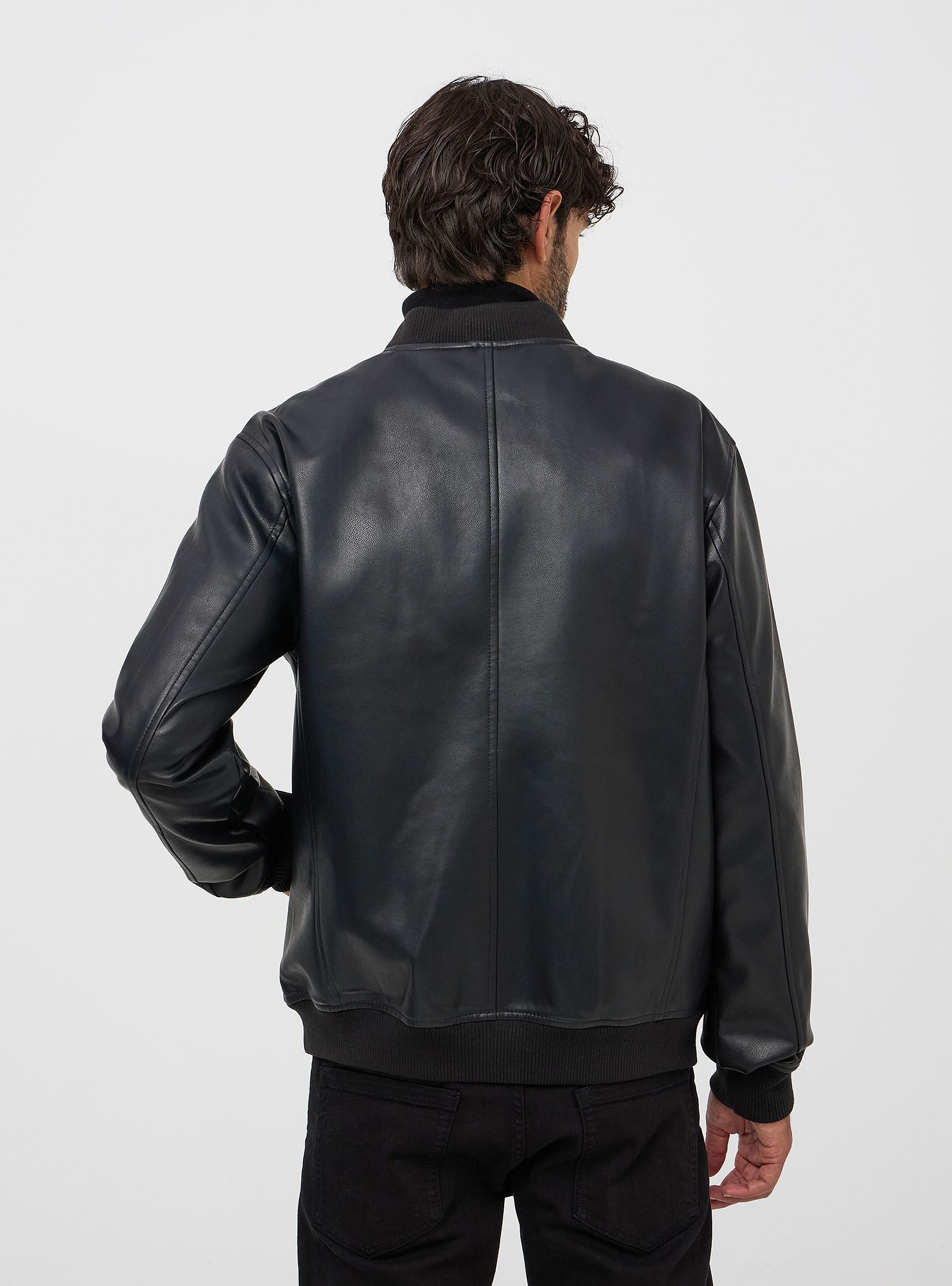 Chaqueta de hombre, modelo bomber en tejido efecto piel. El diseño presenta un cierre frontal con cremallera, cuello, puños y dobladillo de punto acanalado para un ajuste cómodo. Los bolsillos laterales ofrecen practicidad y funcionalidad, mientras que el color negro versátil hace que esta chaqueta sea fácil de combinar con varios outfits. Perfecta para ocasiones casuales y nocturnas, esta chaqueta es ideal para llevar con jeans y zapatillas para un look relajado, o con pantalones chinos y camisa para un look más refinado, o encima de un suéter para un outfit más cálido y acogedor. Elige esta chaqueta de hombre para una prenda versátil y a la moda que añadirá carácter y practicidad a tu vestuario.