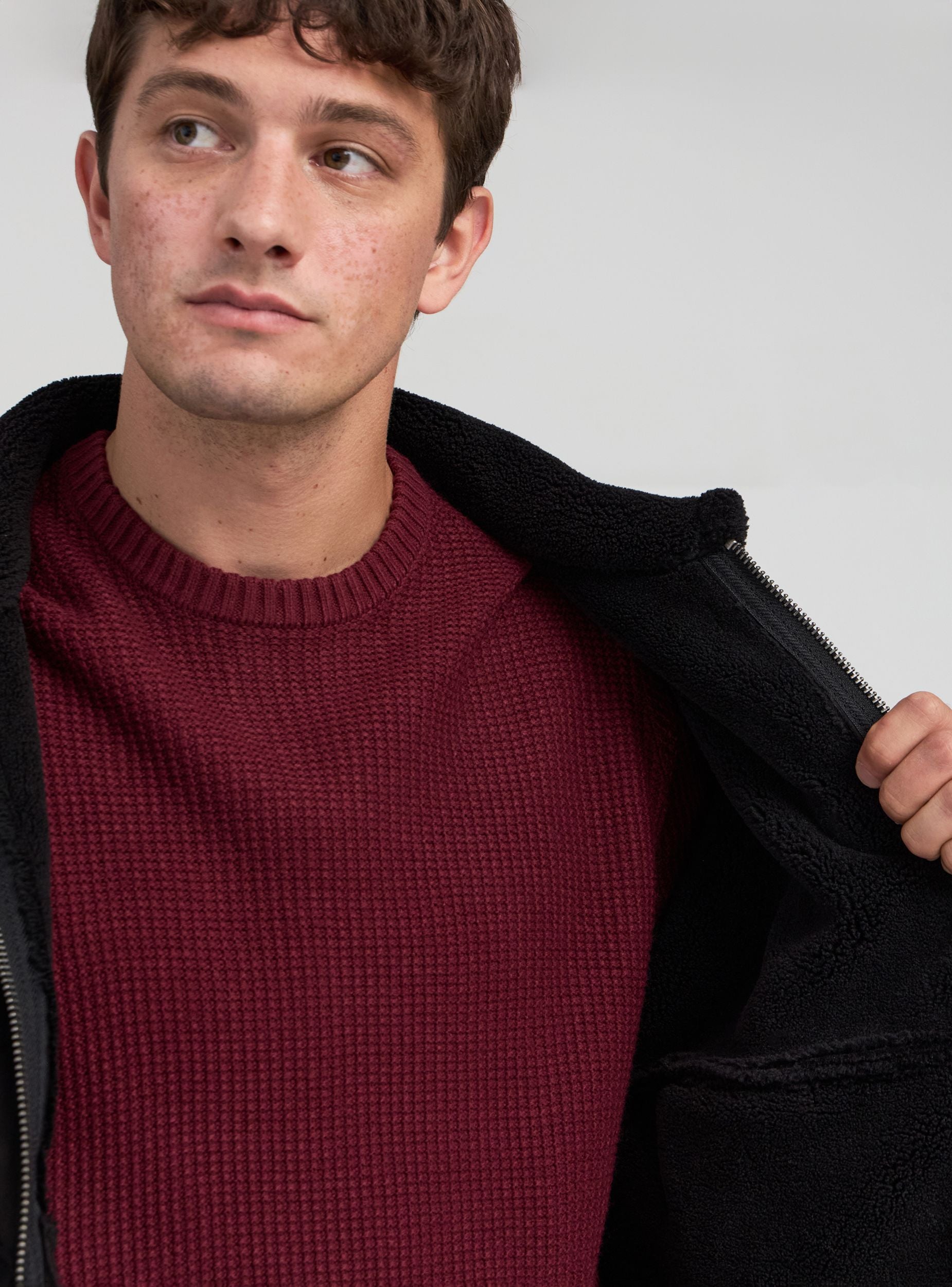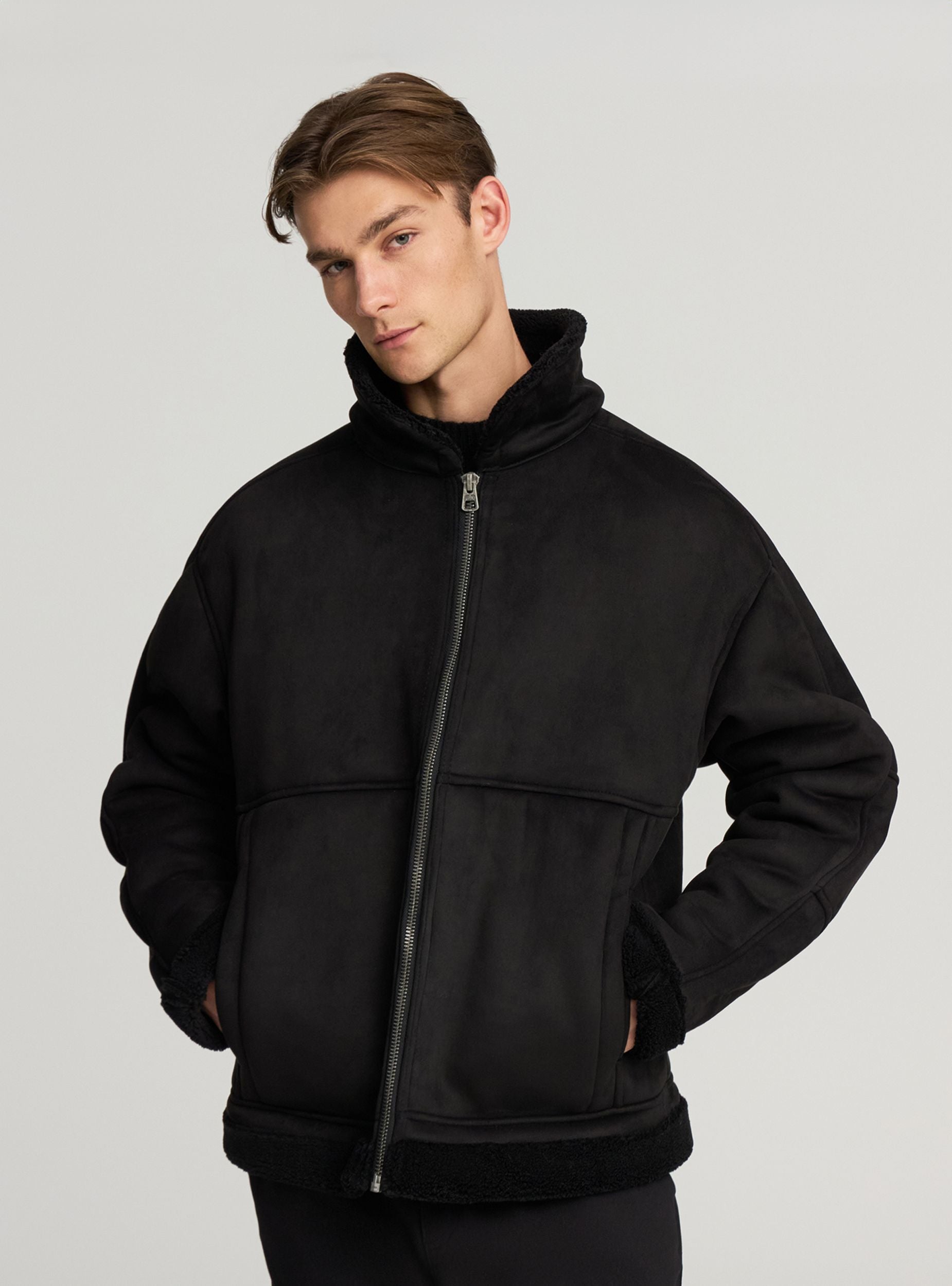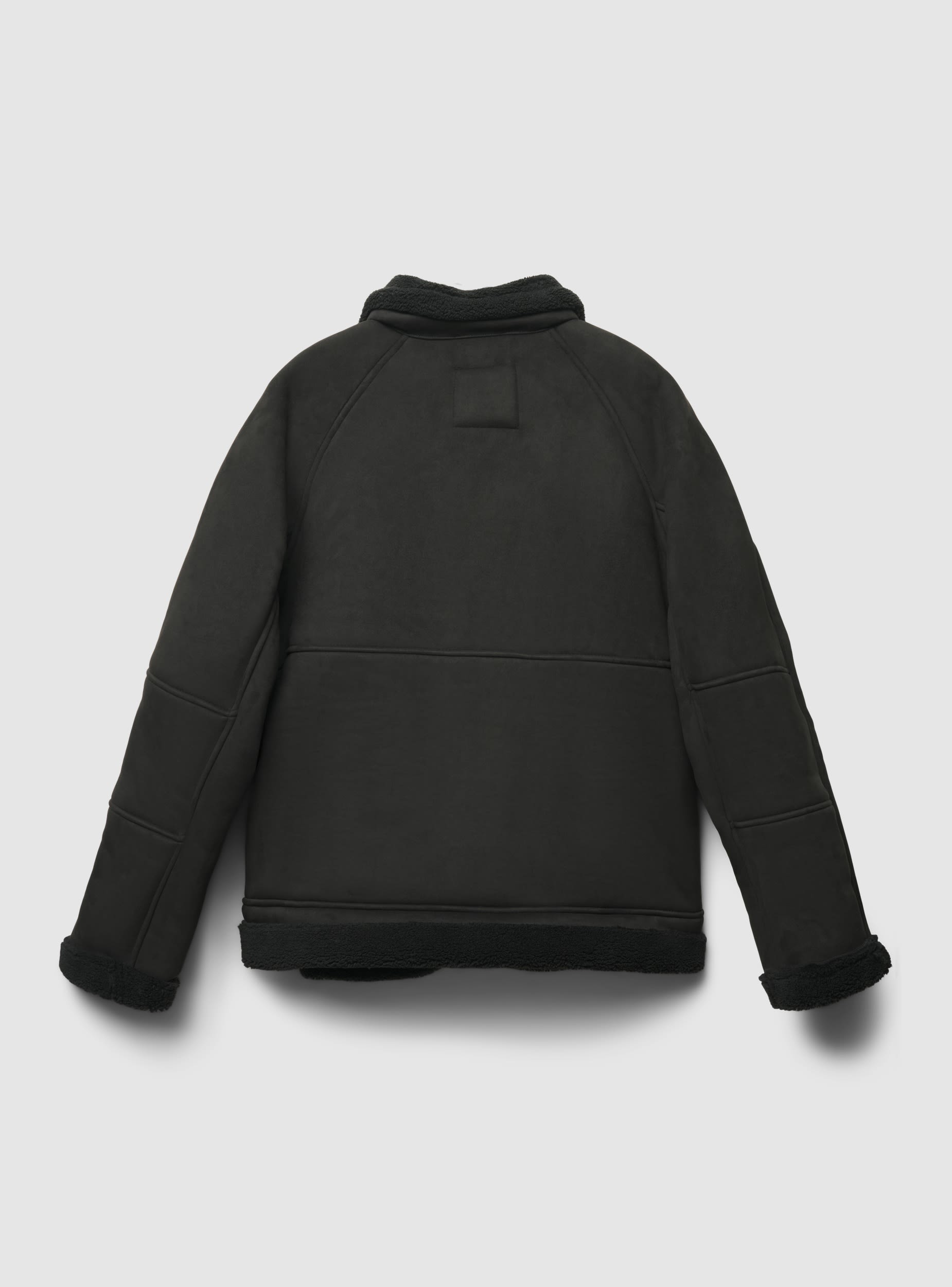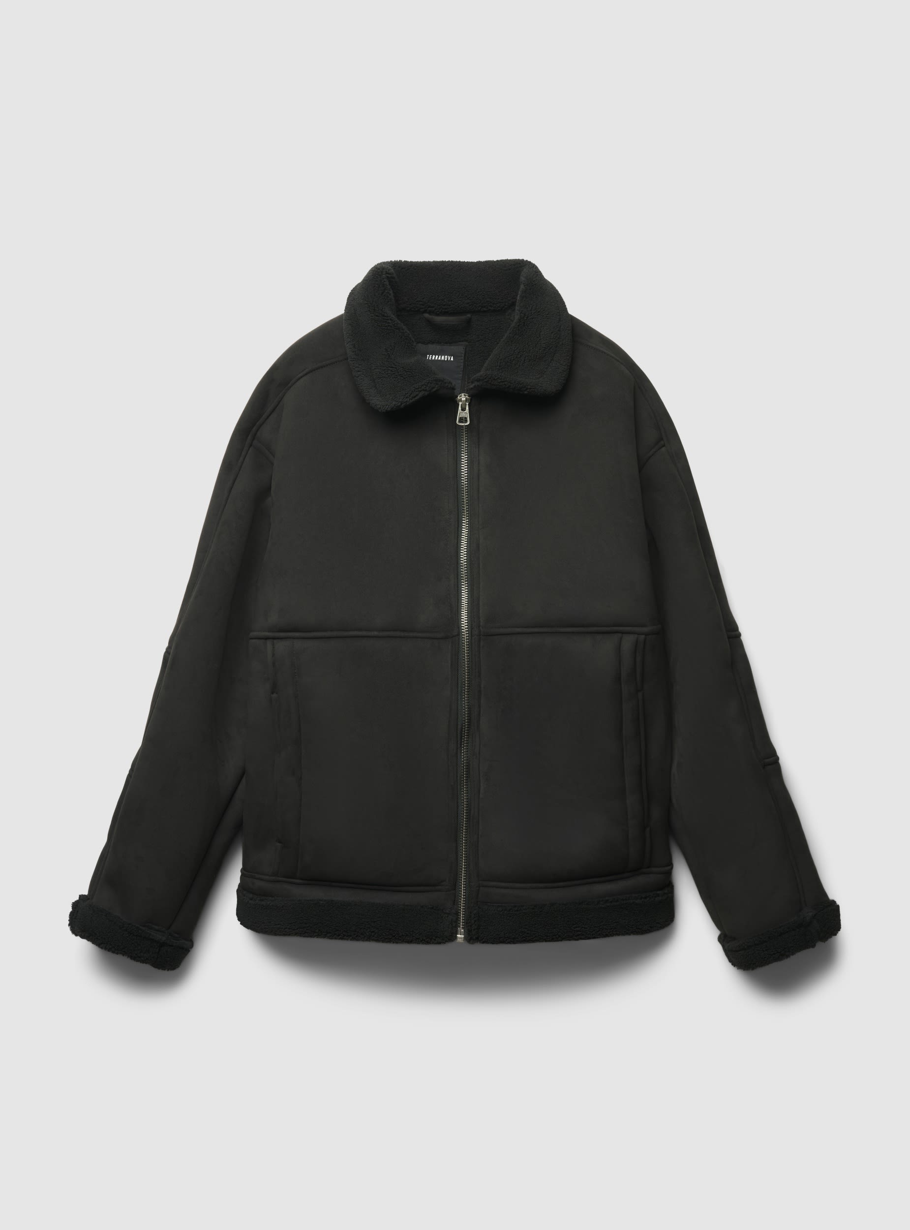 Chaqueta acolchada de hombre con efecto ante y diseño aviador, ideal para los meses fríos. Modelo con cremallera frontal, cuello de camisa con efecto de piel sintética y mangas largas. Cuenta con bolsillos laterales. Ajuste regular que permite superponer jerséis y sudaderas. Perfecta con vaqueros y botines para el tiempo libre o con pantalones chinos para un look urbano cuidado.Detalles