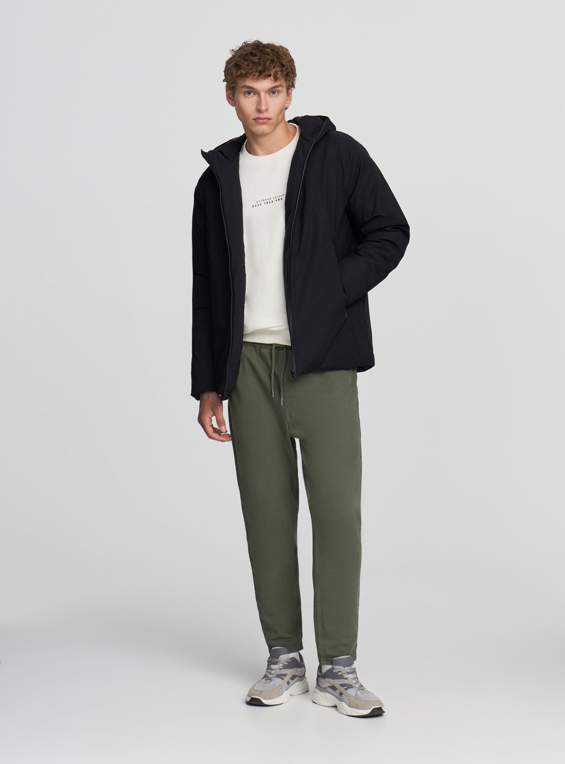 Chaqueta técnica de hombre, perfecta para un look casual y funcional. Cuenta con capucha y cierre de cremallera, ofreciendo protección y comodidad durante los días fríos. Los bolsillos laterales con cremallera añaden practicidad, mientras que el diseño en color liso lo hace versátil para combinar con vaqueros o pantalones deportivos. Ideal para actividades al aire libre o para un outfit cotidiano moderno.
