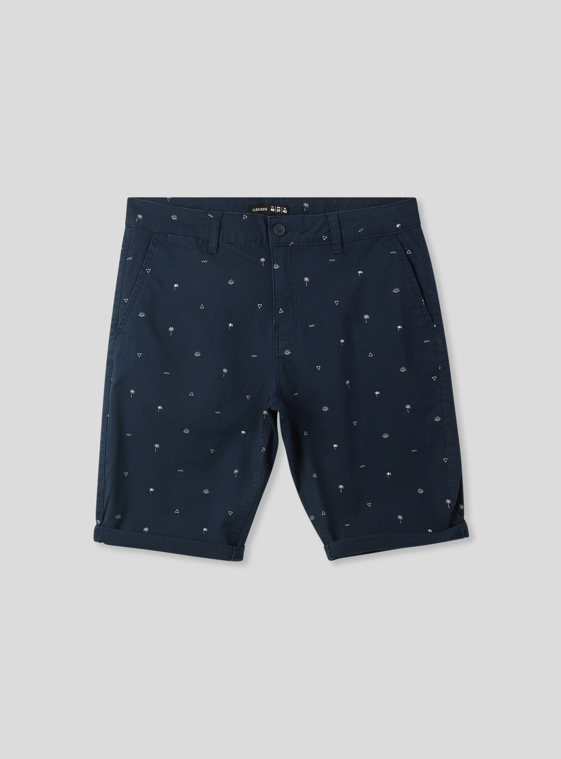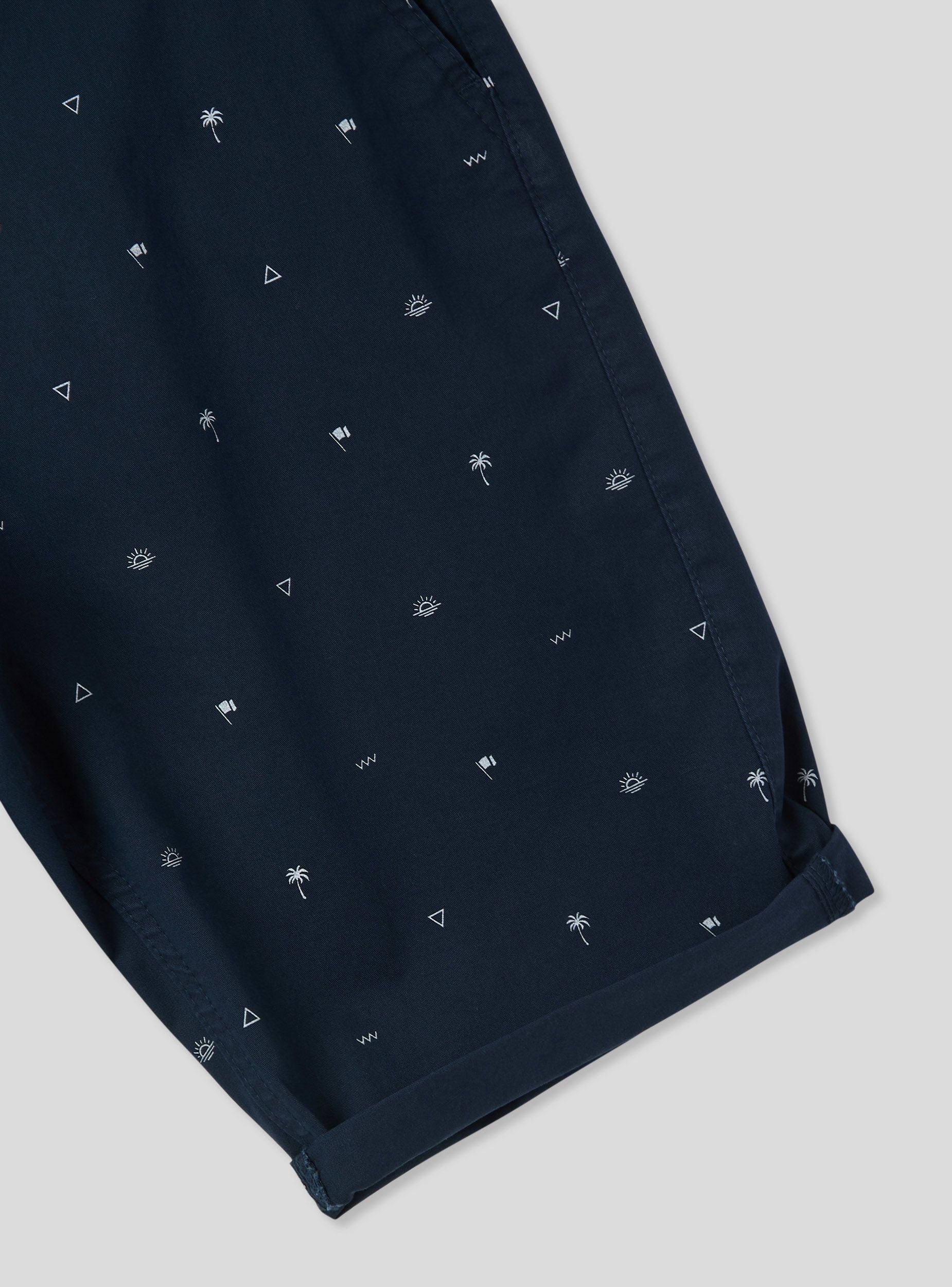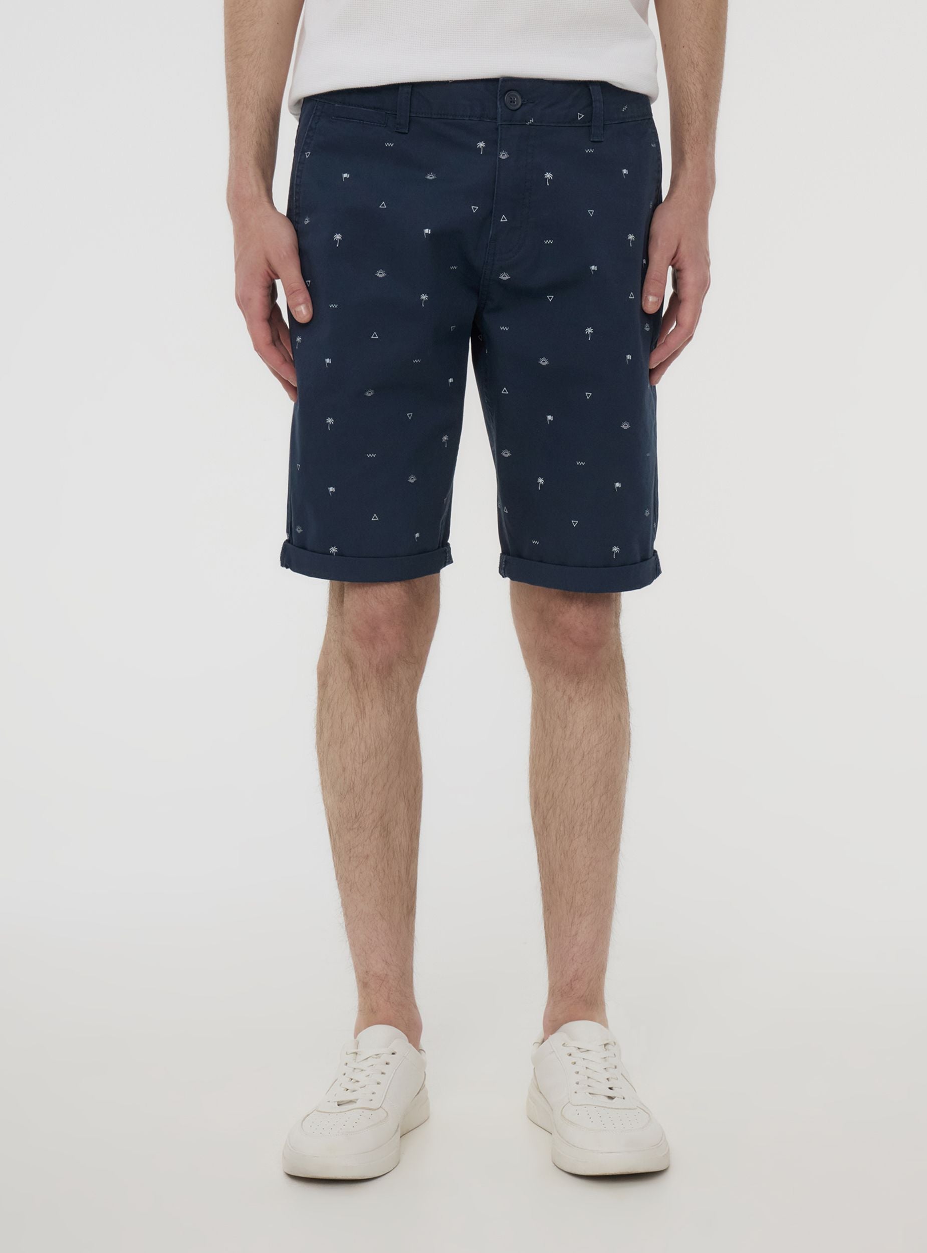 'Pantalones cortos de hombre, modelo chino, ideales para un look casual y relajado, perfectos para el tiempo libre o para un atuendo de verano. Caracterizados por un ajuste regular, presentan un cierre con botón y bolsillos oblicuos. El diseño con microestampado de tema marino añade un toque de originalidad, haciéndolos versátiles y adecuados para múltiples ocasiones.'Detalles