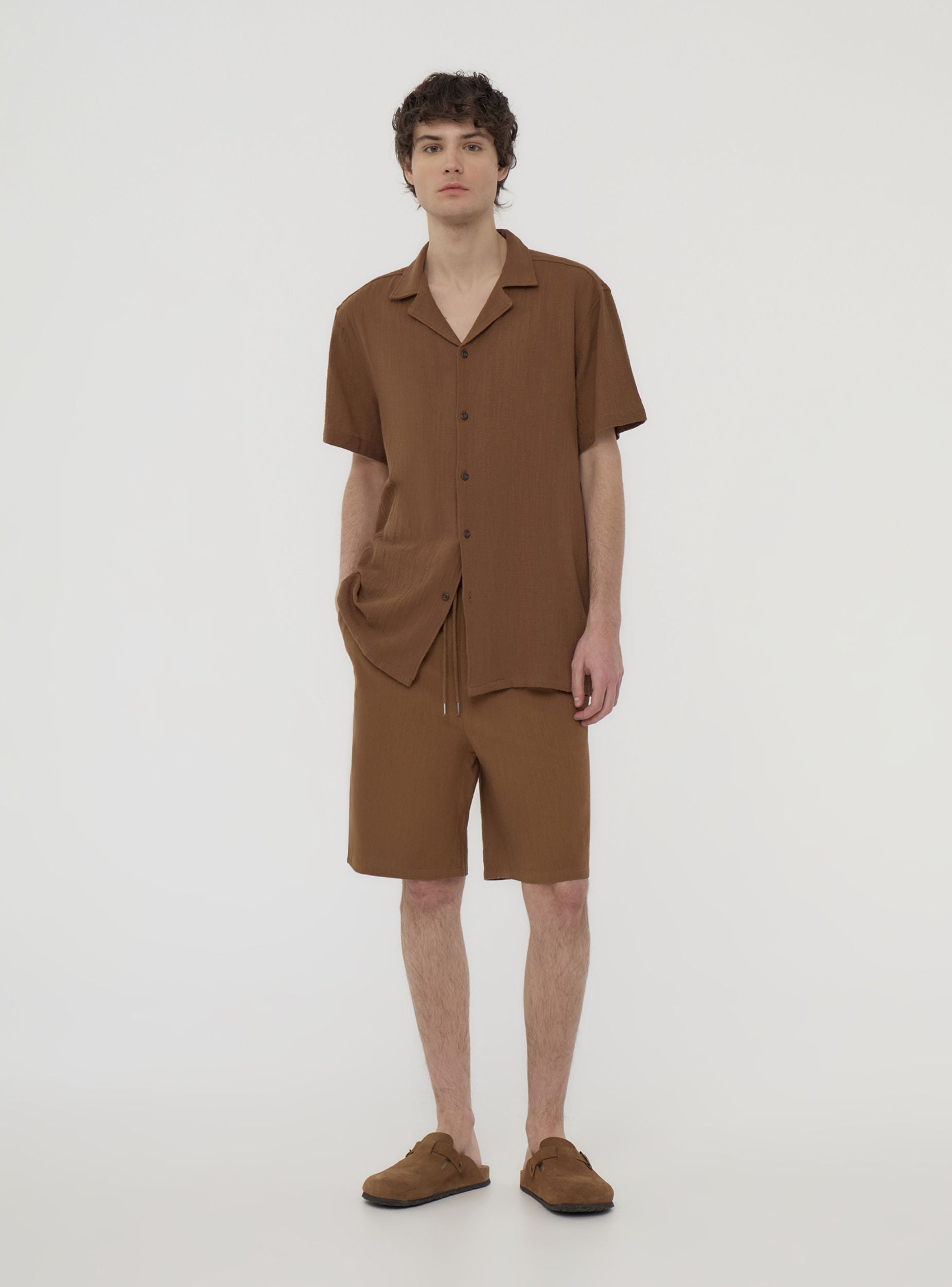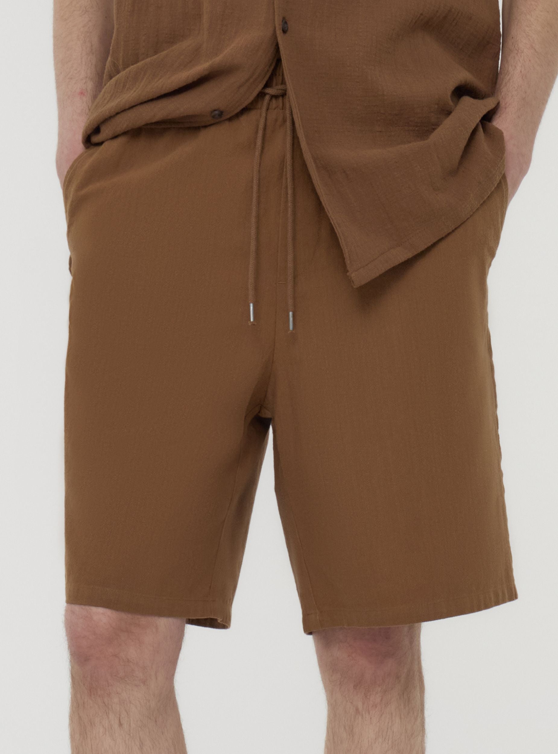 Pantalones cortos para hombre ideales para un look casual y relajado, perfectos para el tiempo libre o para días de verano. Caracterizados por un ajuste regular, presentan una cintura elástica con cordón y bolsillos laterales. Una prenda versátil y cómoda, adecuada para múltiples ocasiones informales.Detalles