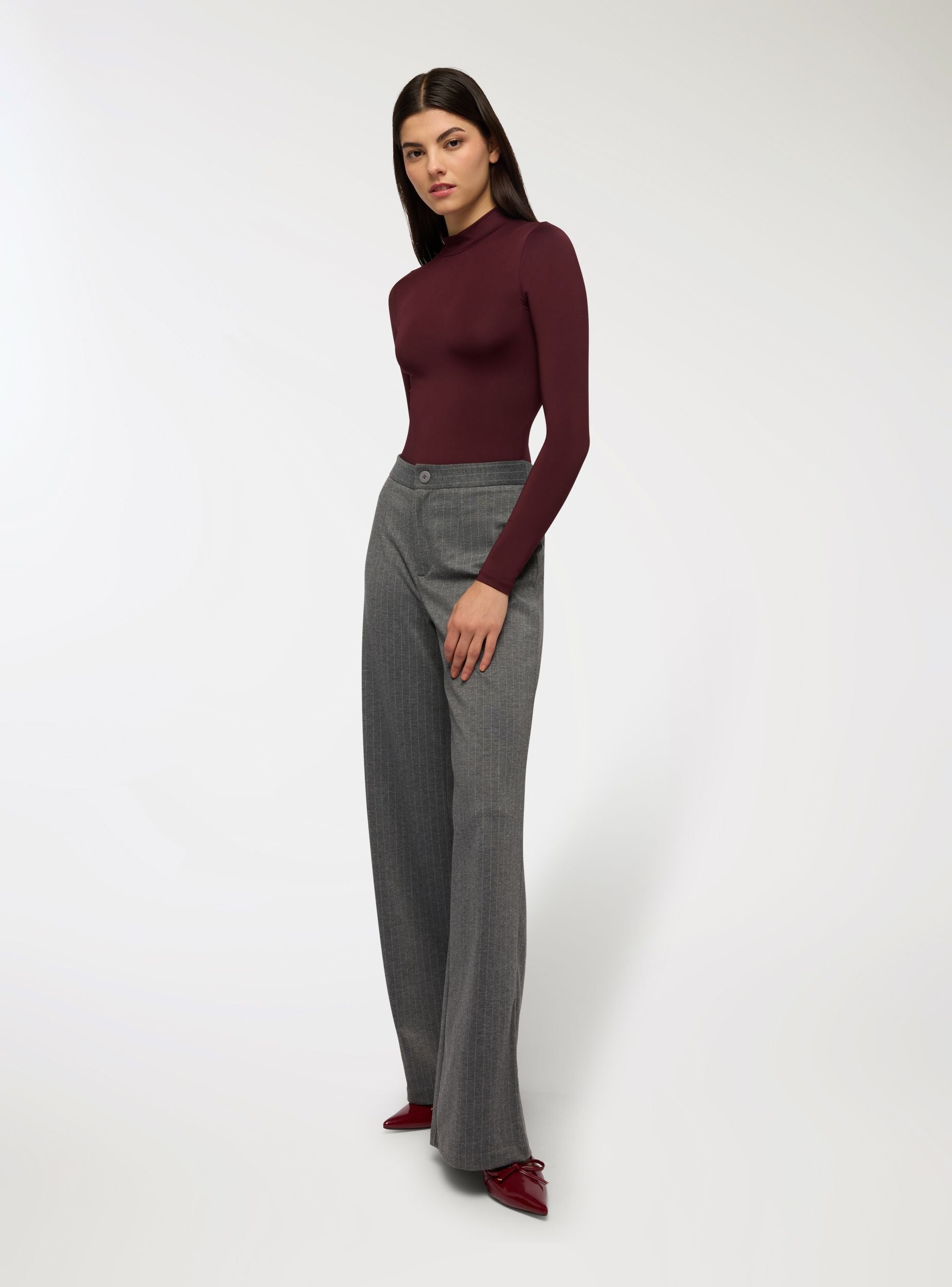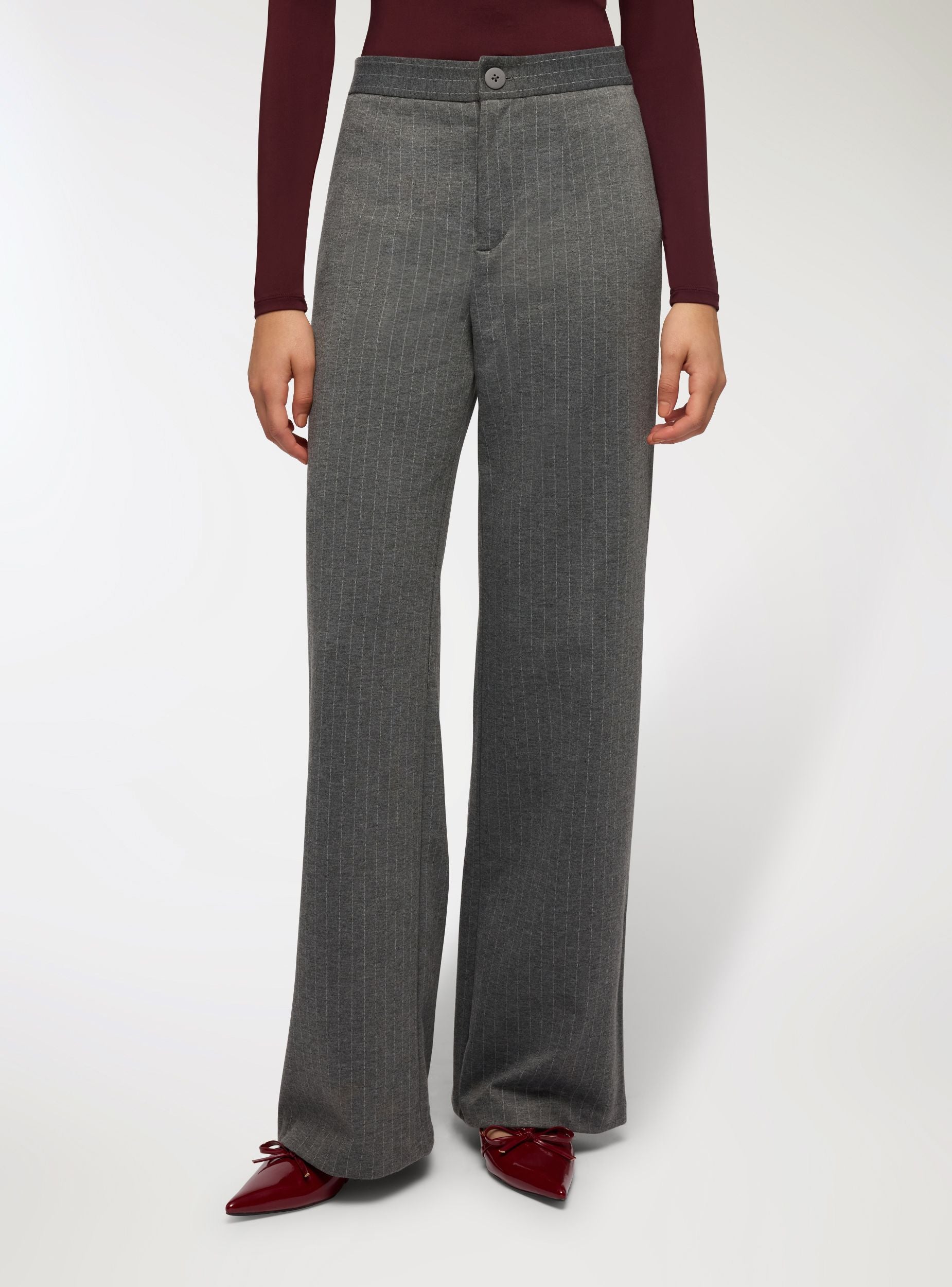 Pantalones de mujer con un ajuste amplio y diseño de rayas finas. Ideales para ocasiones formales o para un look profesional, estos pantalones se destacan por su estilo elegante y moderno. El cierre con botón añade un toque de practicidad, mientras que el corte wide leg garantiza comodidad y libertad de movimiento. Perfectos para combinar con camisas o blusas para un conjunto sofisticado.Detalles