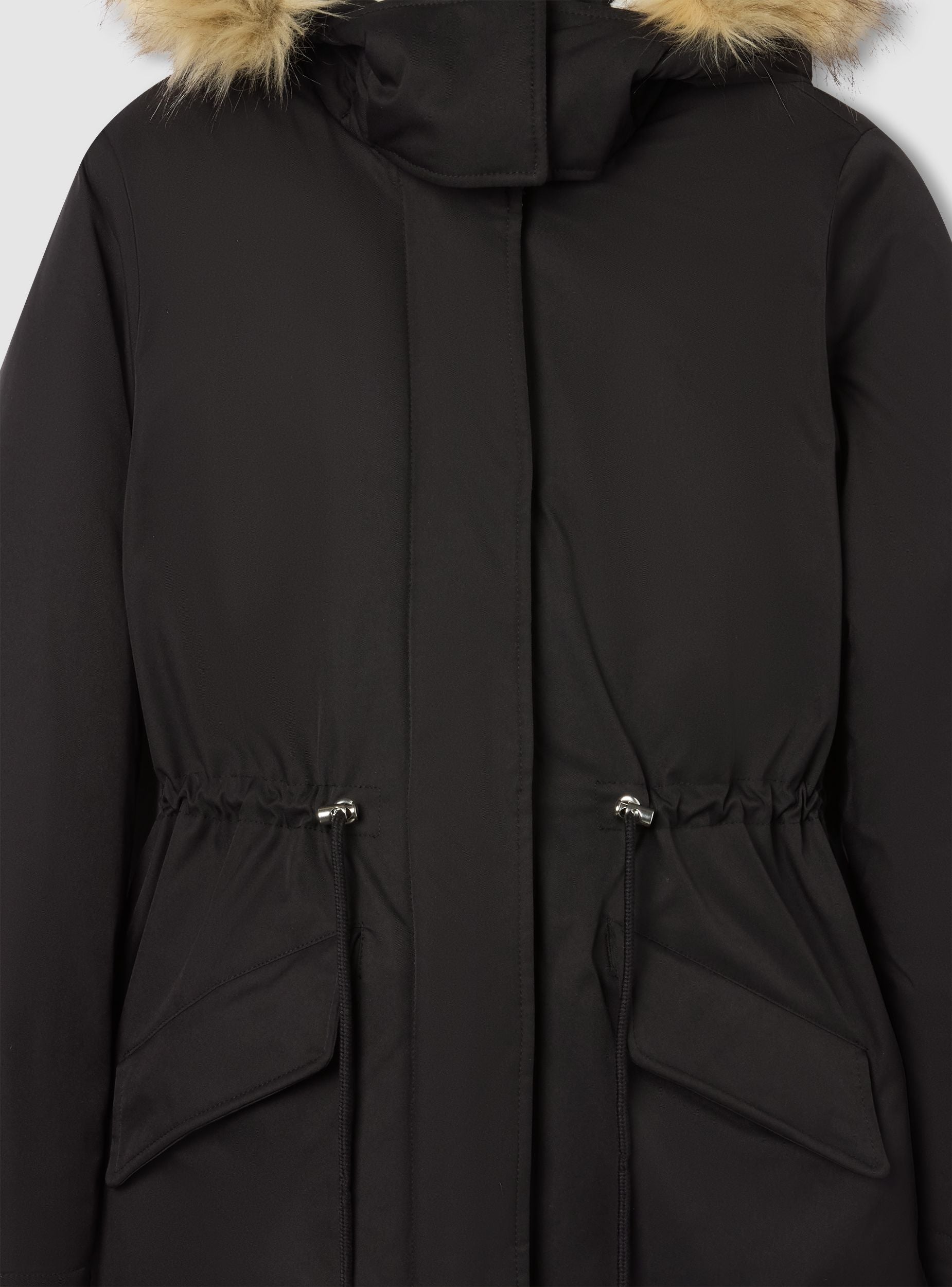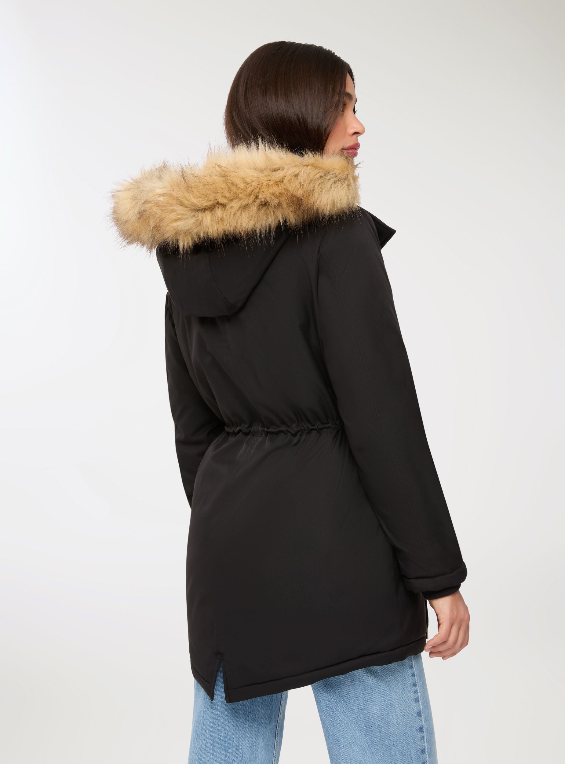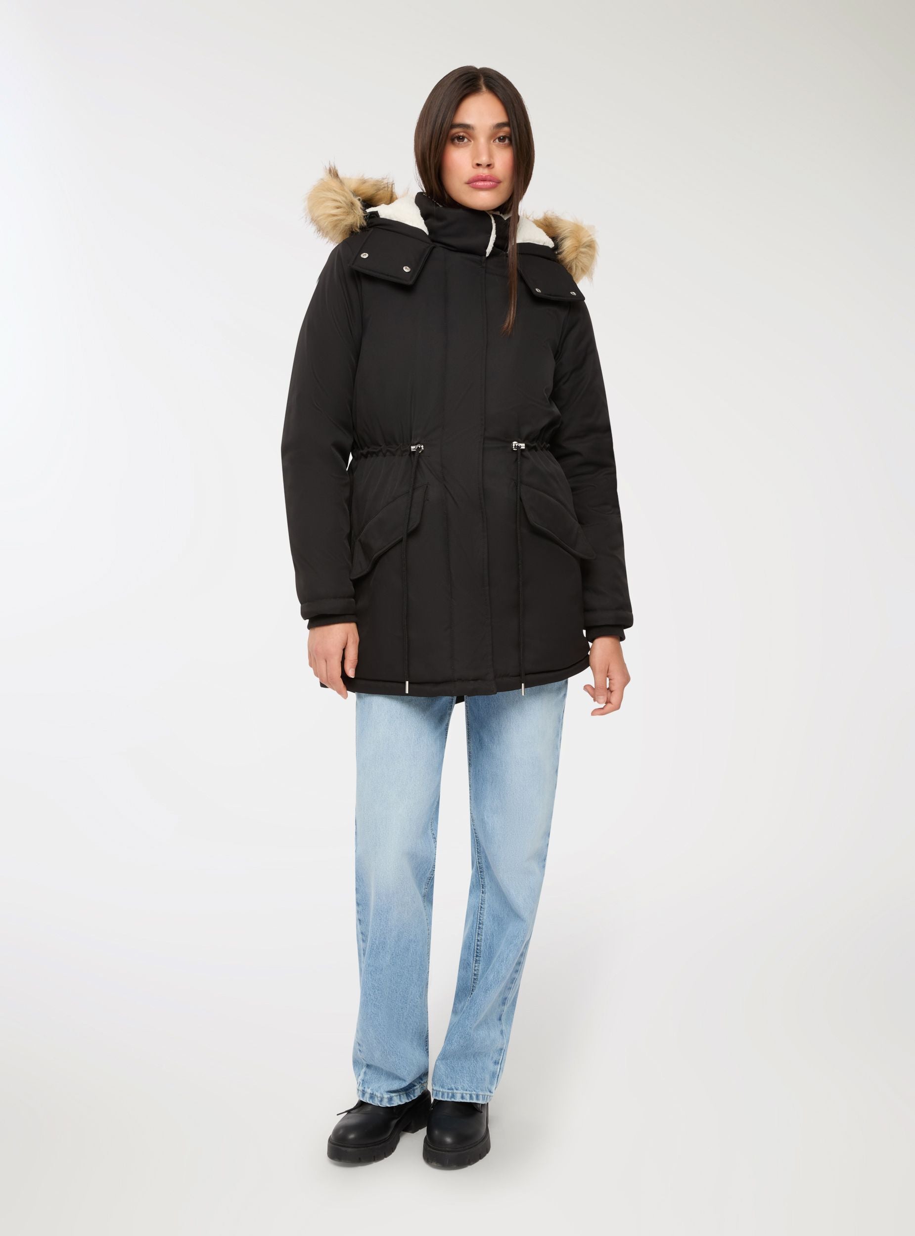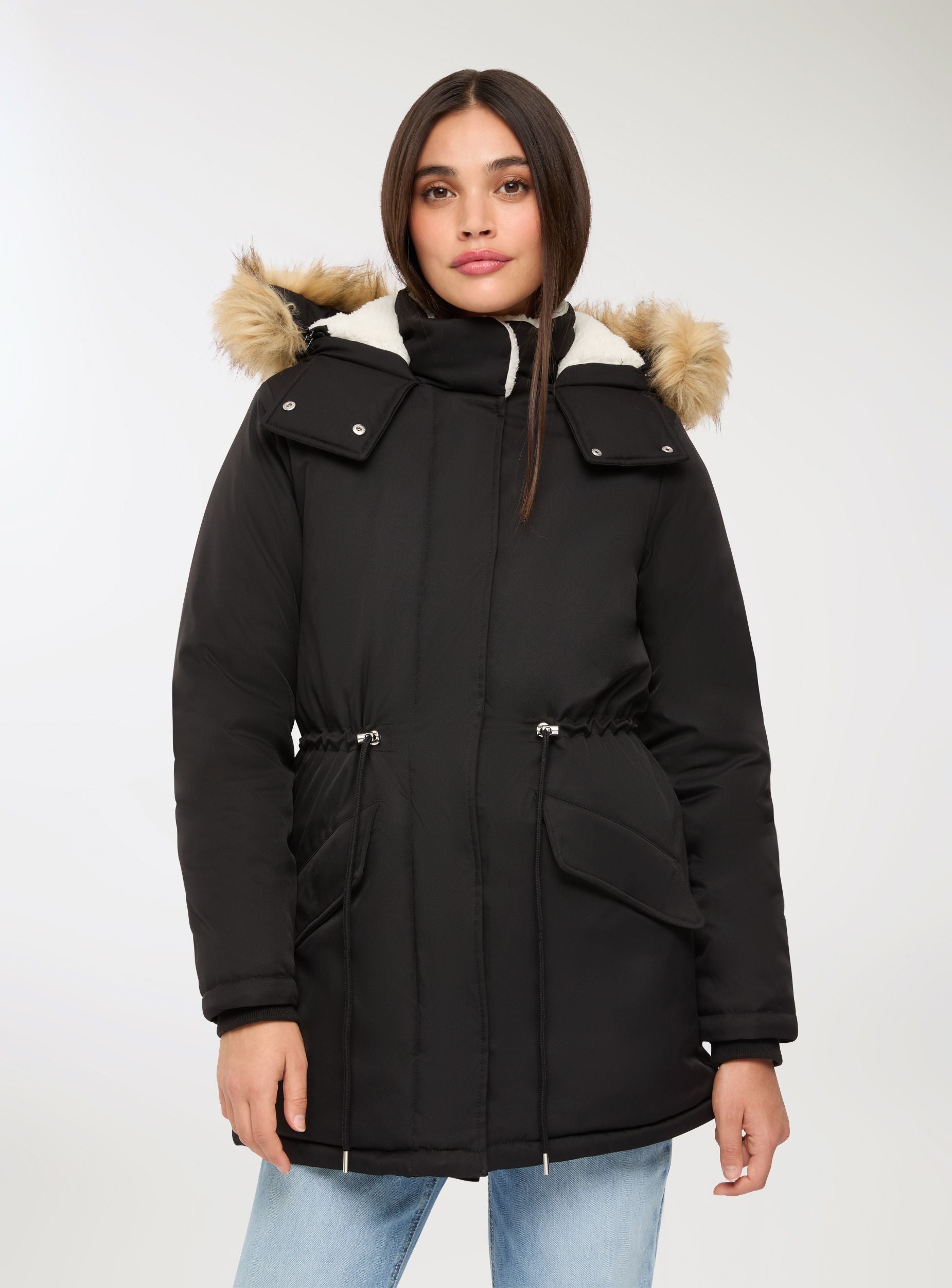 Parka acolchado de mujer con capucha y borde de pelo, ideal para afrontar los días fríos con estilo. Cuenta con cierre de cremallera y botones, ofreciendo un ajuste cómodo y práctico. Perfecto para combinaciones casuales, presenta bolsillos funcionales y un diseño de color liso que se adapta a múltiples ocasiones.Detalles