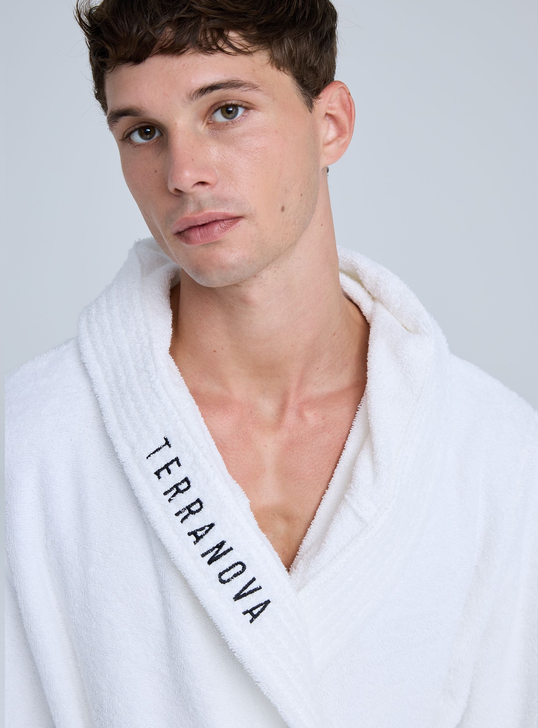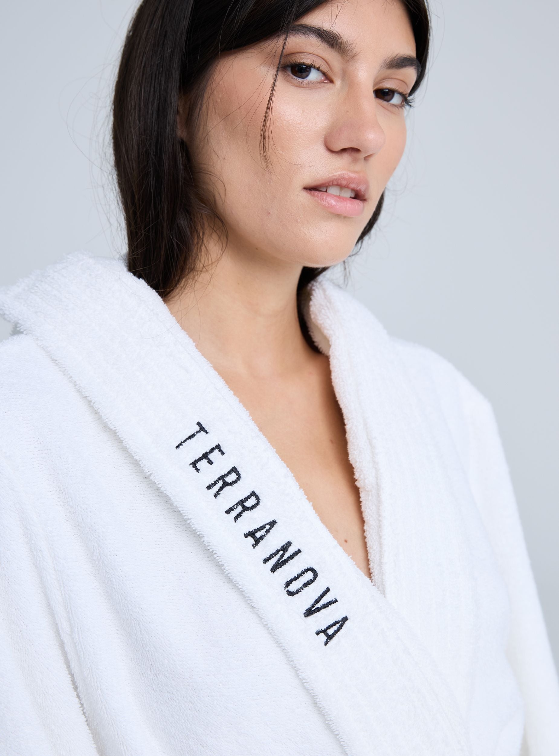 Albornoz de rizo, suave y con un diseño moderno. Fabricado con tejido de calidad, ofrece un ajuste cómodo, cinturón ajustable y prácticos bolsillos laterales. Presenta un bordado con el logo TRN. Disponible en varios colores. Perfecto para llevar en casa, en el gimnasio o de viaje.Detalles