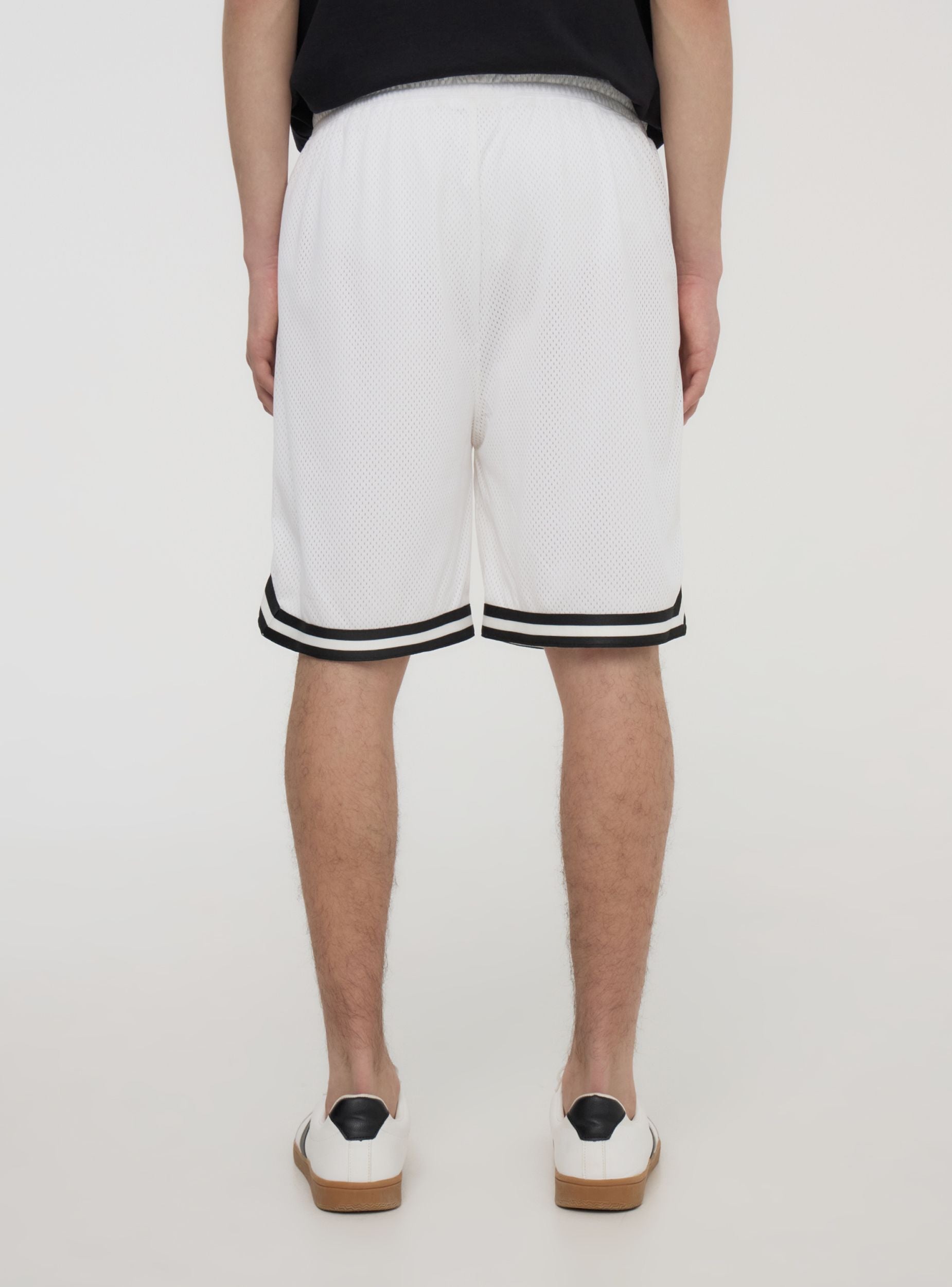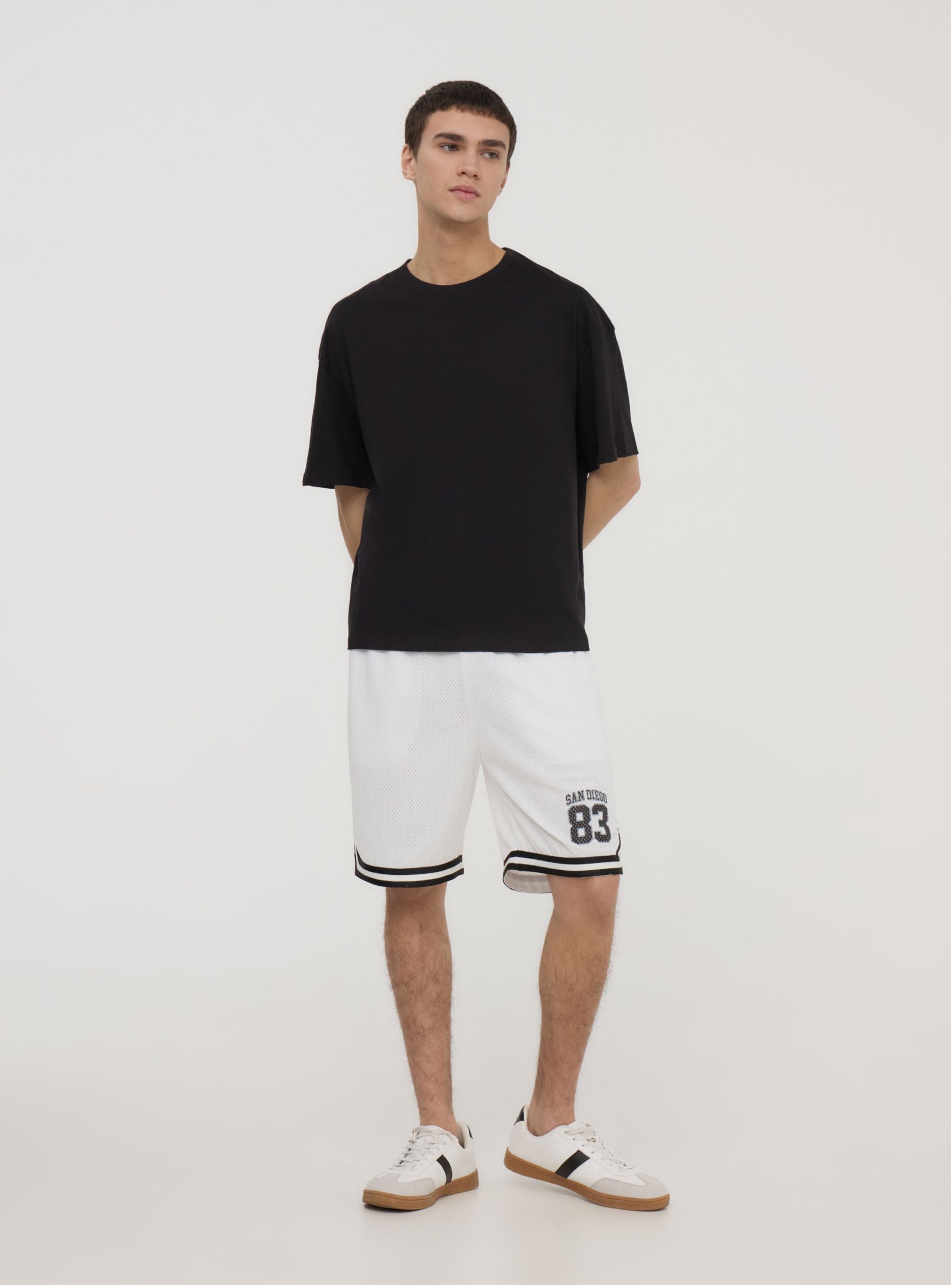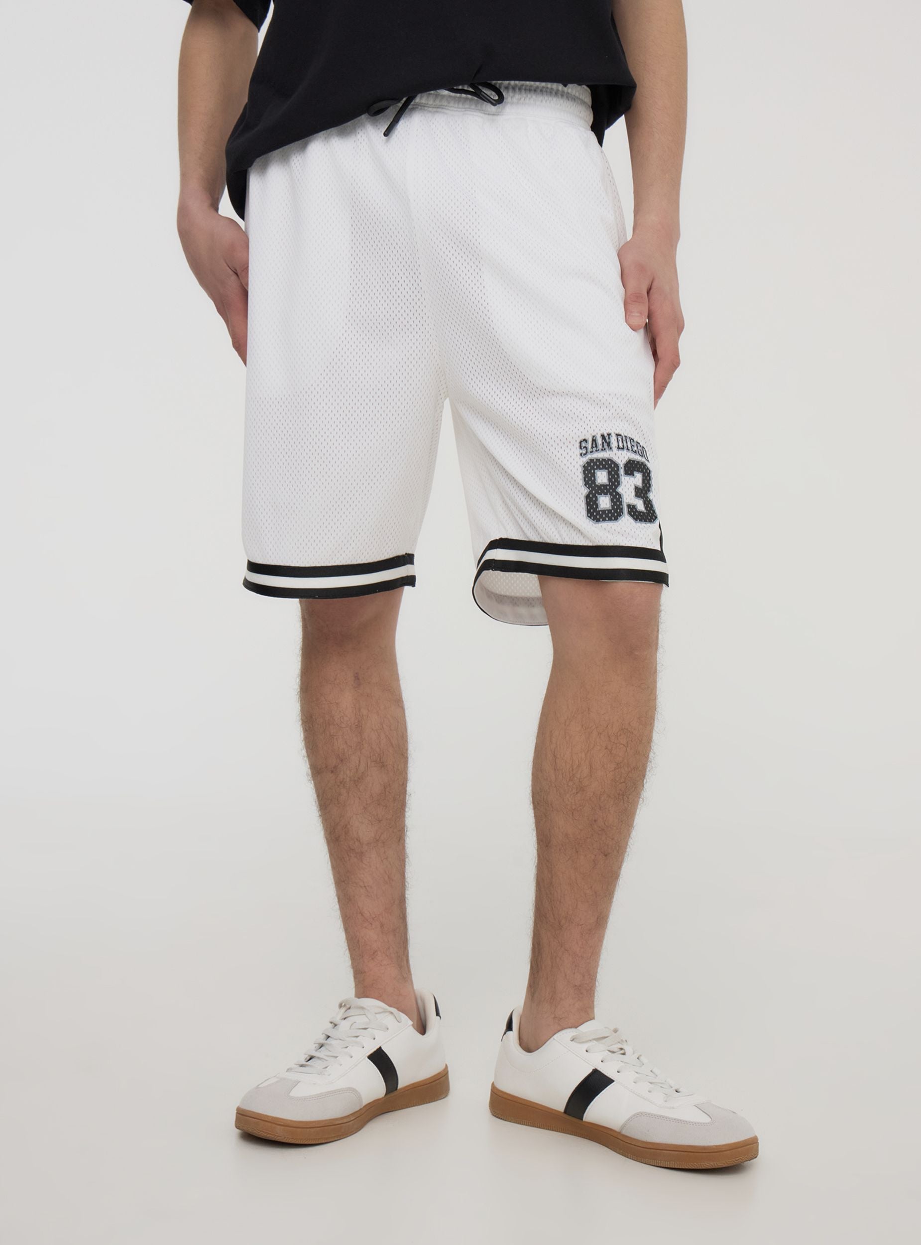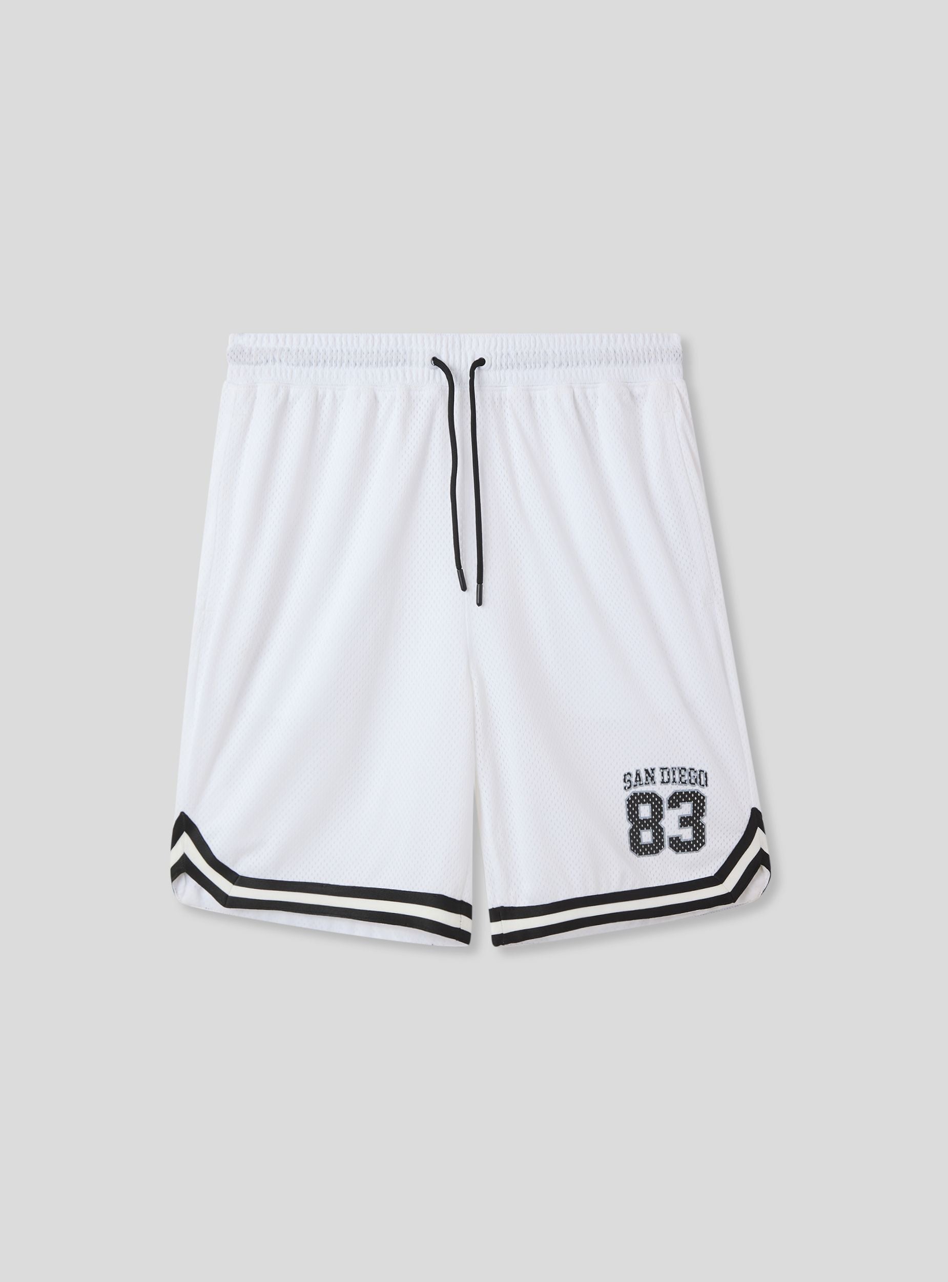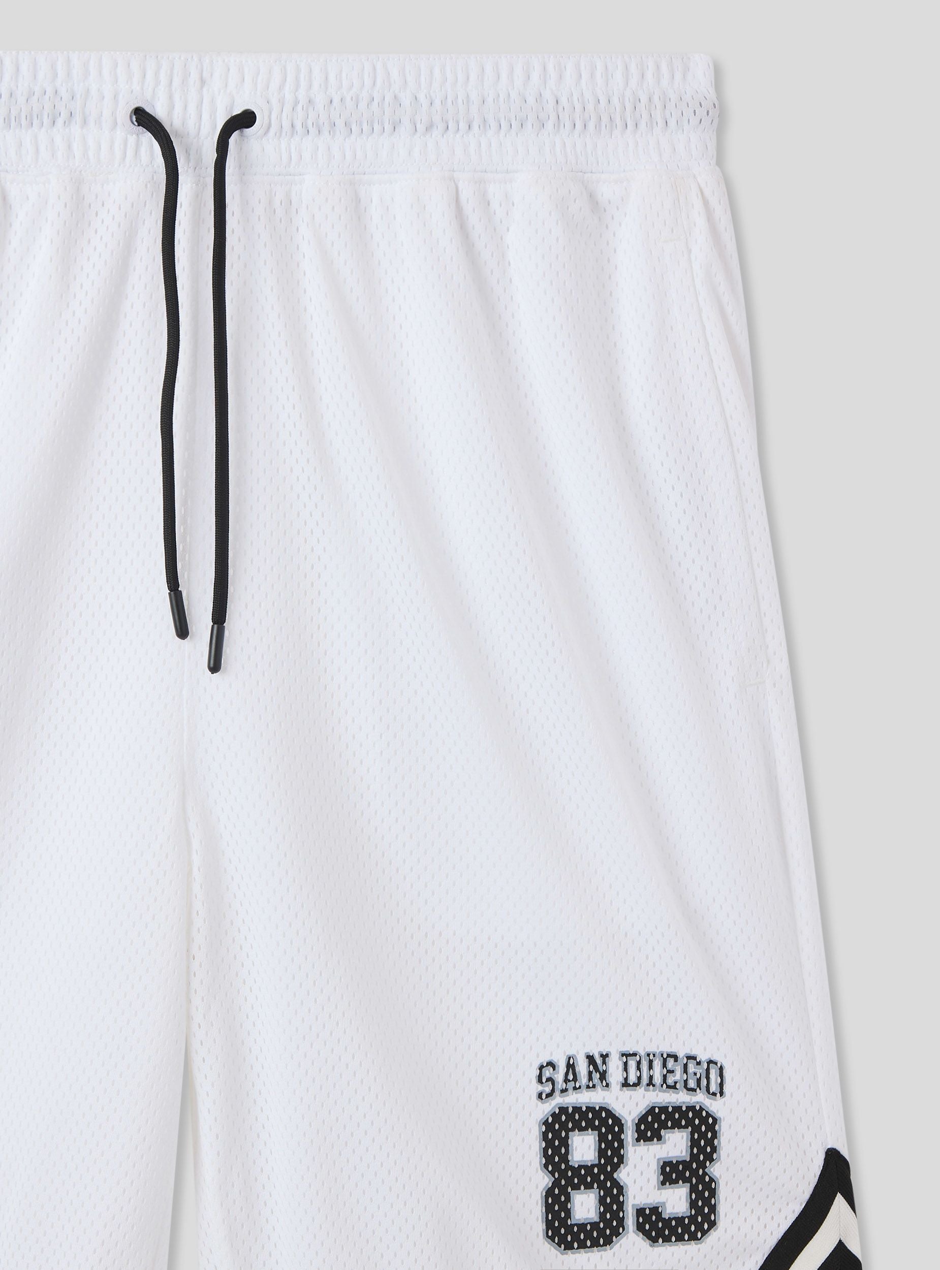 Bermudas de hombre en malla inspiradas en el baloncesto, caracterizadas por una impresión deportiva en el lateral. Equipadas con un práctico cordón en la cintura para un ajuste personalizado, estos pantalones cortos ofrecen comodidad y un estilo dinámico ideal para actividades deportivas o para el tiempo libre. La goma interior garantiza un excelente ajuste. Equipadas con prácticas bolsillos laterales. Perfectas para quienes buscan un look casual deportivo con un toque moderno.