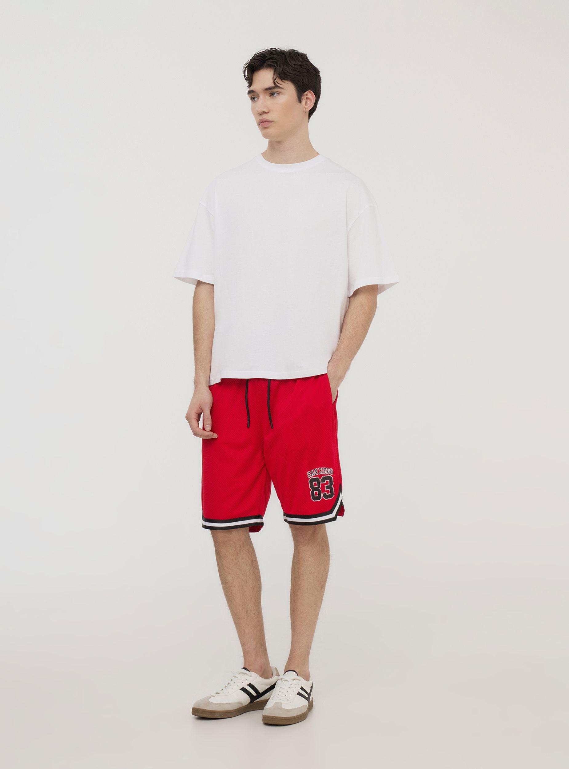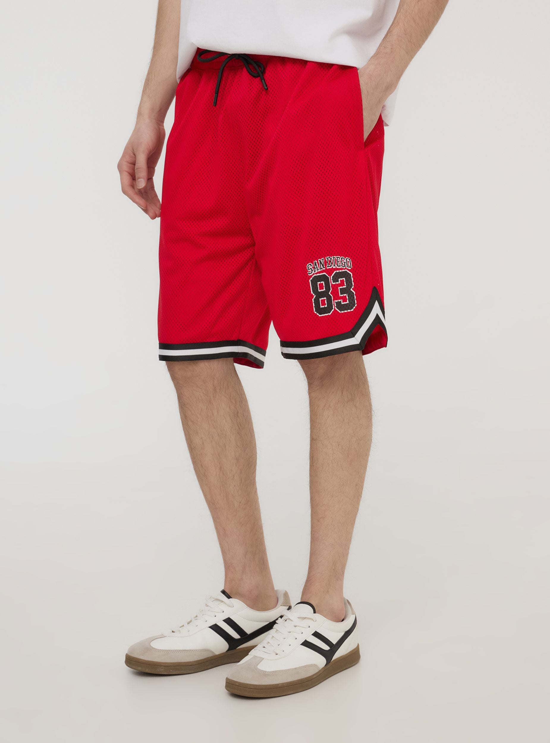 Bermudas de hombre en malla inspiradas en el baloncesto, caracterizadas por una impresión deportiva en el lateral. Equipados con un práctico cordón en la cintura para un ajuste personalizado, estos pantalones cortos ofrecen comodidad y un estilo dinámico ideal para actividades deportivas o para el tiempo libre. La goma interna garantiza un excelente ajuste. Equipados con prácticas bolsillos laterales. Perfectos para quienes buscan un look casual deportivo con un toque moderno.Detalles