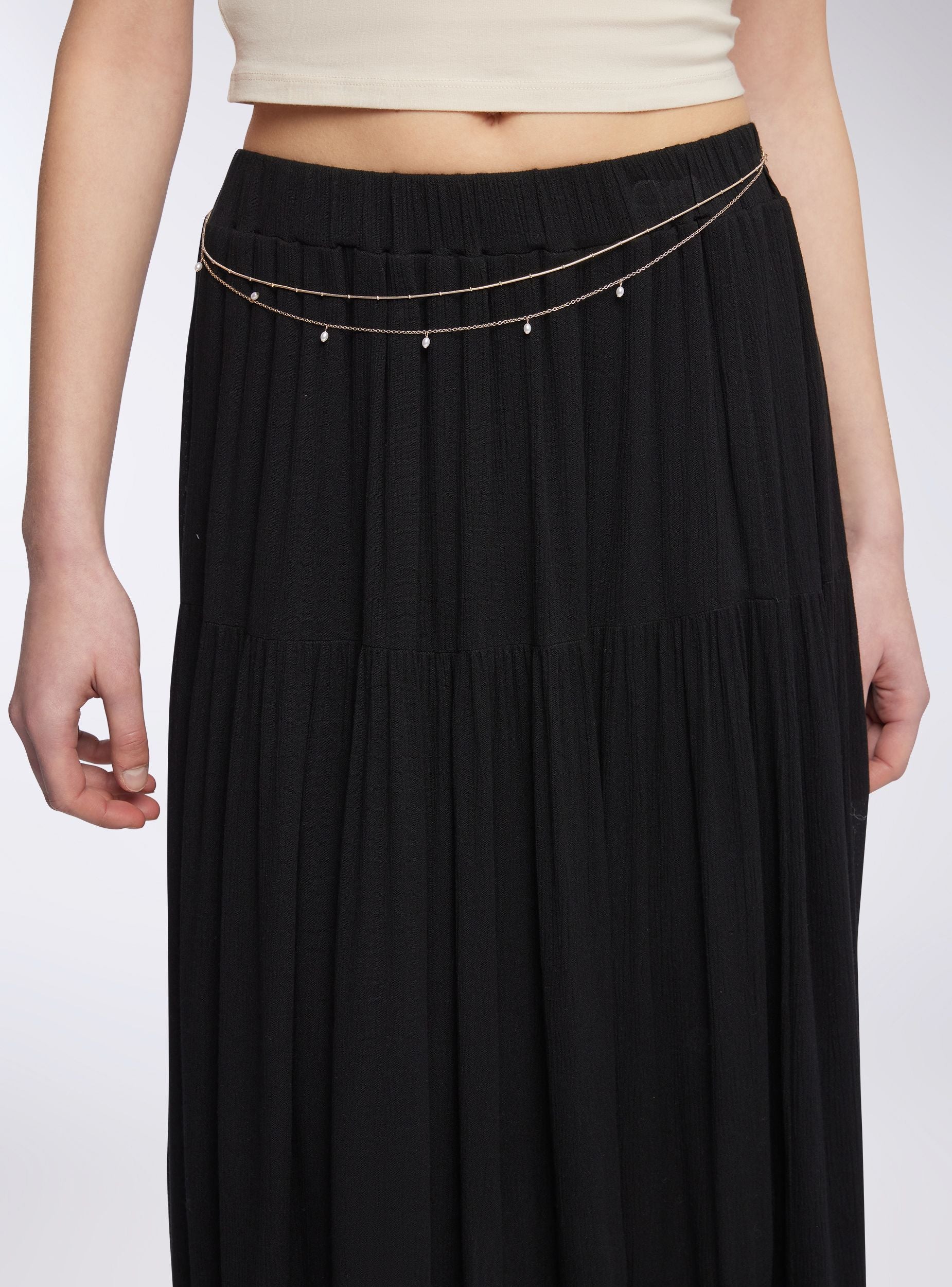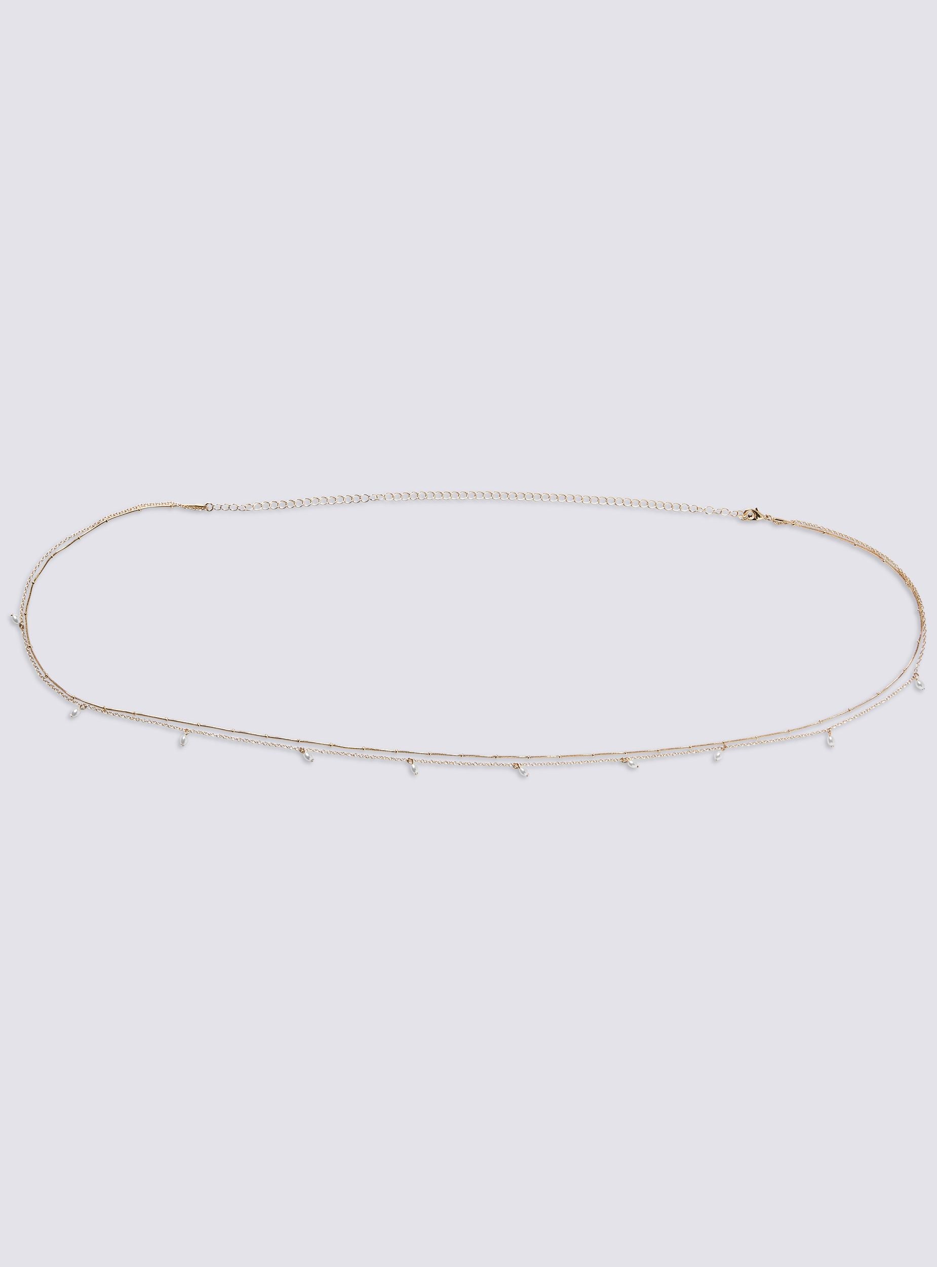 Cadena de barriga para mujer de estilo refinado y minimalista, perfecta para realzar la cintura con un toque de elegancia. Compuesta por varias cadenas delgadas enriquecidas con pequeños detalles decorativos, incluyendo perlas colgantes que aportan movimiento y luminosidad. Gracias a su cierre ajustable, se adapta perfectamente a la silueta, permitiendo llevarla sobre faldas, pantalones de cintura alta o bikinis para un efecto glamuroso. Un accesorio versátil y de tendencia, ideal para realzar el look con un detalle sofisticado y cuidado. Libre de níquel.