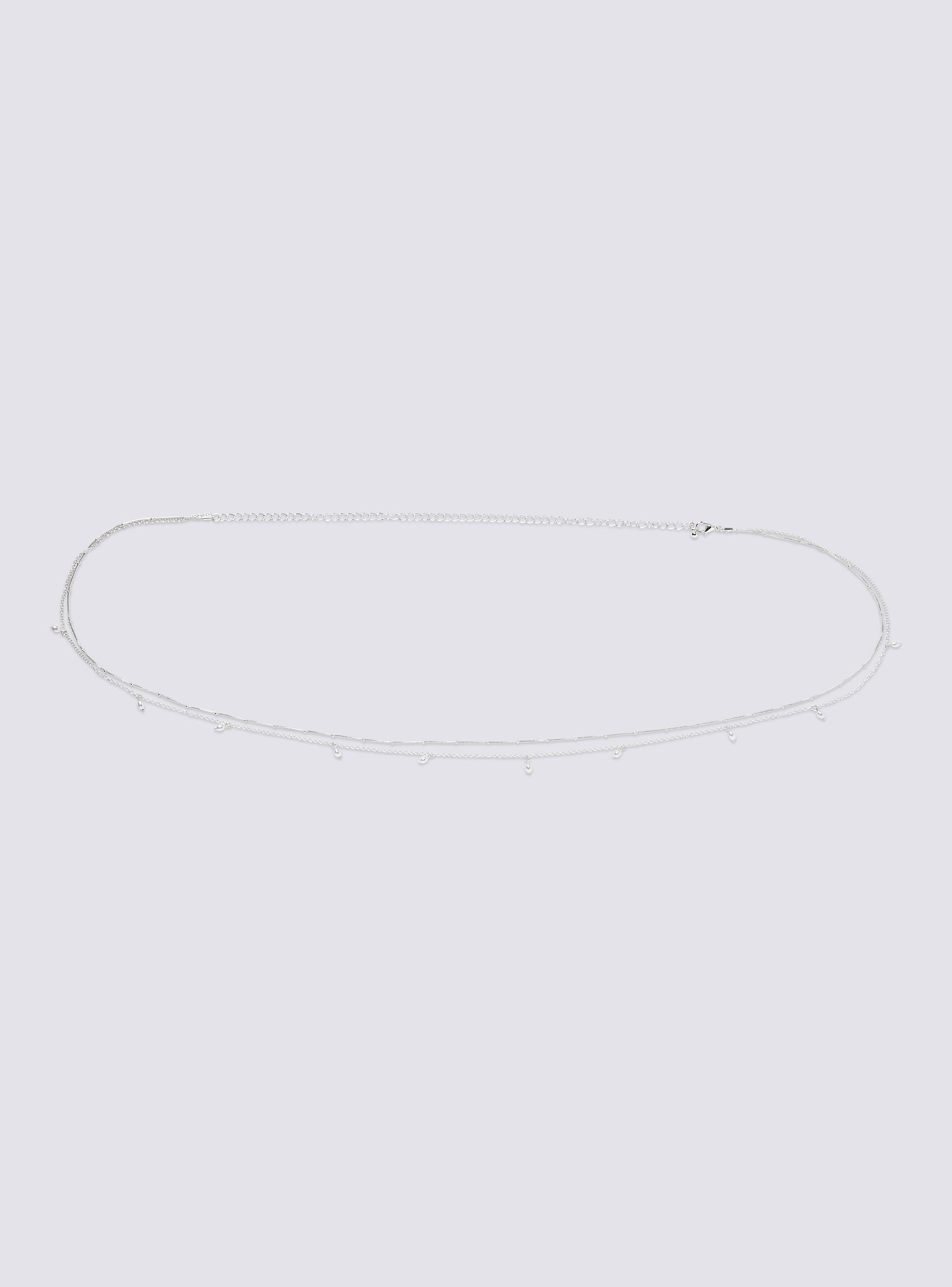 Cadena de barriga para mujer de estilo refinado y minimalista, perfecta para realzar la cintura con un toque de elegancia. Compuesta por varias cadenas delgadas enriquecidas con pequeños detalles decorativos, incluyendo perlas colgantes que aportan movimiento y luminosidad. Gracias a su cierre ajustable, se adapta perfectamente a la silueta, permitiendo llevarla sobre faldas, pantalones de cintura alta o bikinis para un efecto glamuroso. Un accesorio versátil y de tendencia, ideal para realzar el look con un detalle sofisticado y elaborado. Libre de níquel.Detalles