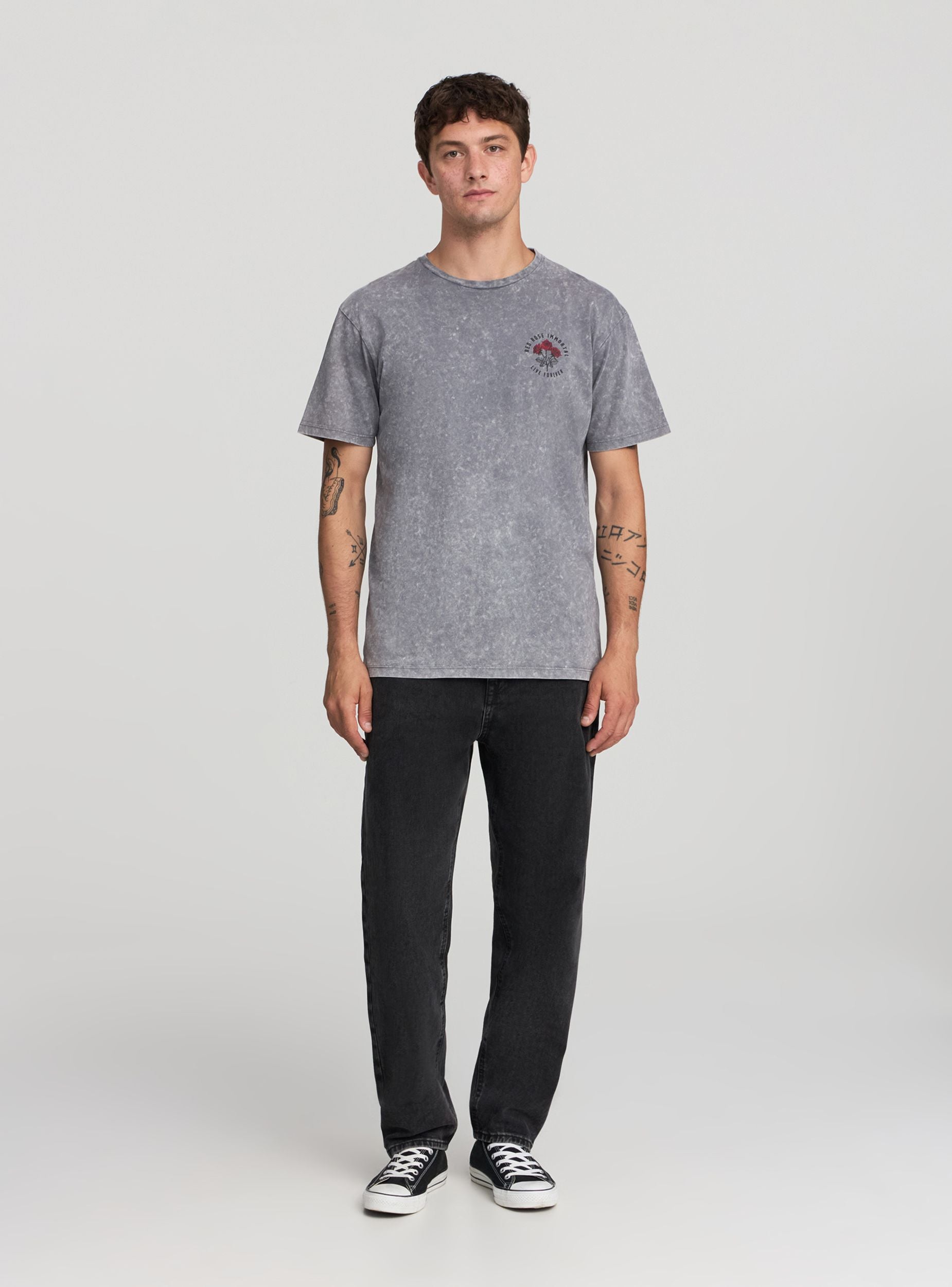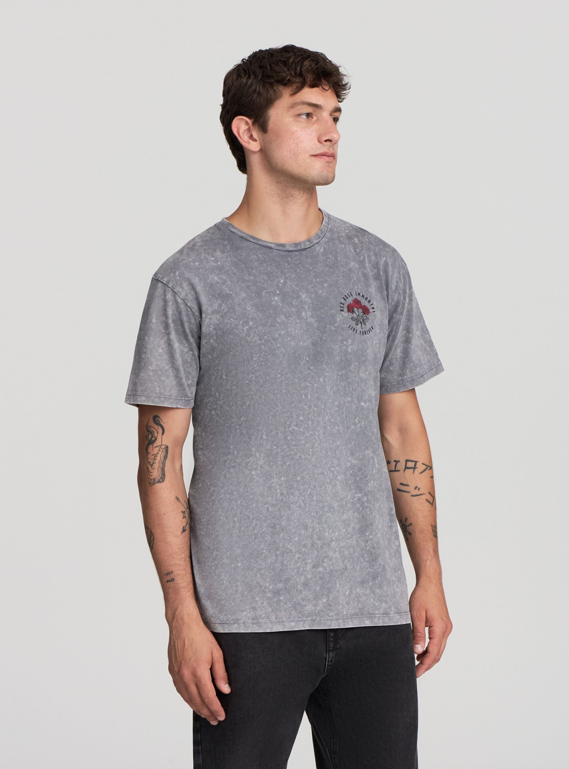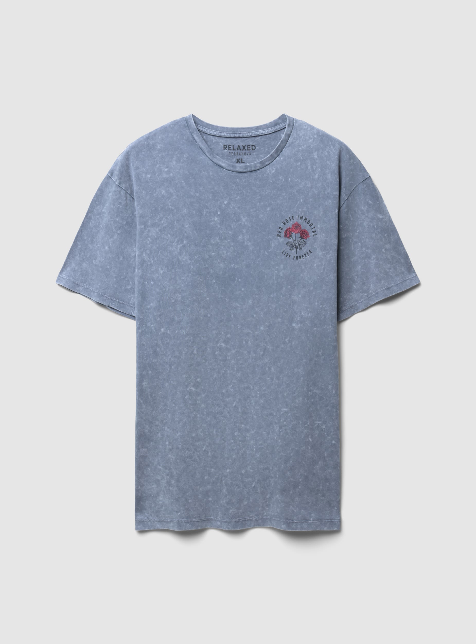 Camiseta de hombre de manga corta, ideal para un look casual y versátil. Perfecta para combinar con vaqueros o pantalones deportivos, se adapta a diversas ocasiones informales. El tejido acid wash está enriquecido con un estampado de rosas y letras pequeñas en la parte delantera y grande en la parte trasera. El ajuste cómodo y el diseño sencillo la convierten en una prenda esencial para el armario diario.Detalles