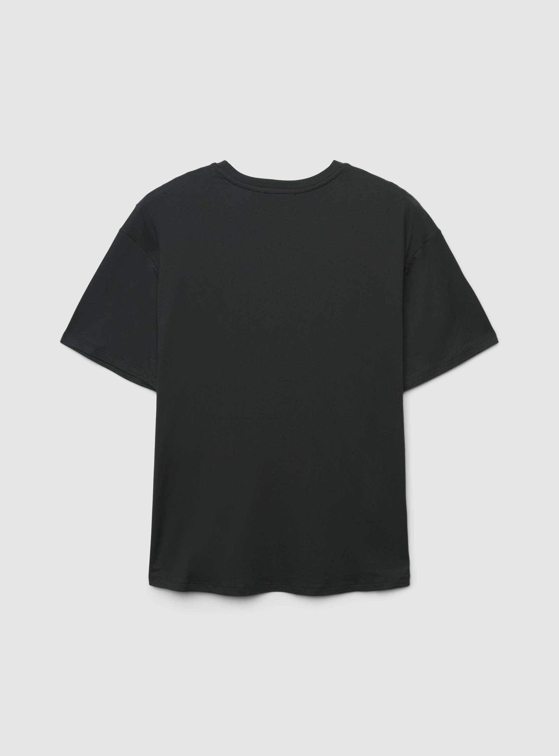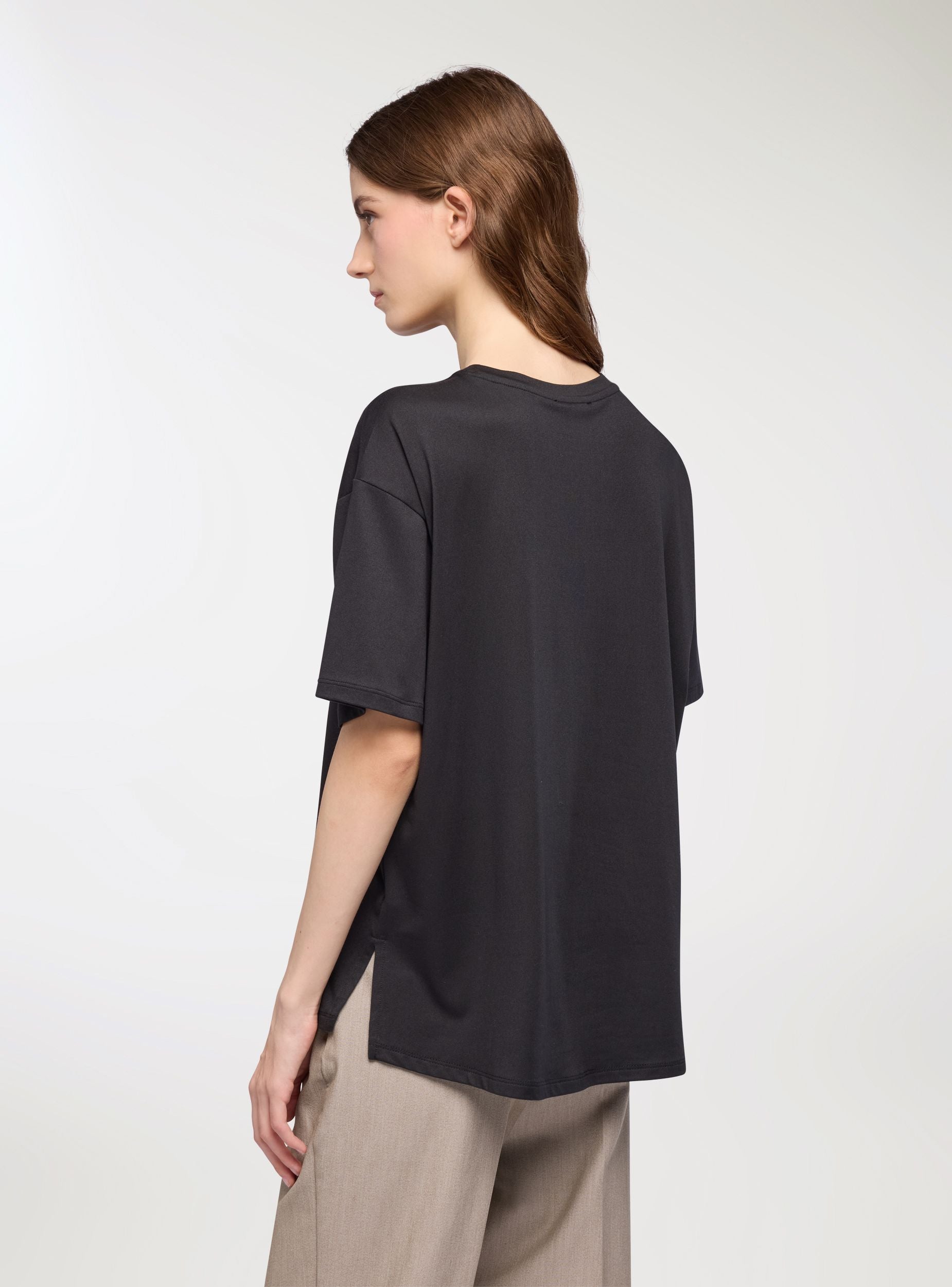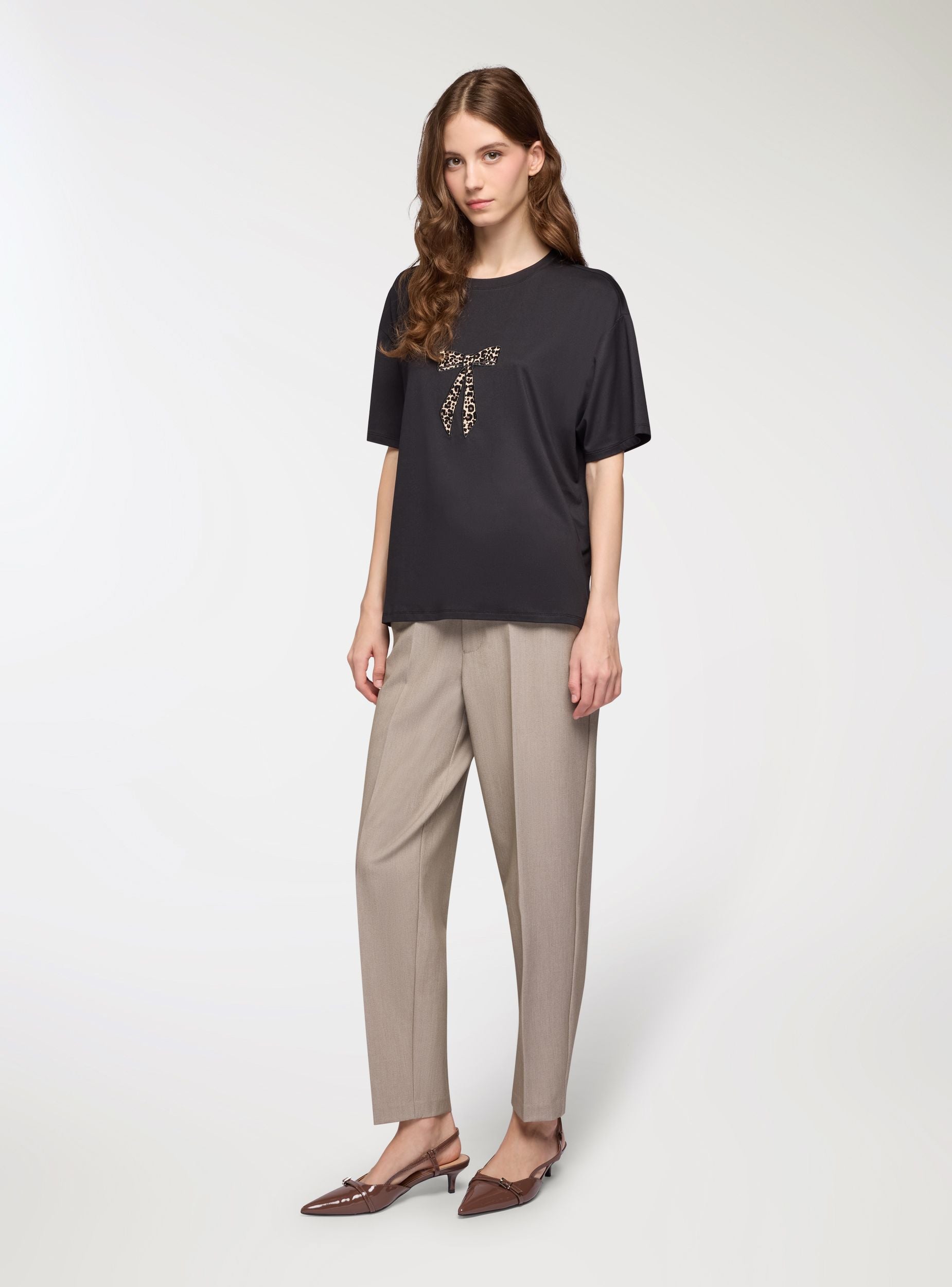 Camiseta de mujer con mangas cortas y escote redondo, adornada con un estampado de lazo en el pecho que aporta un toque femenino. Corte regular y largo hasta la cadera, ideal para looks diarios o salidas nocturnas. Fácil de combinar con vaqueros, pantalones pitillo o faldas. Perfecta también para llevar bajo blazers o cárdigans.Detalles
