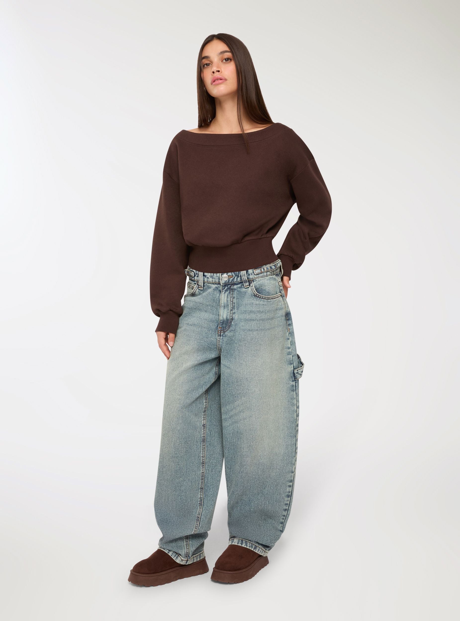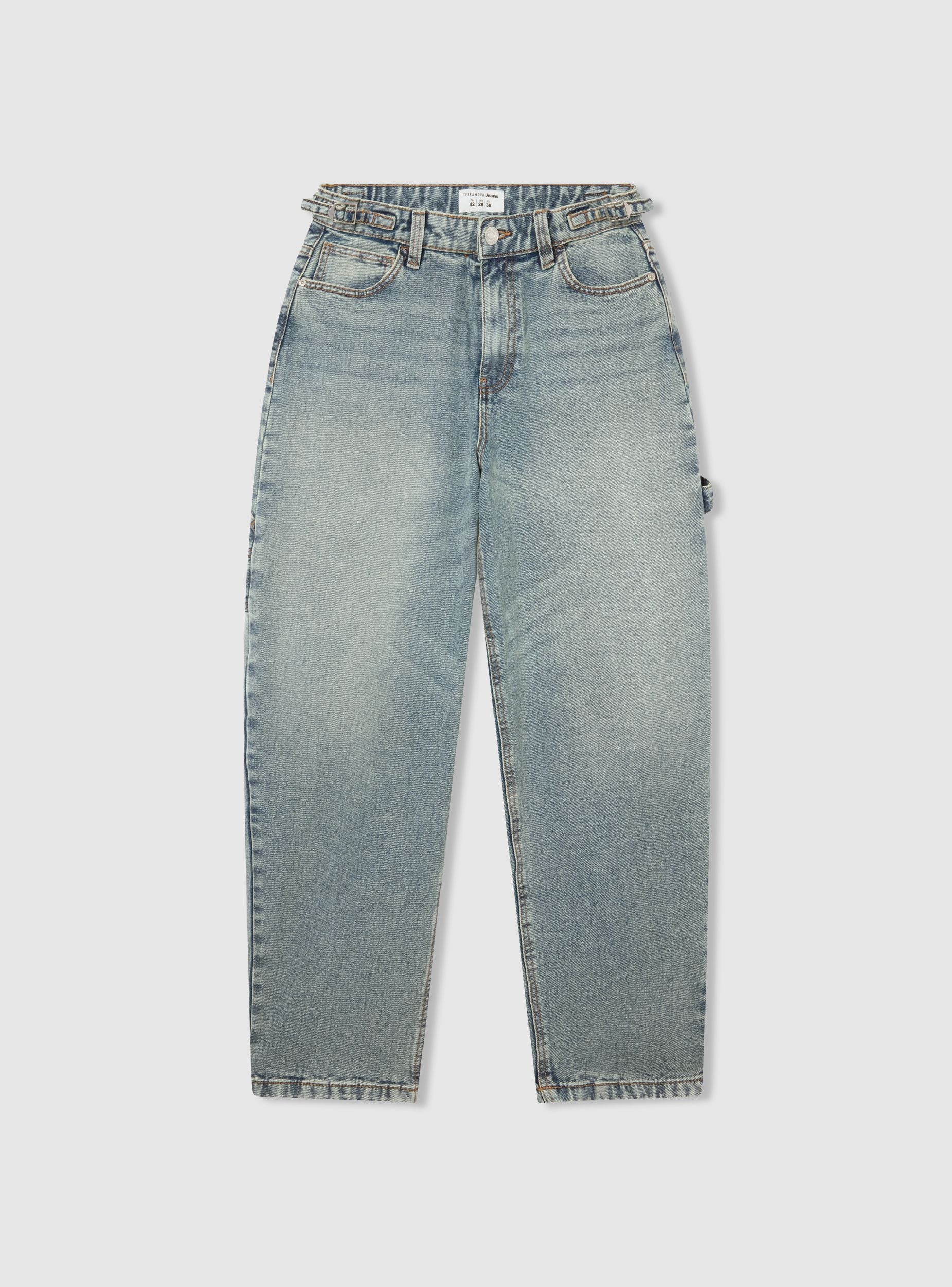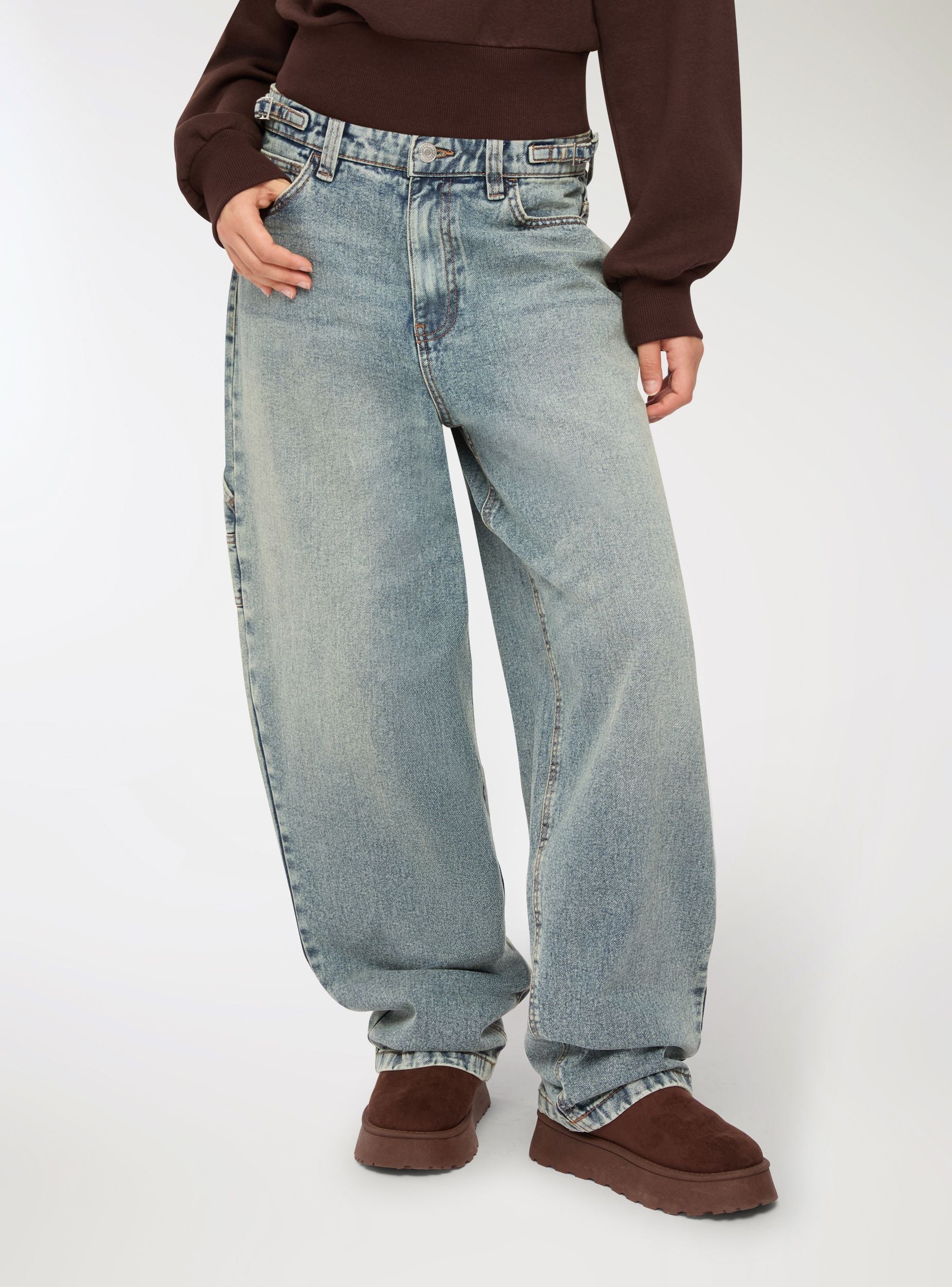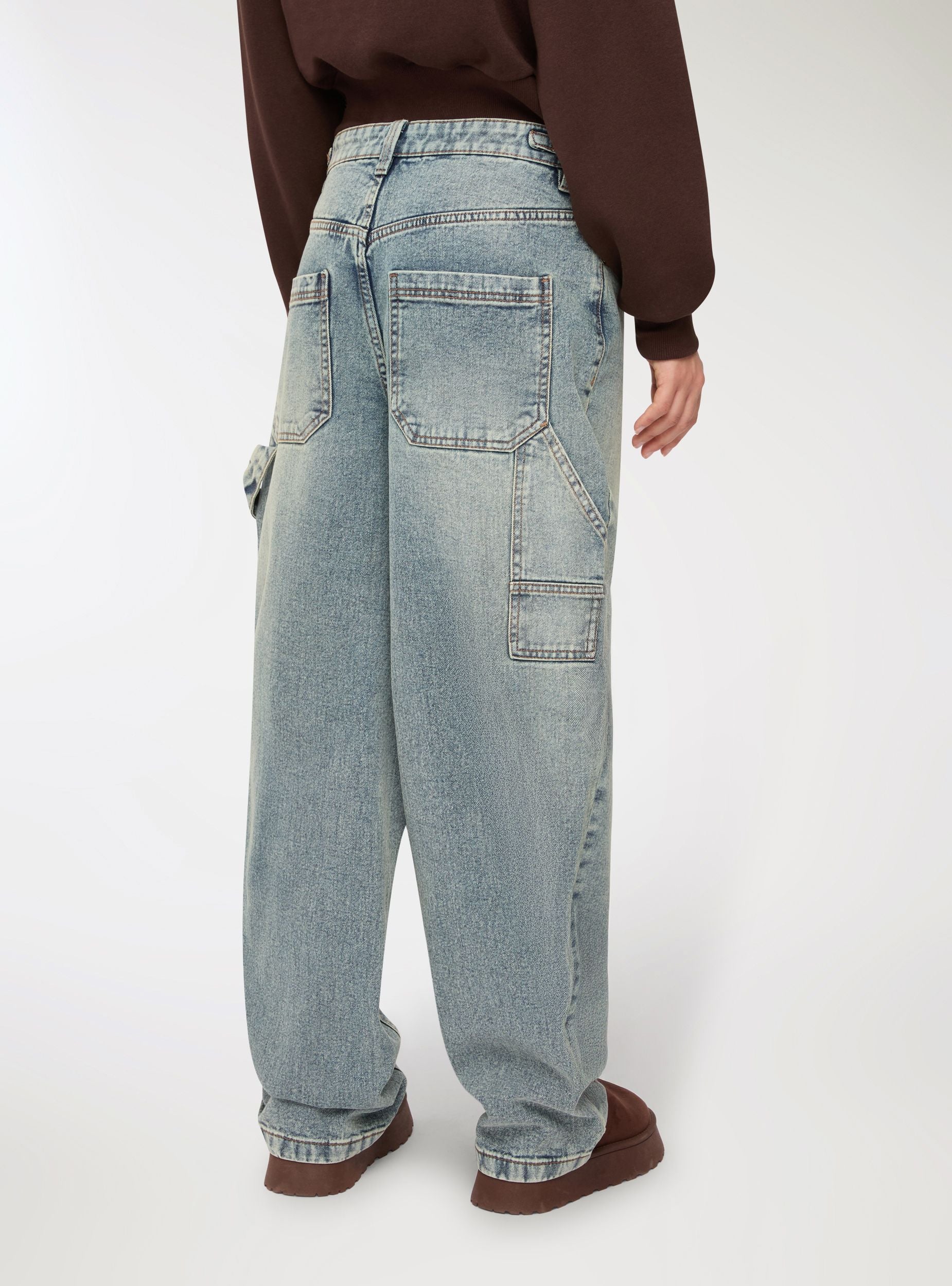 Jeans de mujer con ajuste amplio y diseño de carpintero. Ideales para un look casual y moderno, estos jeans se distinguen por su estilo balloon y detalles funcionales. Cierre con cremallera y botón, 5 bolsillos. Perfectos para combinar con camisetas o camisas para un conjunto versátil y a la moda.